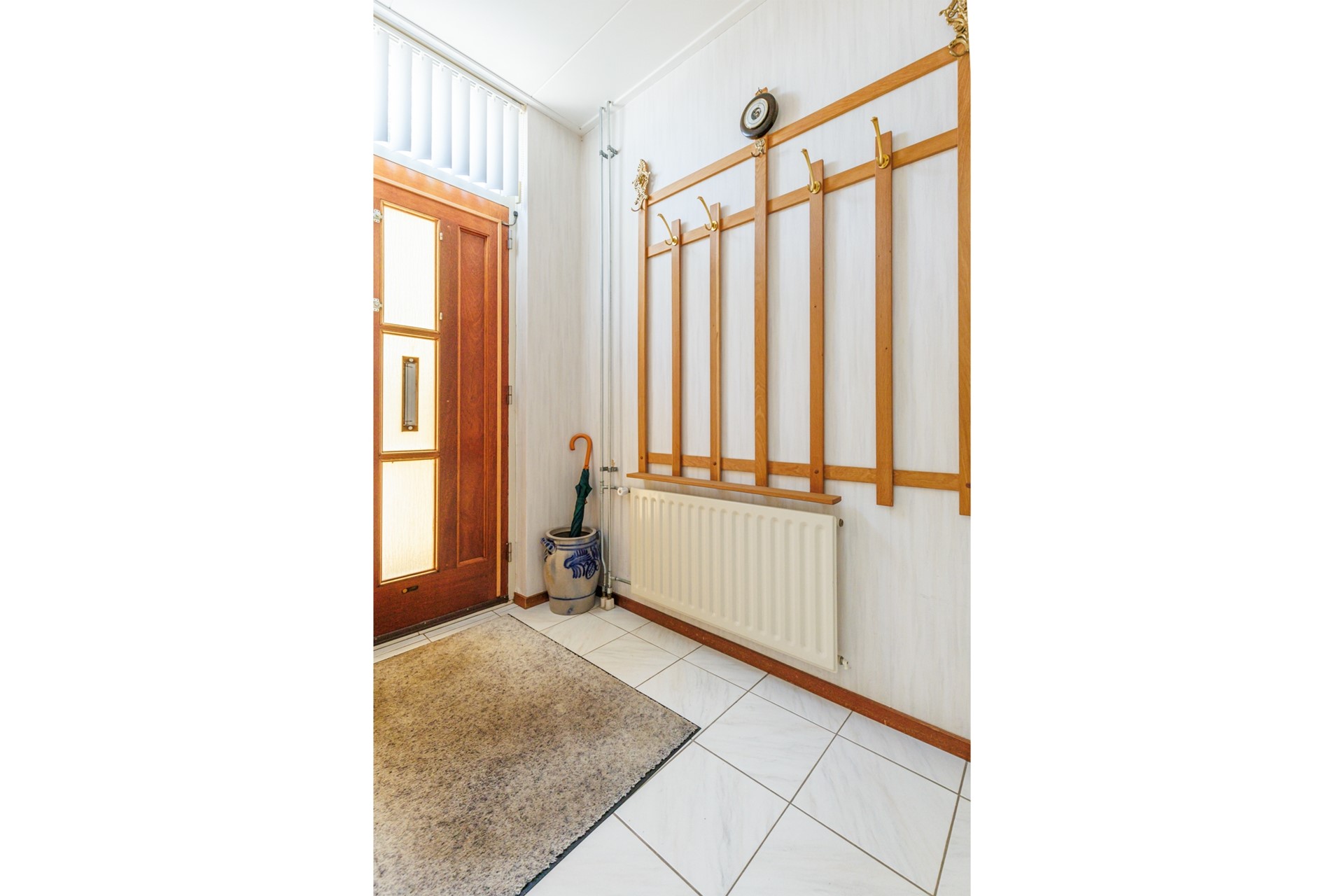 Via de hal, met een praktische trapkast, kom je binnen in de woonkamer. Aan de voorzijde zorgen de grote raampartijen voor aangenaam daglicht, wat de ruimte een prettige sfeer geeft. De woonkamer beschikt over vloerverwarming en een sfeervolle haard, die zorgen voor extra comfort. Aan de achterzijde van de woonkamer bevindt zich een tussenhal met toegang tot het souterrain en de trapopgang naar de eerste verdieping.