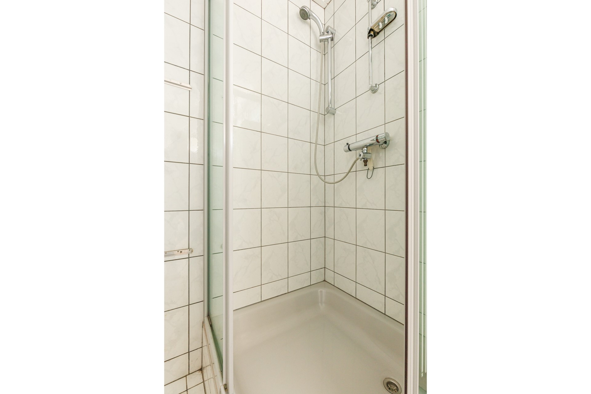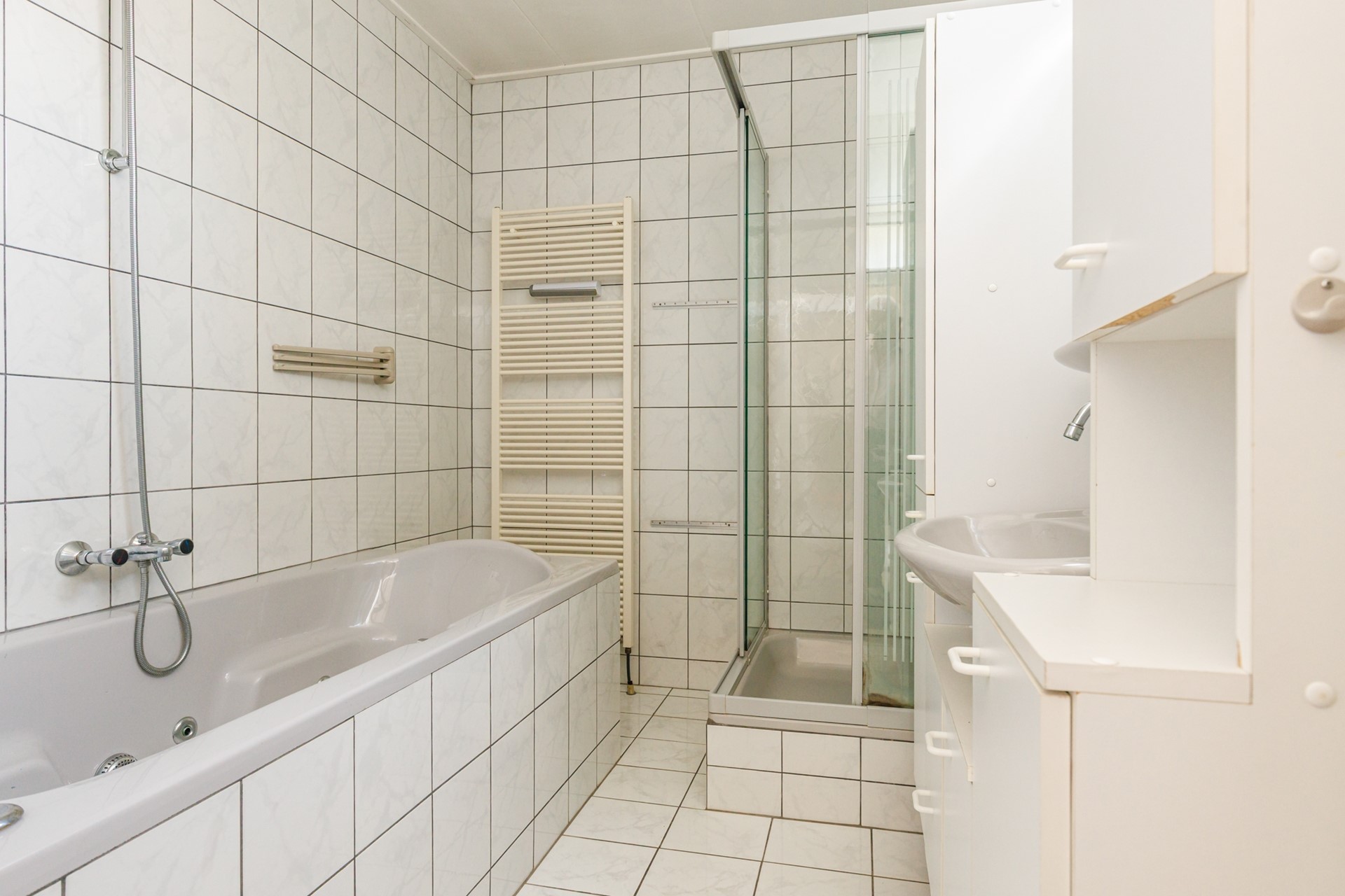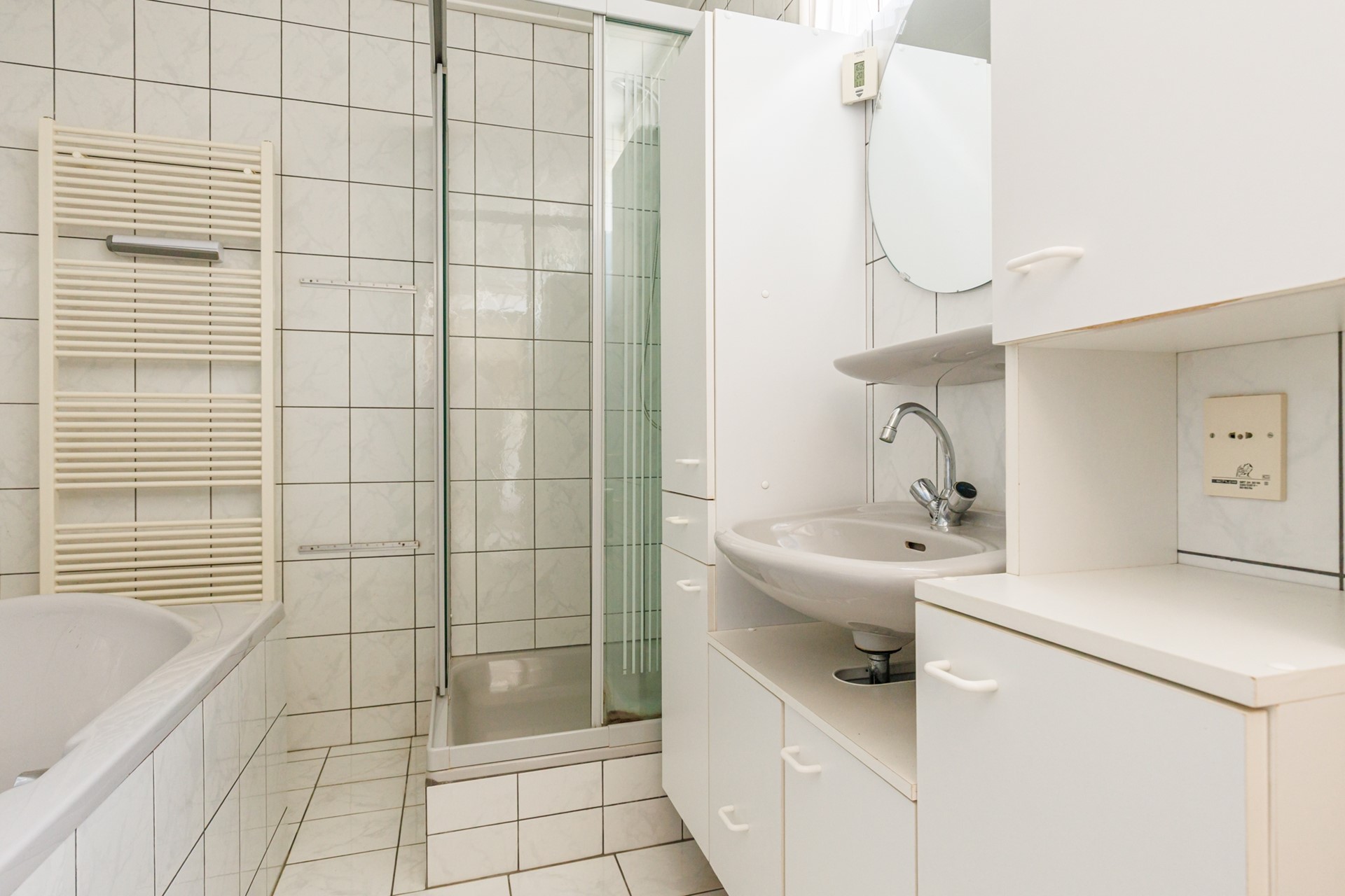 In het souterrain bevindt zich een ruime woonkeuken — een fijne plek waar koken, eten en samenzijn centraal staan. Dankzij het royale formaat is er volop ruimte voor een grote eettafel, wat deze verdieping tot een volwaardige leefruimte maakt. Aangrenzend vind je een tweede hal met toegang tot het toilet, de badkamer én een loopdeur naar de achtertuin. De badkamer is voorzien van een bubbelbad, een aparte douchecabine en een wastafelmeubel.