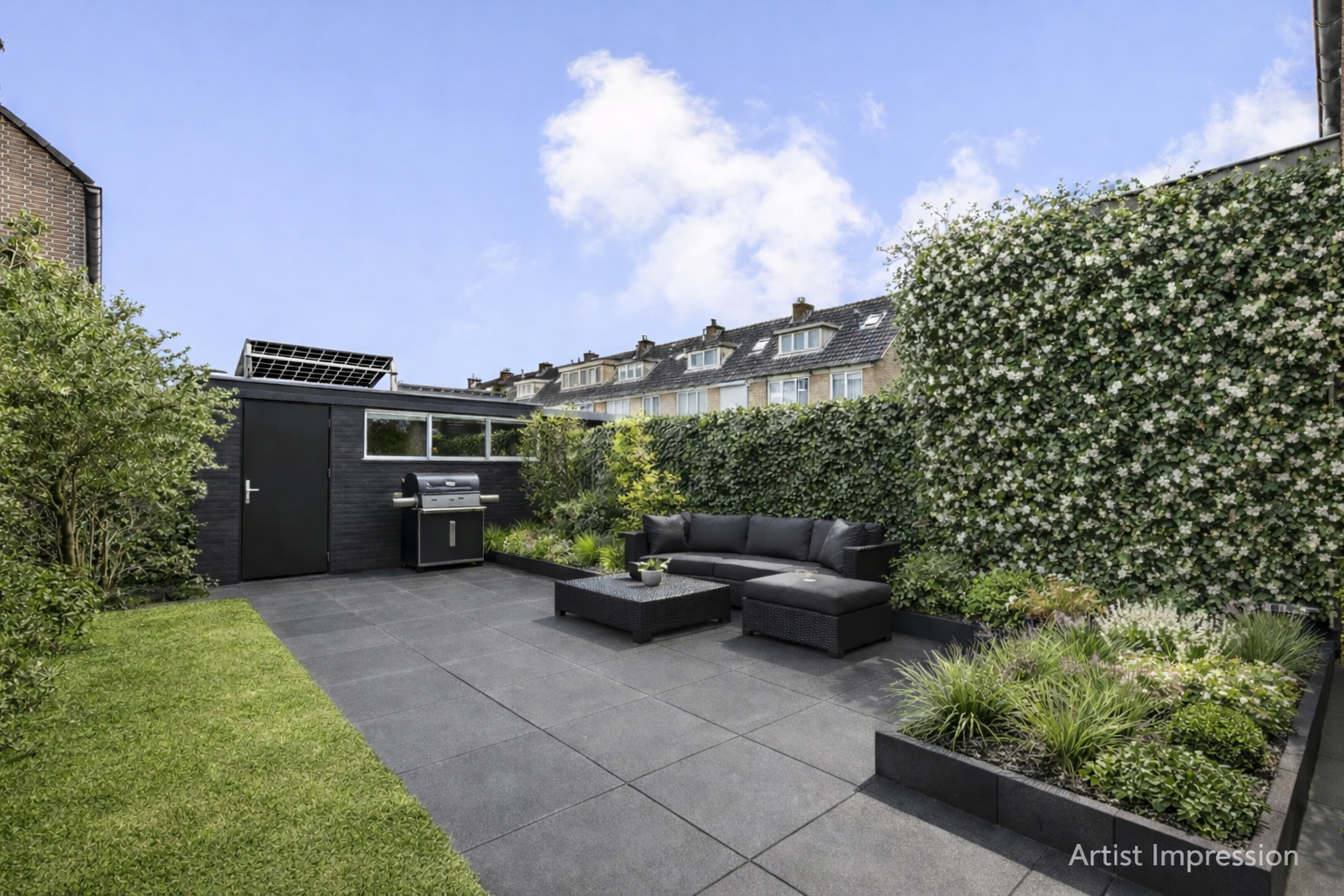 • Zonnige achtertuin op het zuid/oosten