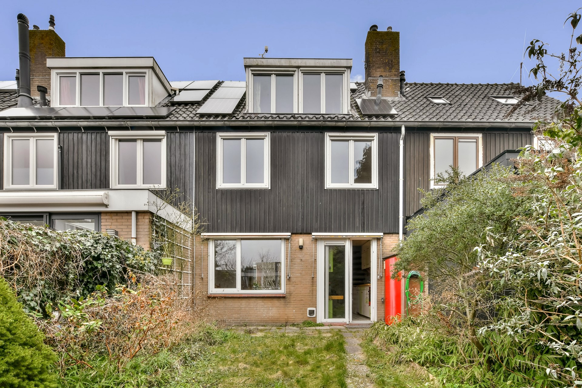 The spacious back garden is approximately 11.60 metres deep and 5.70 metres wide and is conveniently located on the sunny south/east, allowing you to enjoy the sun almost all day long. The garden has a practical back entrance, a stone shed for bicycles and garden tools, and an extra storage cupboard right next to the back door of the kitchen — ideal for extra storage.