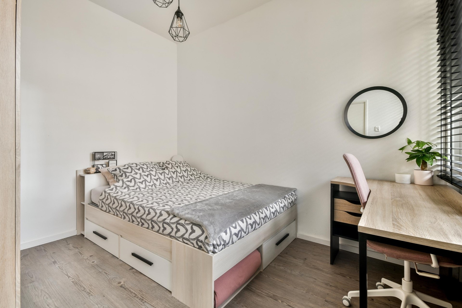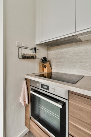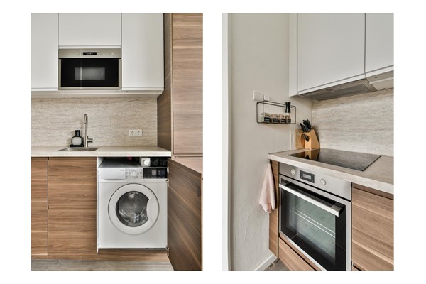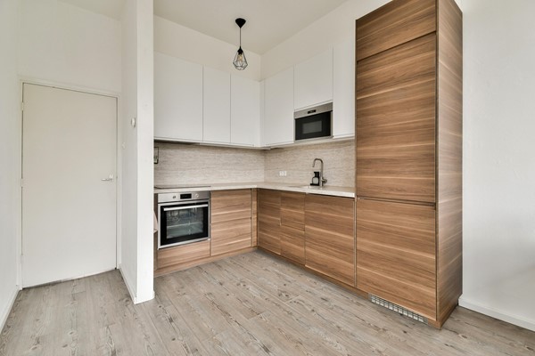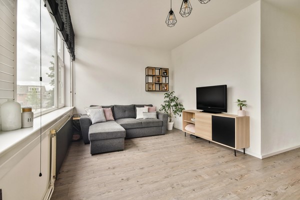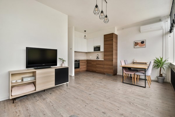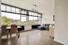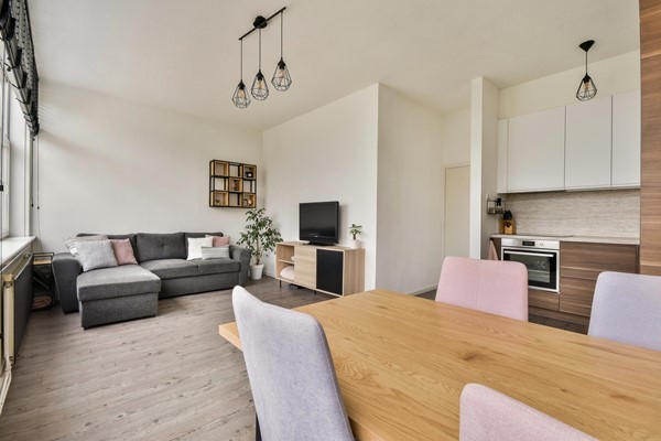 De lichte woonkamer met open keuken is gelegen aan de achterzijde en biedt een prettige leefruimte. Aan de voorzijde bevindt zich het zonnige balkon, gesitueerd op het westen, waar je tot in de avond van de zon kunt genieten.