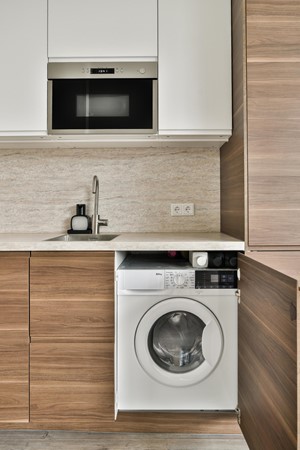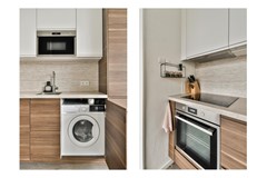 De moderne keuken (2022) is volledig uitgerust met een inductiekookplaat, koelkast met vriesvak, vaatwasser en combi-oven – ideaal voor de kookliefhebber.