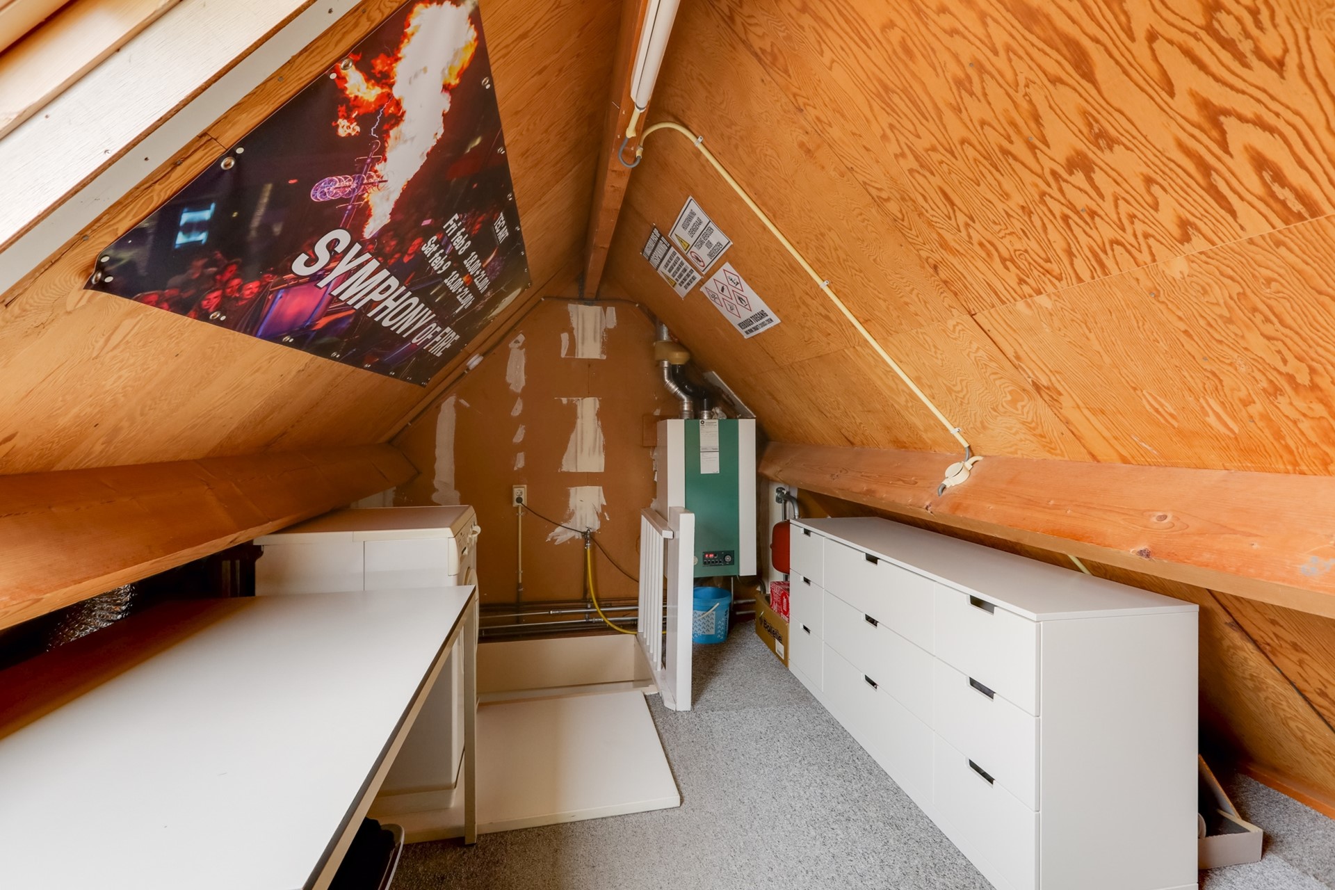 Via vaste trap te bereiken zolderverdieping met cv-combiketel (AWB bouwjaar 1995), dakraam, witgoedaansluitingen en veel bergruimte.