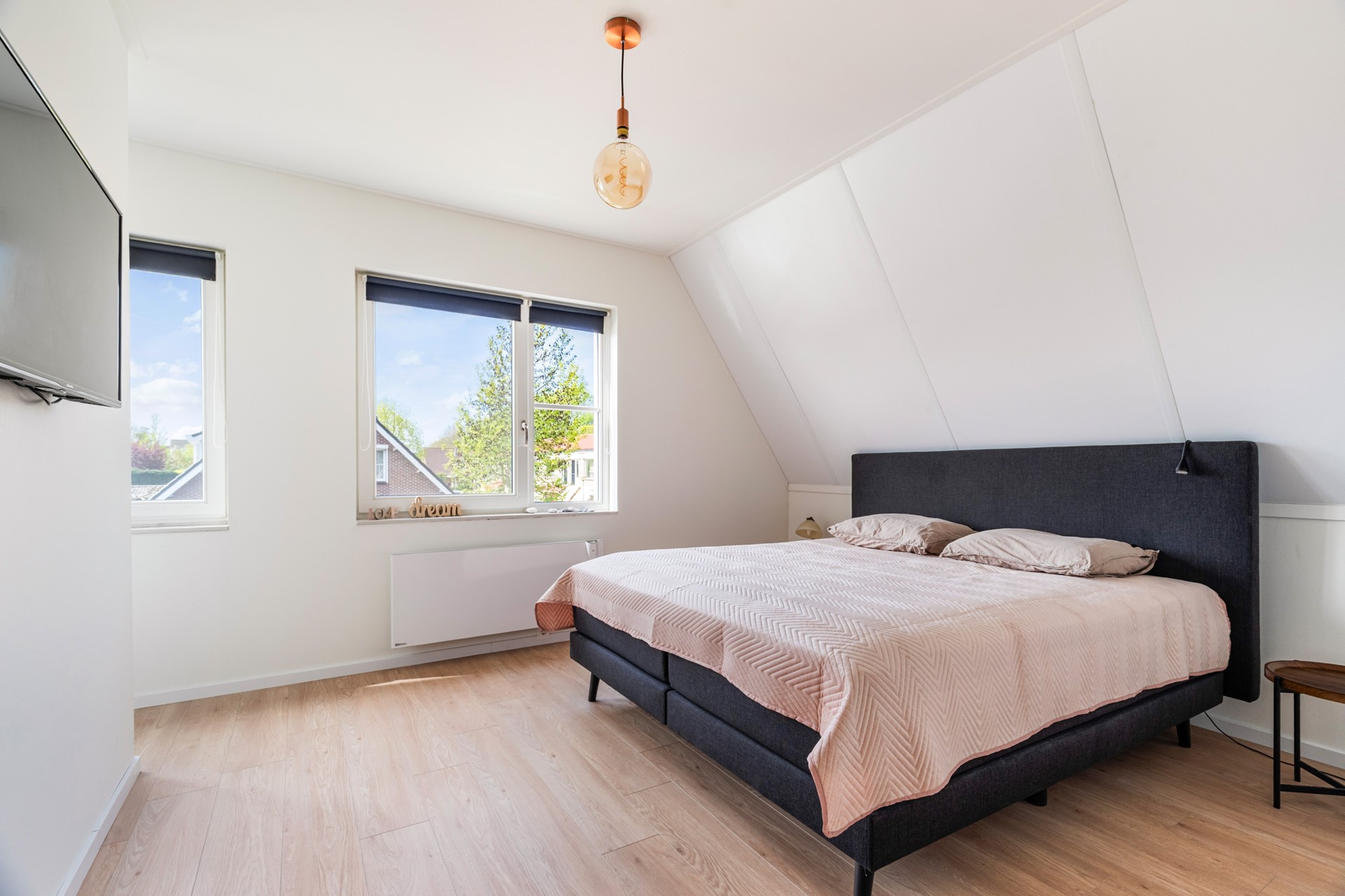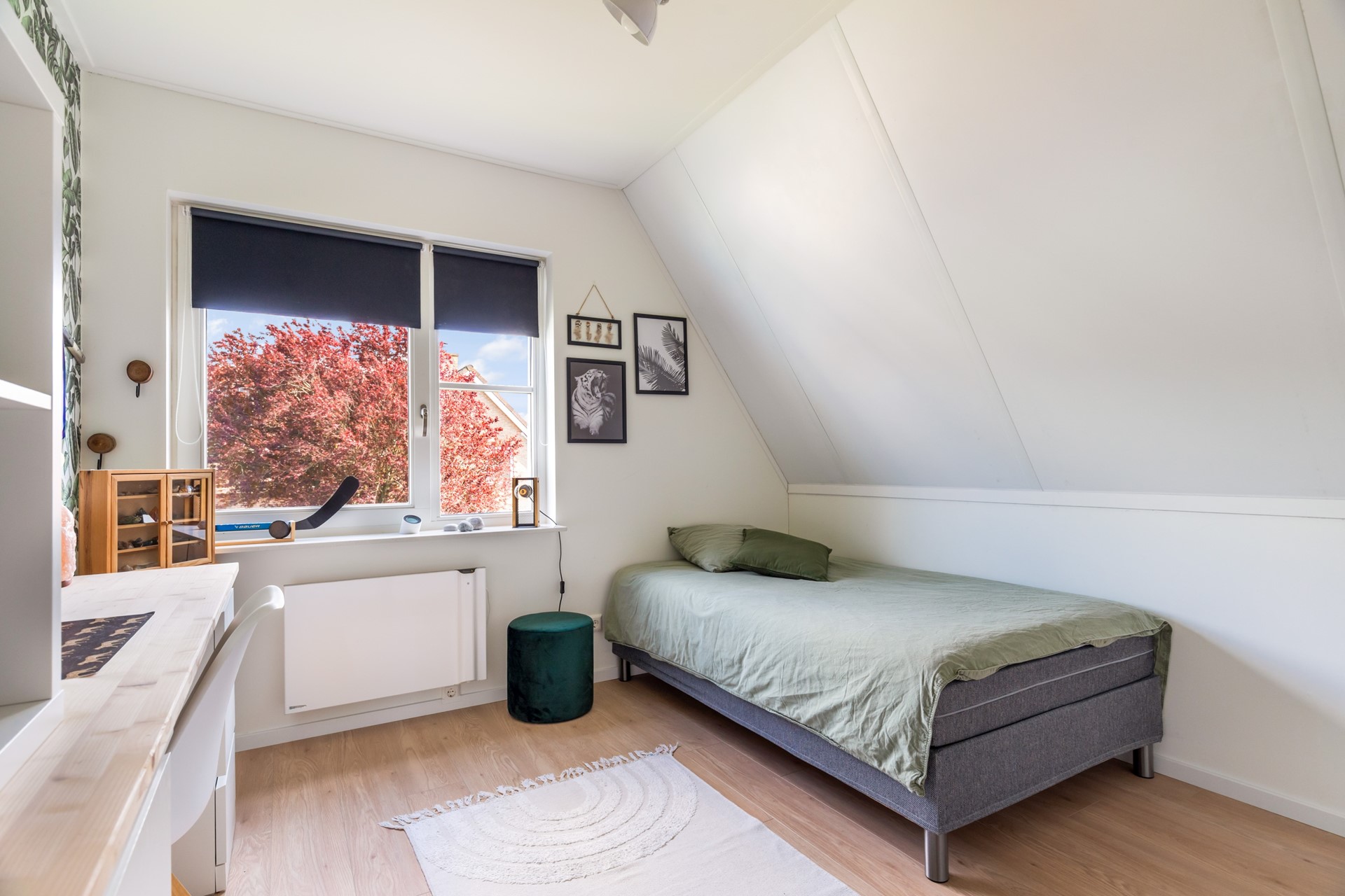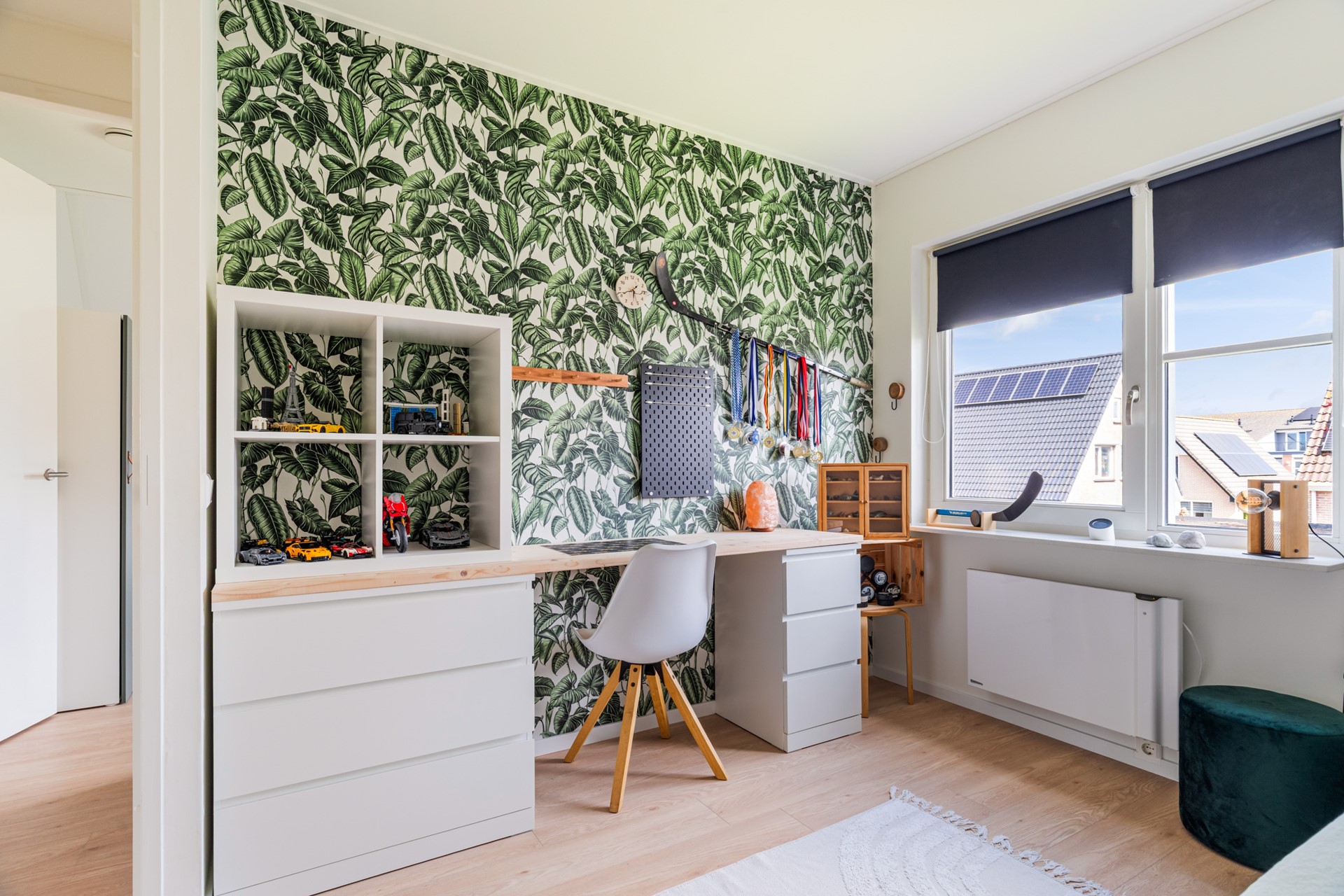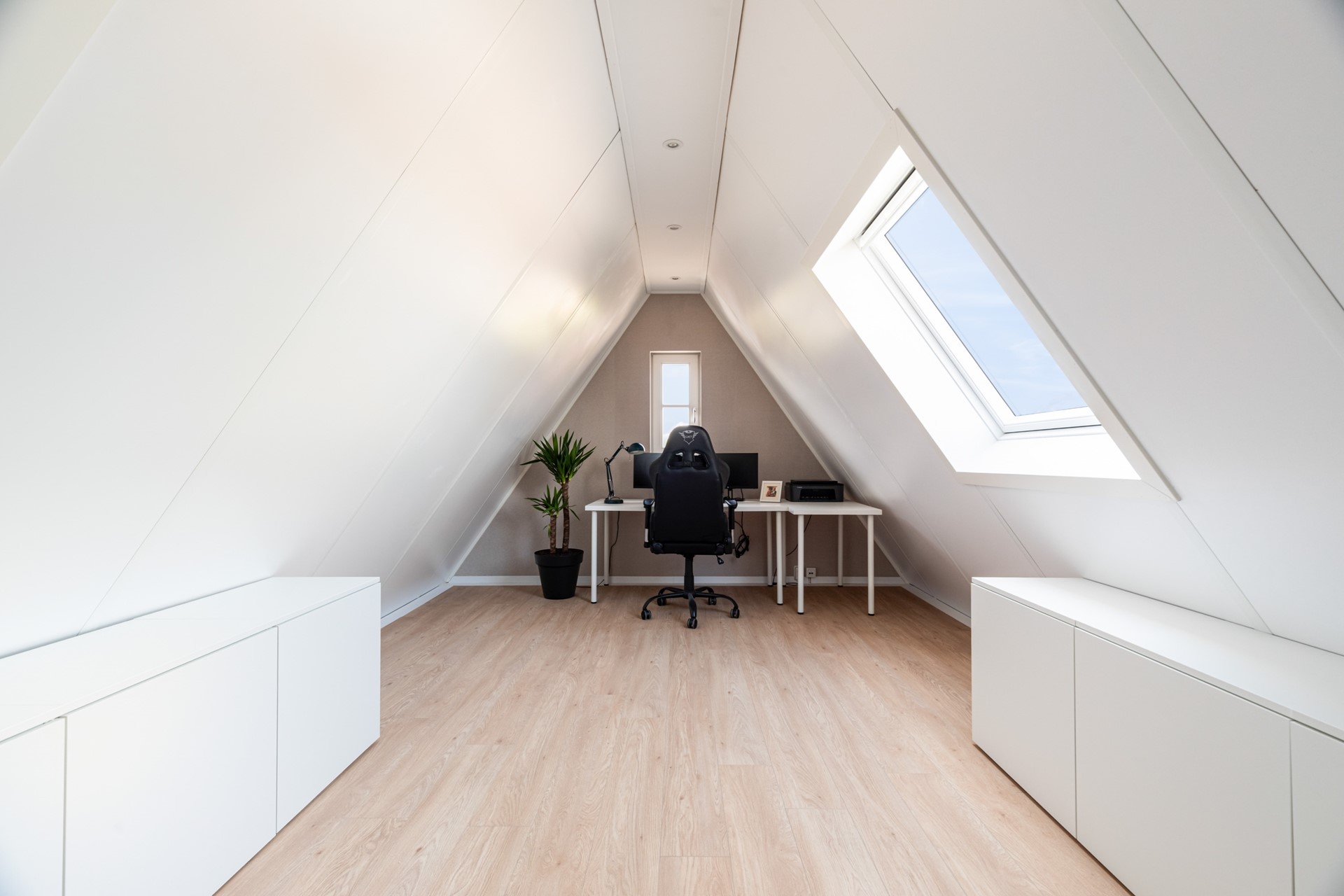 De zolderverdieping is volwaardig en multifunctioneel ingericht. Hier vind je een vierde slaapkamer, een werkruimte en praktische bergruimte. Dankzij het dakraam is er voldoende daglicht aanwezig, waardoor deze verdieping prettig aanvoelt en goed bruikbaar is voor verschillende doeleinden.