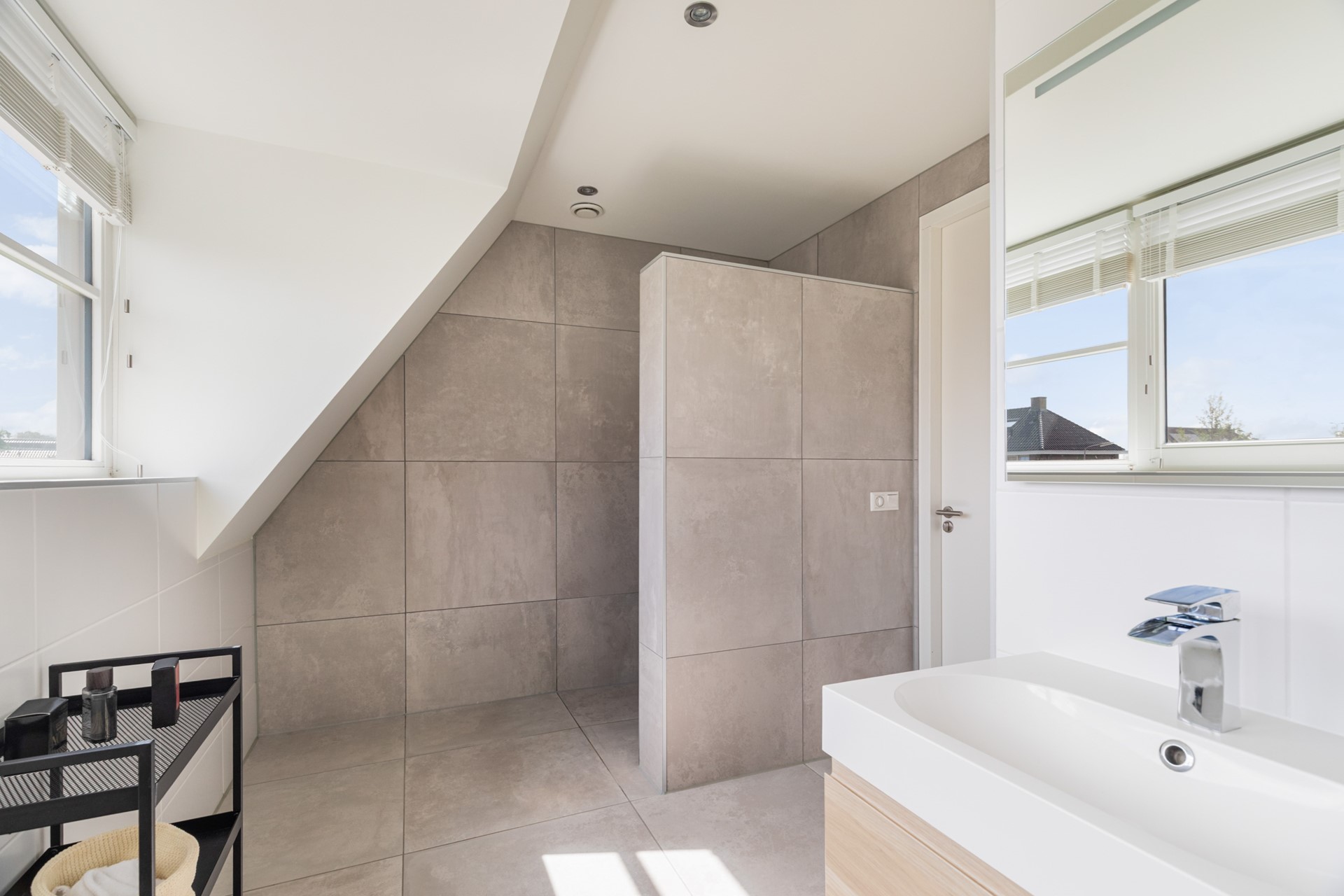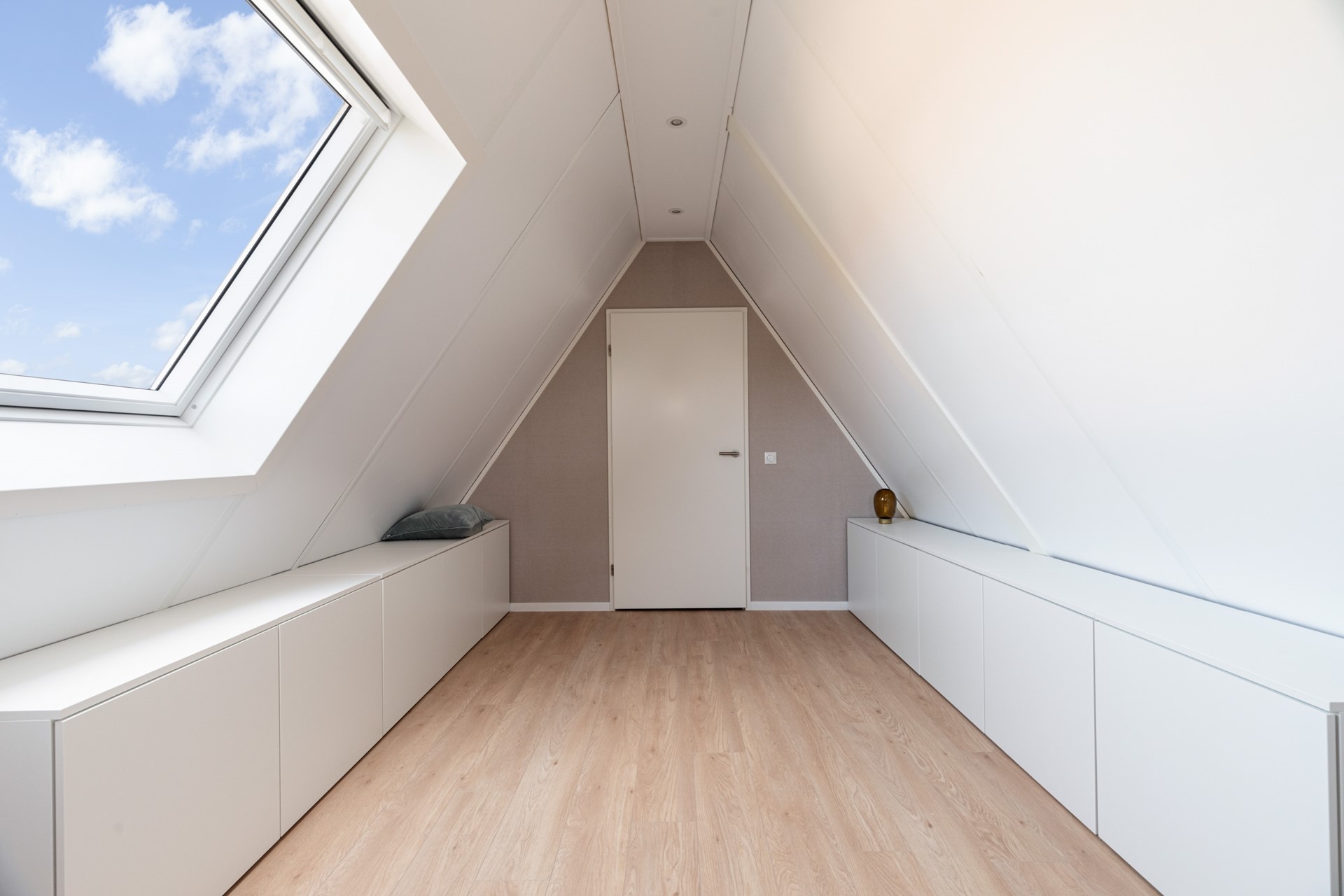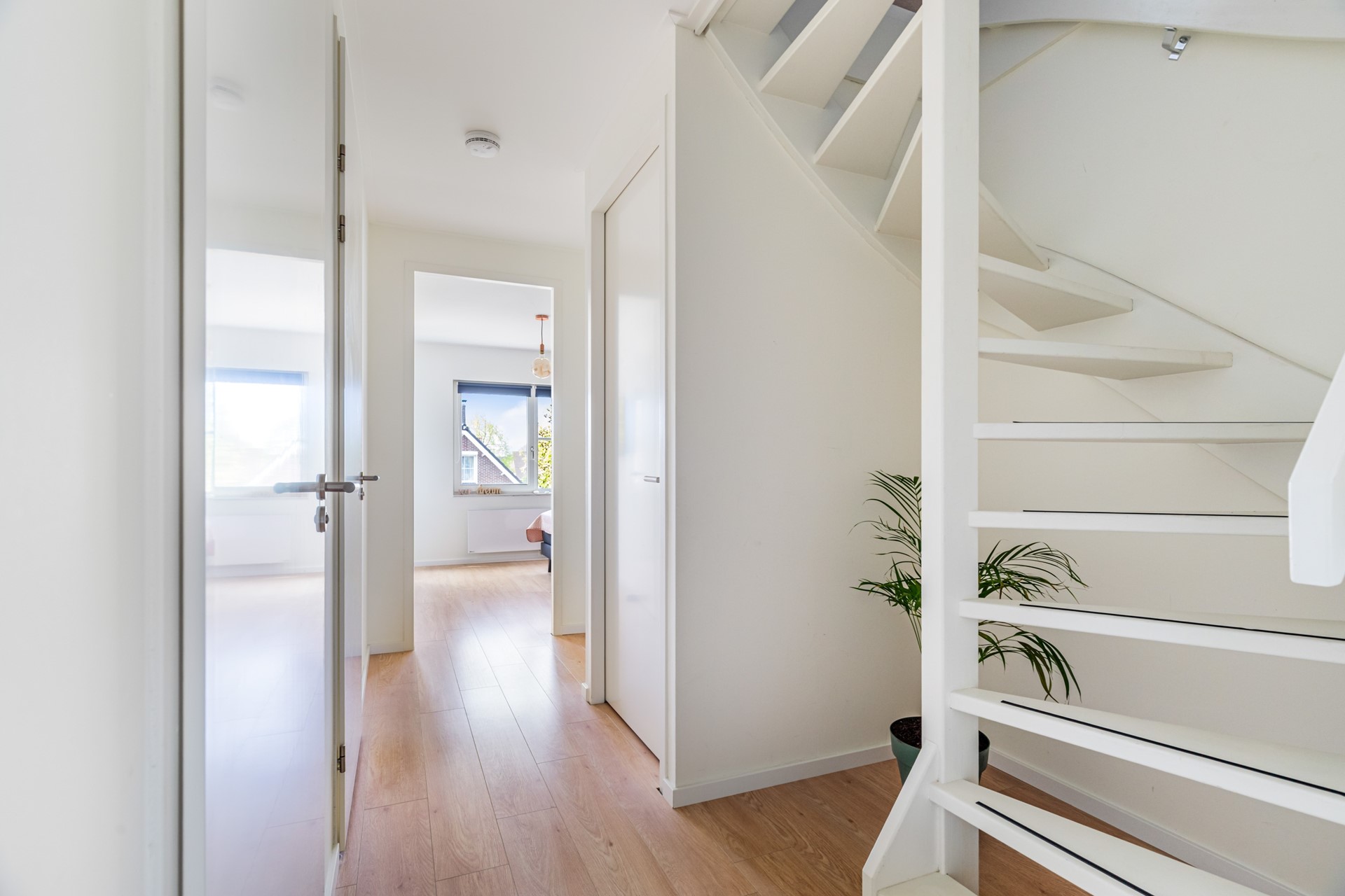 Ook is er op deze verdieping een technische ruimte aanwezig waar de installaties netjes zijn weggewerkt. Via een vaste trap bereik je de zolderverdieping.