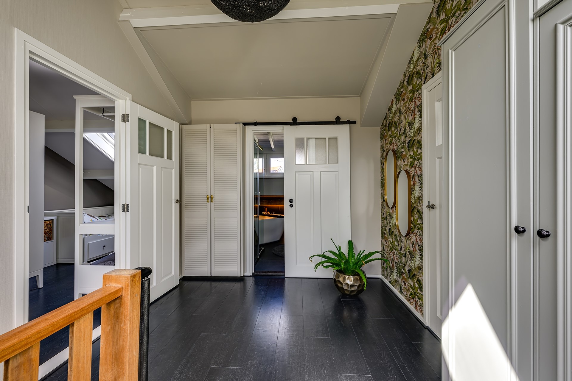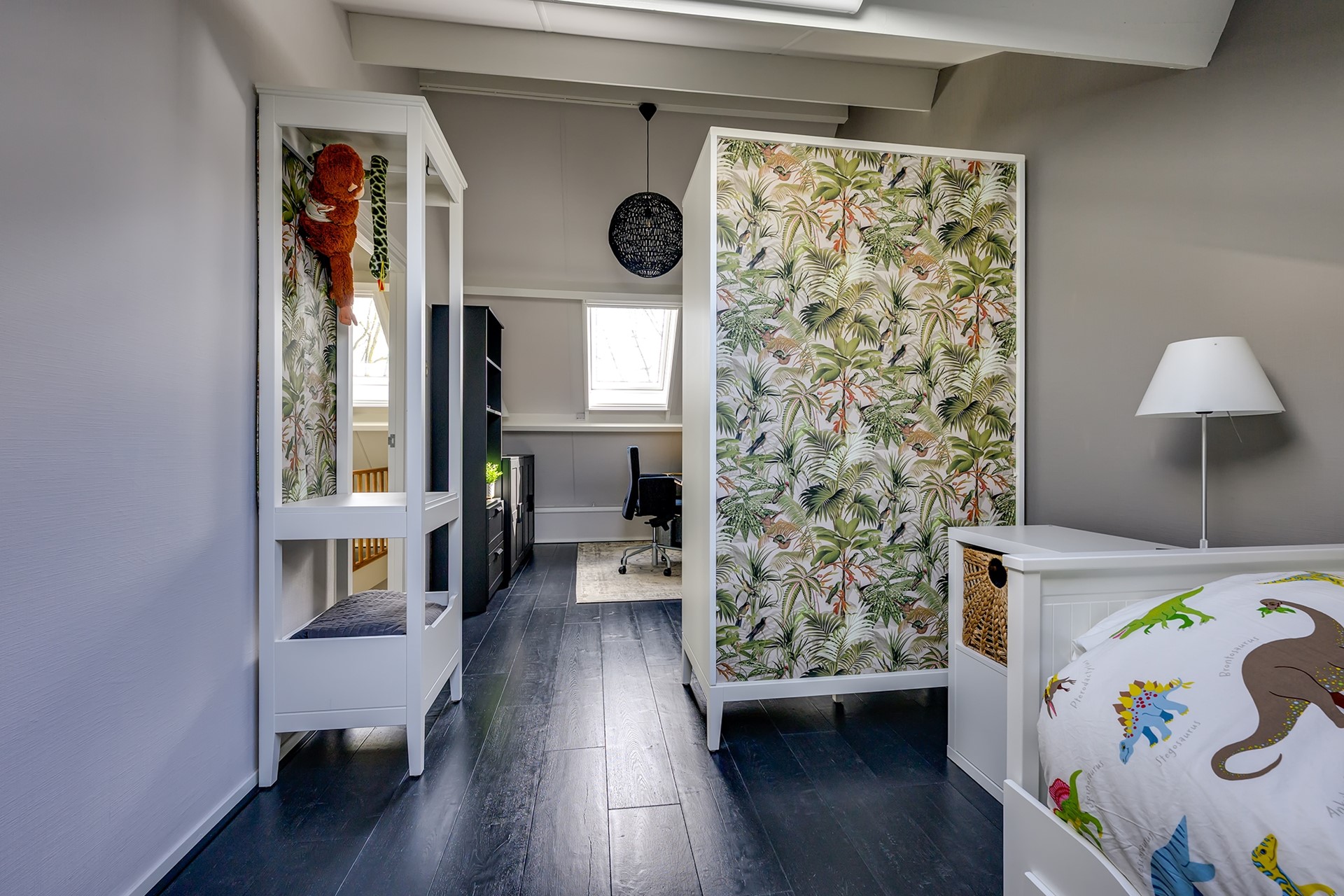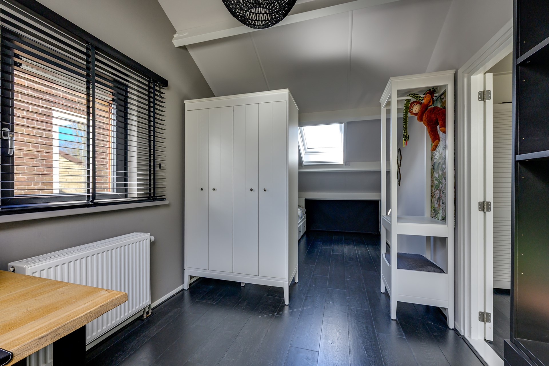 De eerste verdieping beschikt over een zeer ruime overloop, de 2e badkamer en twee slaapkamers. De overloop is perfect om bijvoorbeeld als thuiswerkplek te gebruiken en de grootste slaapkamer is groot genoeg om deze eenvoudig te splitsen in twee slaapkamers, indien gewenst. De moderne badkamer (vernieuwd in 2023) is luxe uitgevoerd met een vrijstaand bad, douche met IR sunshower, een wastafelmeubel, een spiegel met verwarming/ verlichting én een toilet. Kortom een heerlijke plek om te ontspannen.