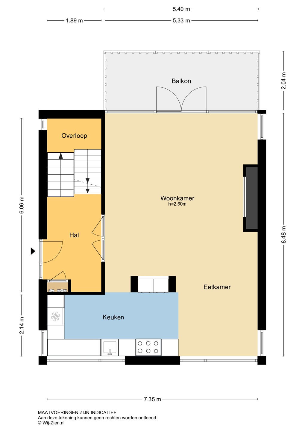 Voor de afmetingen en indeling, zie de plattegrond.