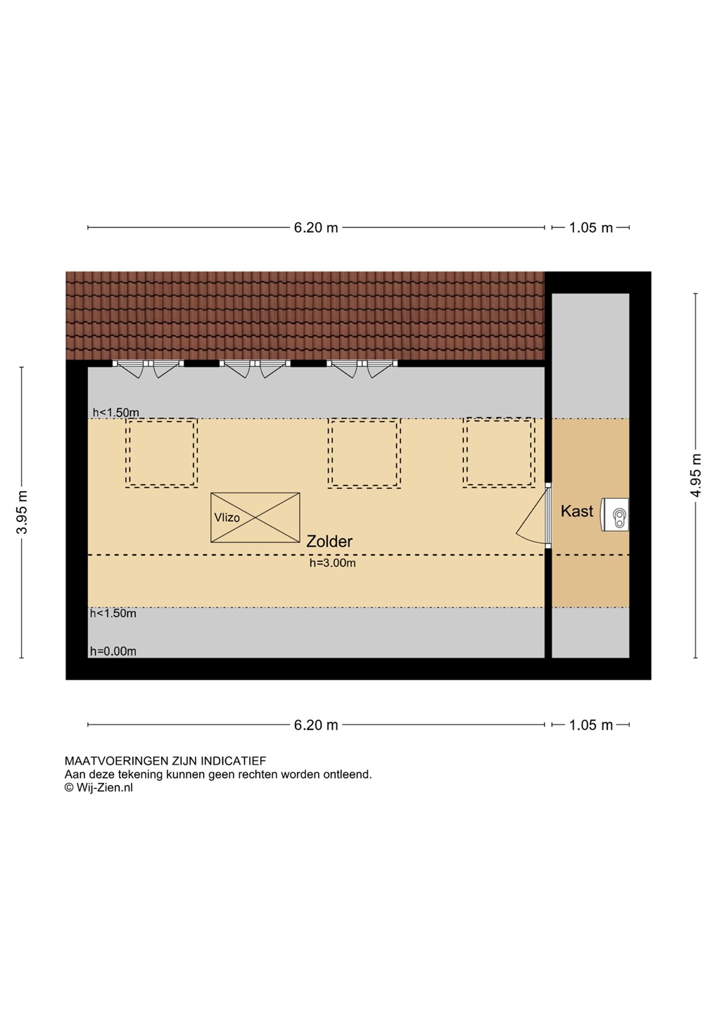 - Zolder ca. 23 m² met hoge nok (mogelijkheid extra kamer);
