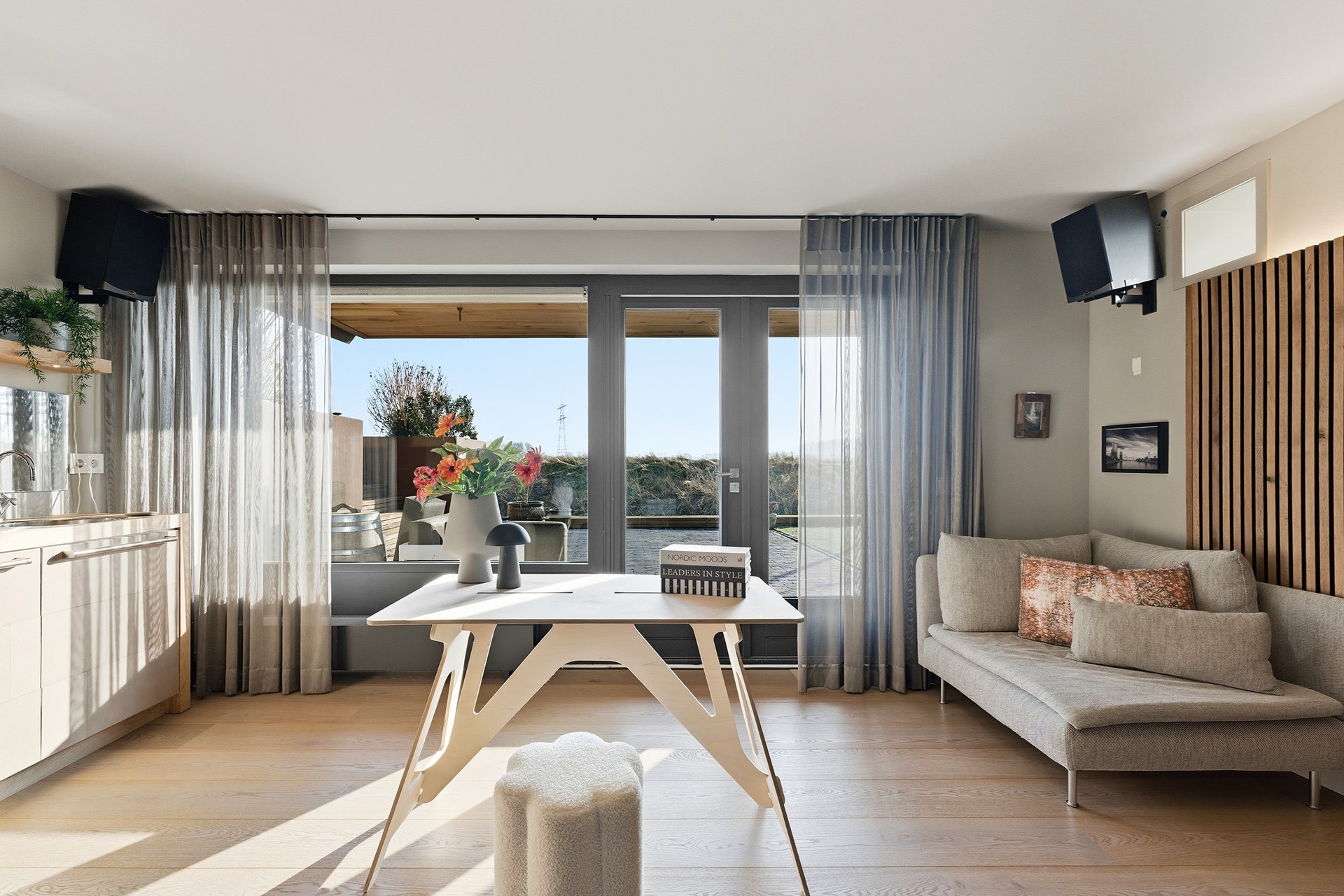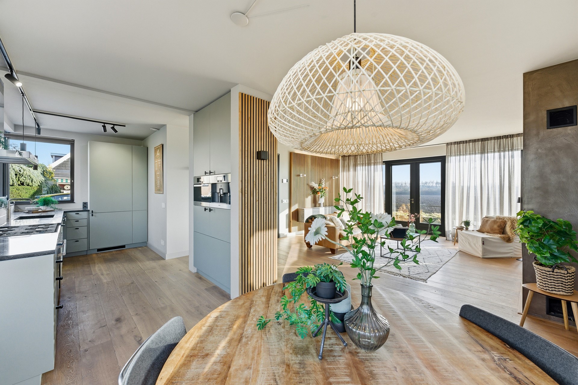 9. Terras, woonkamer én tuin met een geweldig vrij uitzicht over het groen