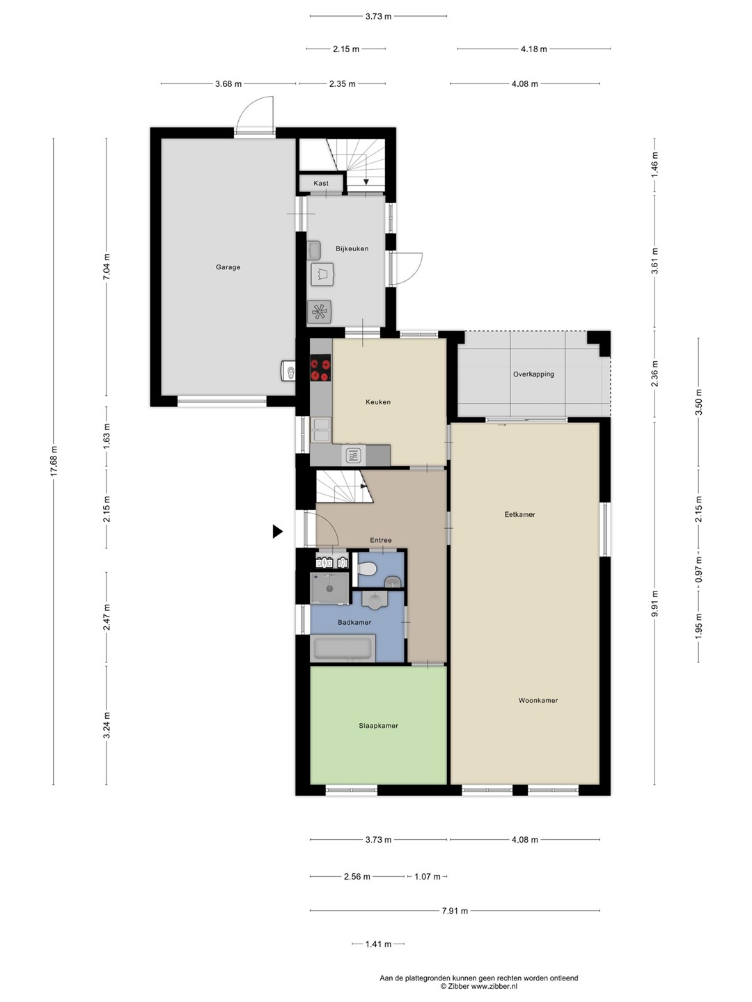 De entree geeft toegang tot de voordeur en de hal. Vanuit de hal met meterkast en trap naar de 1e verdieping zijn de toiletruimte, de woonkamer, keuken, slaapkamer en badkamer bereikbaar.