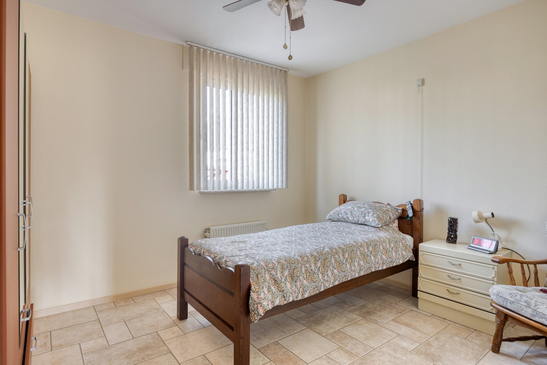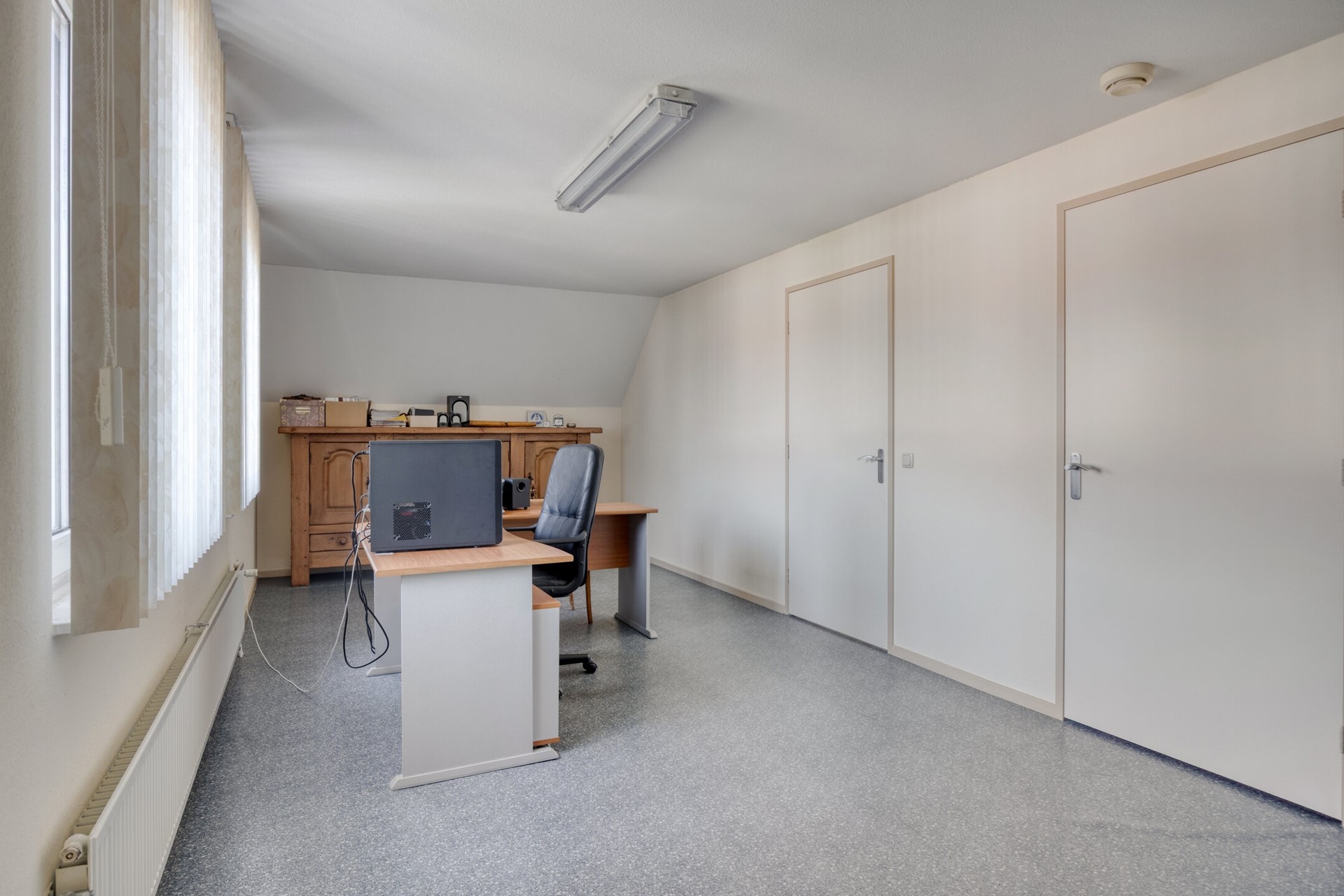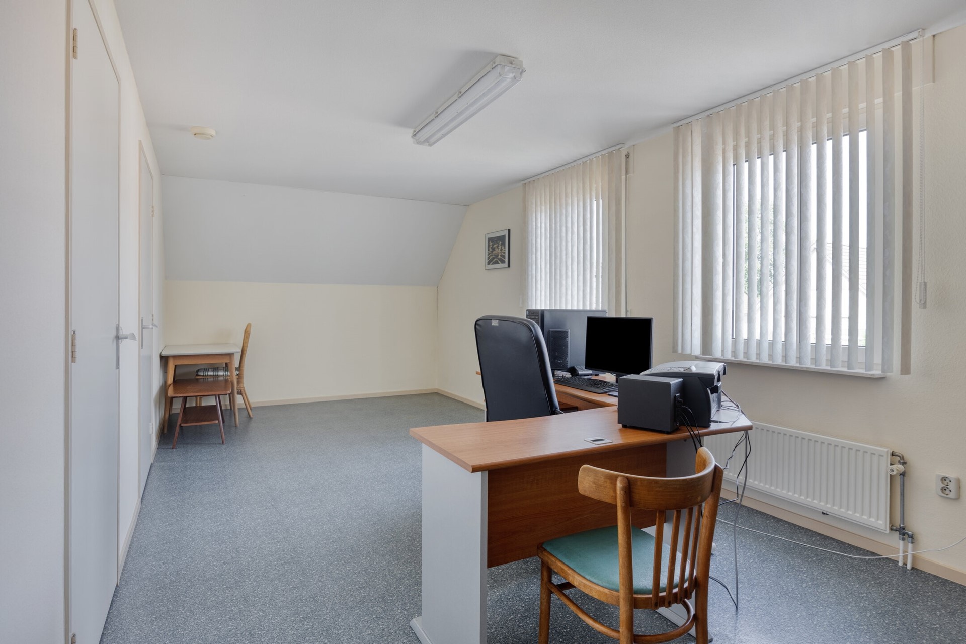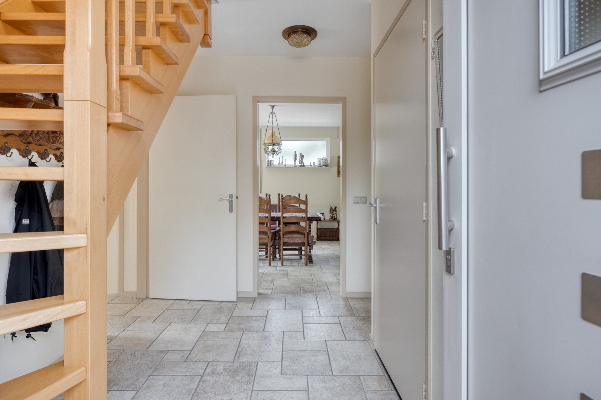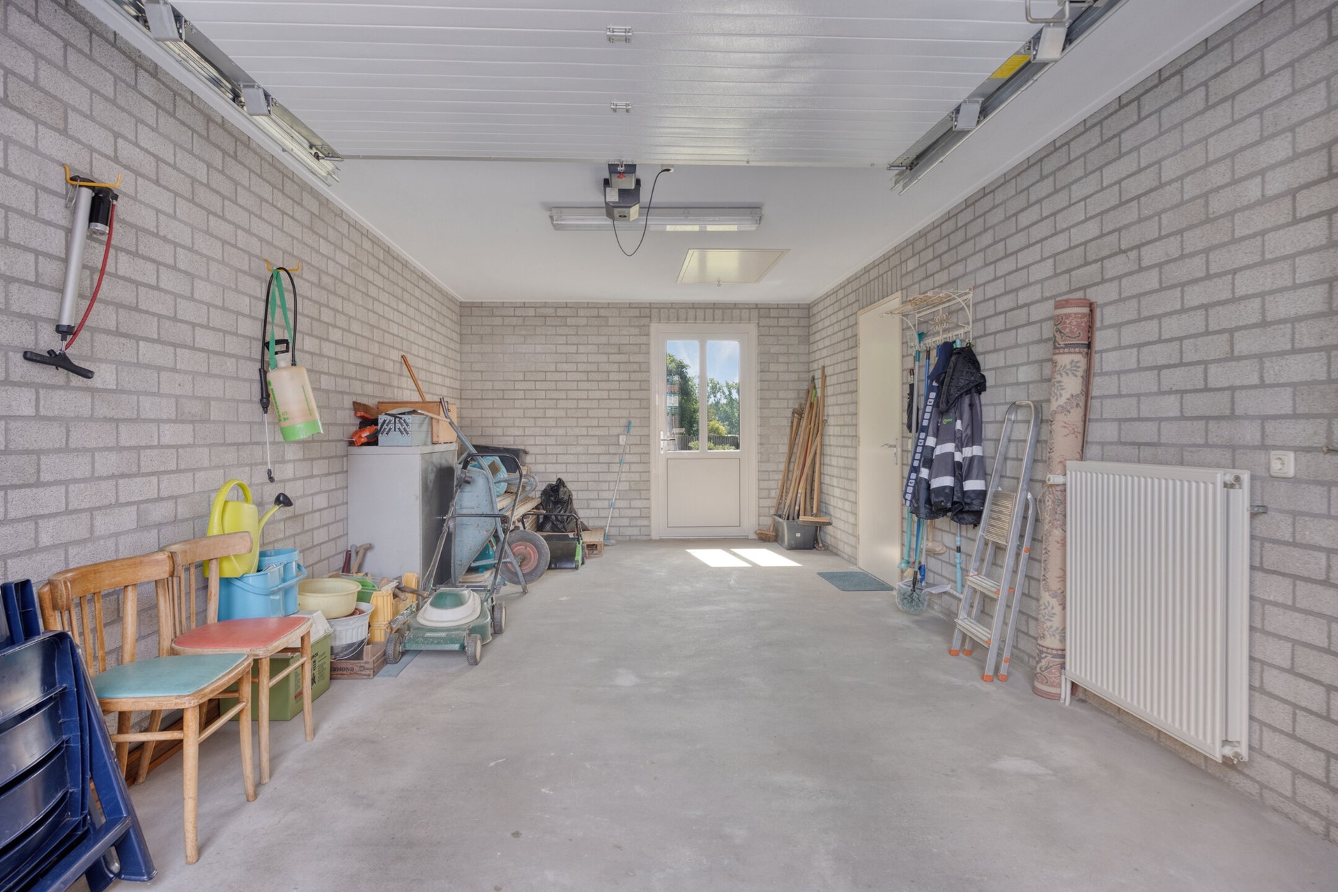 De grote inpandige garage (ca. 26 m²) is voorzien van een sectionaalpoort, een loopdeur naar de tuin, c.v.-opstelling, verwarming en beschikt over een handige bergzolder.