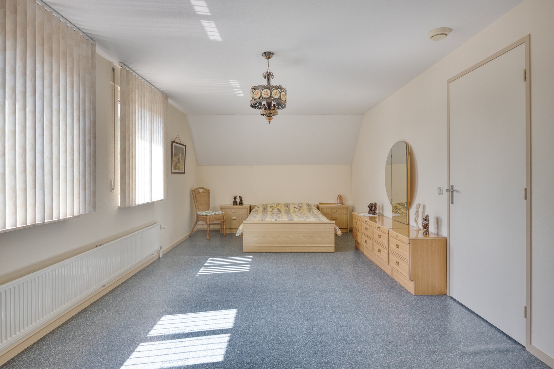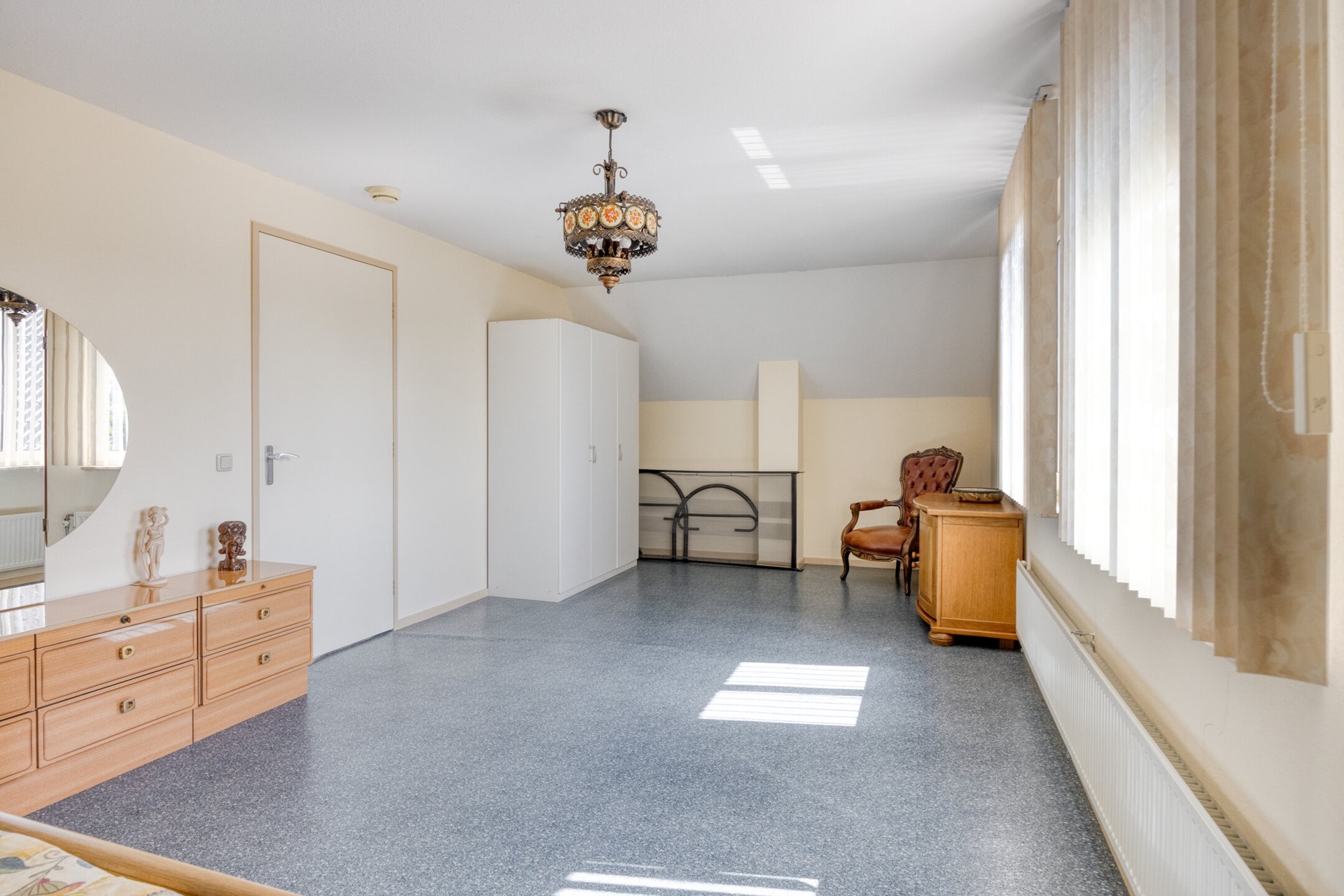 Op de eerste verdieping bevinden zich een grote overloop met knusse zithoek, 3 slaapkamers en de mogelijkheid tot het realiseren van een tweede badkamer. De overloop en slaapkamers zijn afgewerkt met een doorlopende vloer en de slaapkamers zijn respectievelijk circa 27, 25 en 12 m² groot. De slaapkamer aan de voorzijde beschikt over een ruime inloopkast. Op de verdieping is ruimte gecreëerd om een tweede badkamer te realiseren. Het leidingwerk voor deze badkamer is reeds aanwezig.