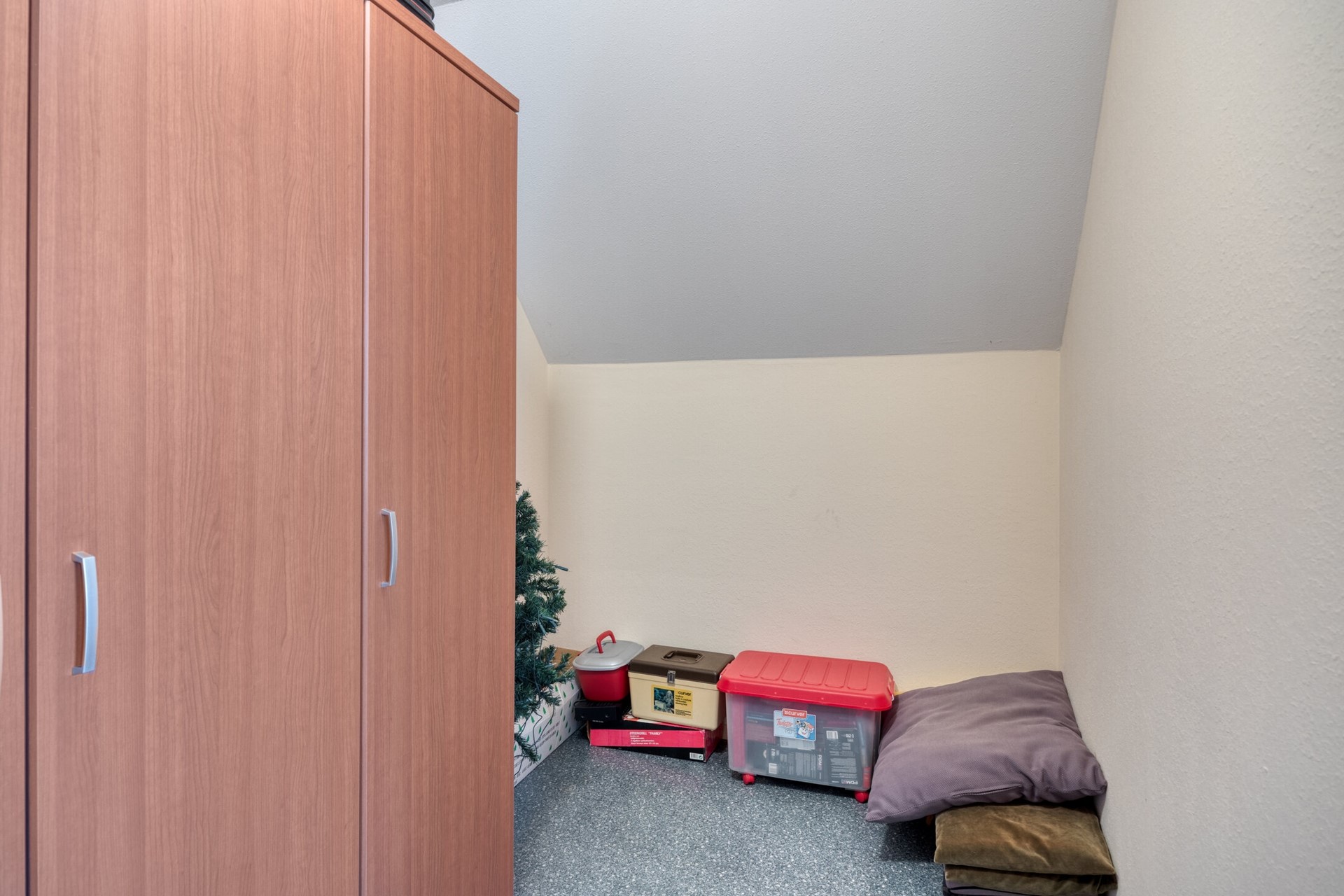 Middels een vlizotrap is de zolder (ca. 32 m²) bereikbaar.