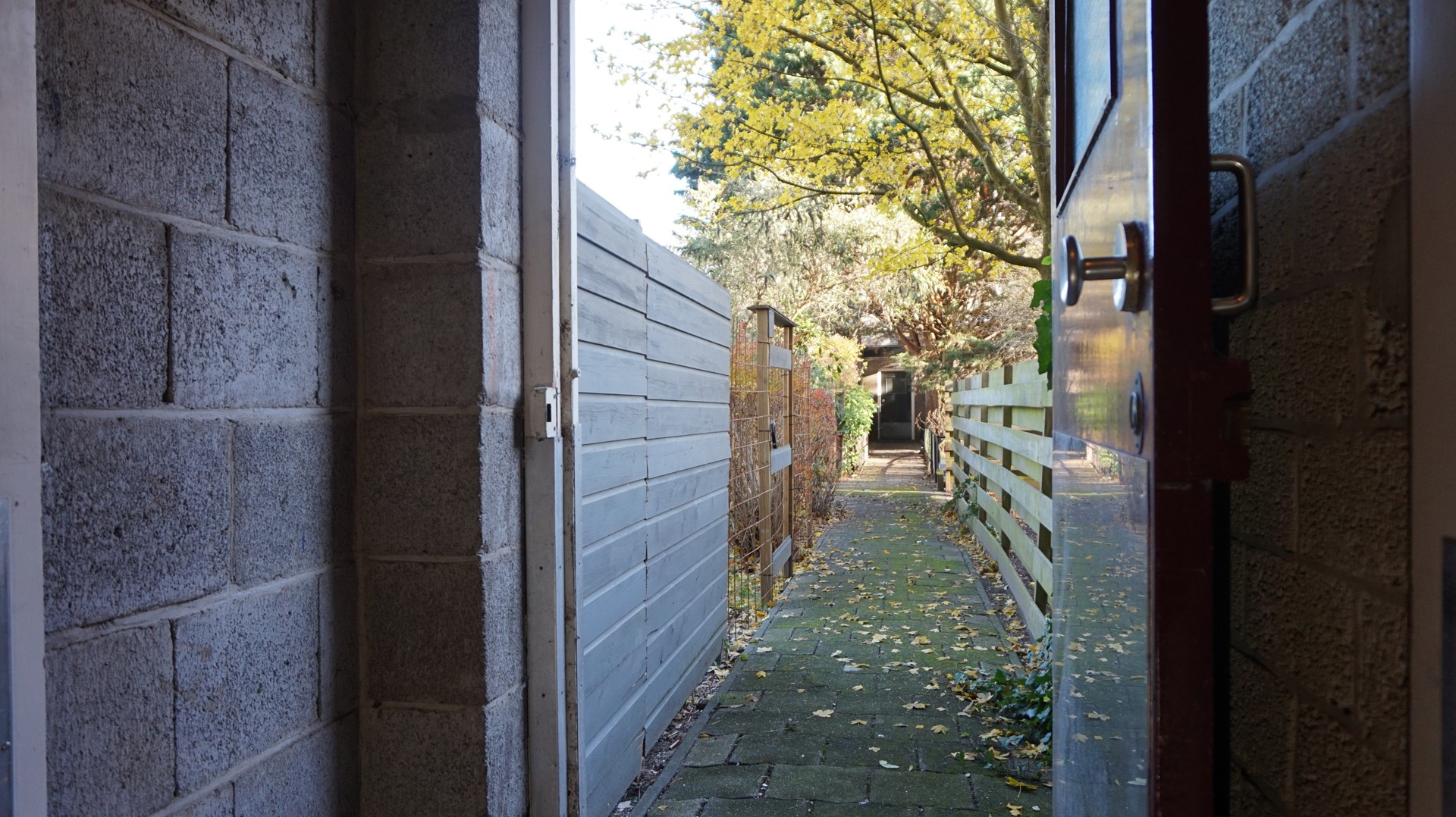 Entree met brievenbussen, trapopgang en binnendoor met toegang tot de berging.