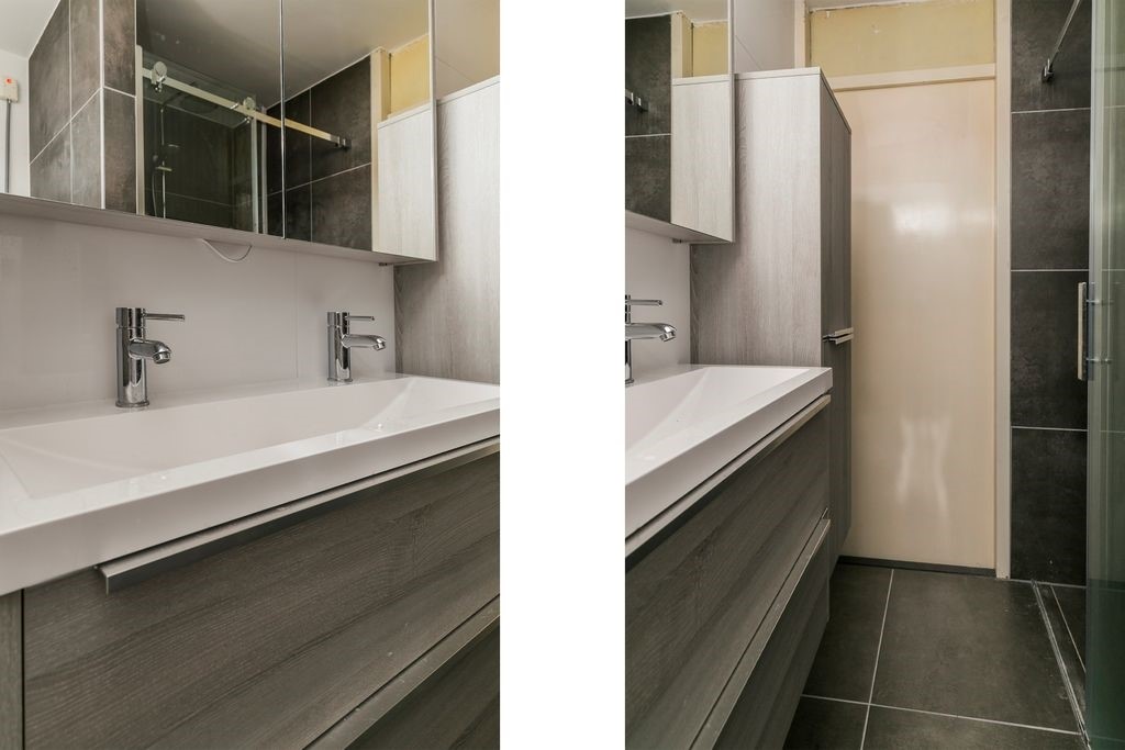Badkamervoorzieningen Dubbele wastafel, Inloopdouche, Wasmachineaansluiting, Wastafelmeubel