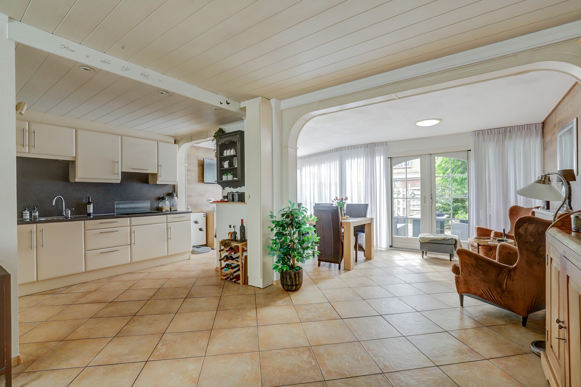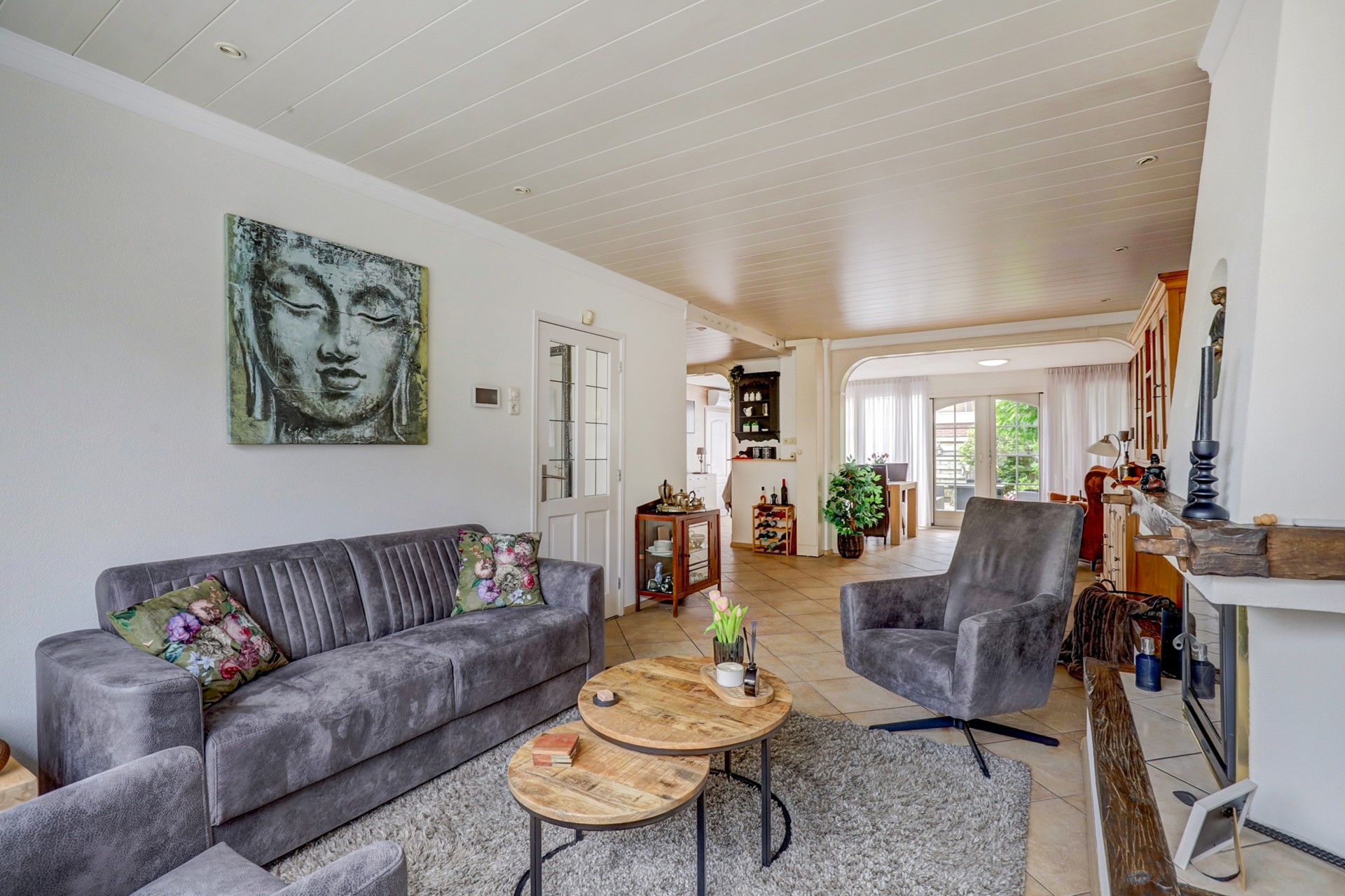 De indeling is als volgt: entree, hal met (in 2022 vernieuwde) meterkast, toilet en trapopgang. Vanuit de hal heeft u toegang tot de royale living van ca. 60 m², bestaande uit de oorspronkelijke doorzonwoonkamer (774 x 362) met houtkachel/inbouwhaard, de open(gemaakte) keuken ( x met in 2020 geplaatste hoek inbouwkeuken v.v. -apparatuur) en de uitbouw (598 x 360/250) over de gehele breedte van de woning, met toegang tot de grote aanpandige garage en openslaande deuren naar de zonnige achtertuin. De vloer van de living is afgewerkt met plavuizen en voorzien van vloerverwarming.