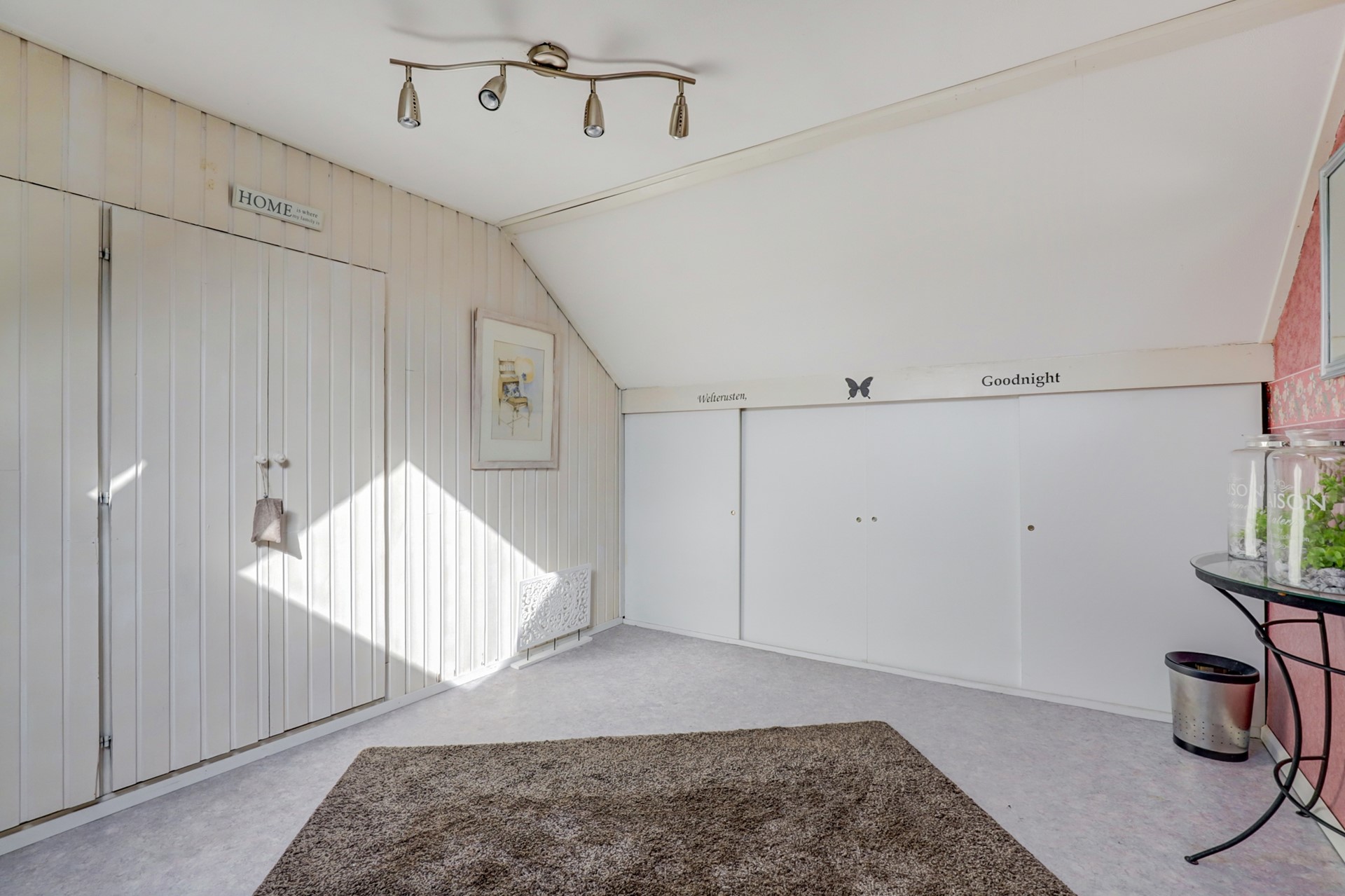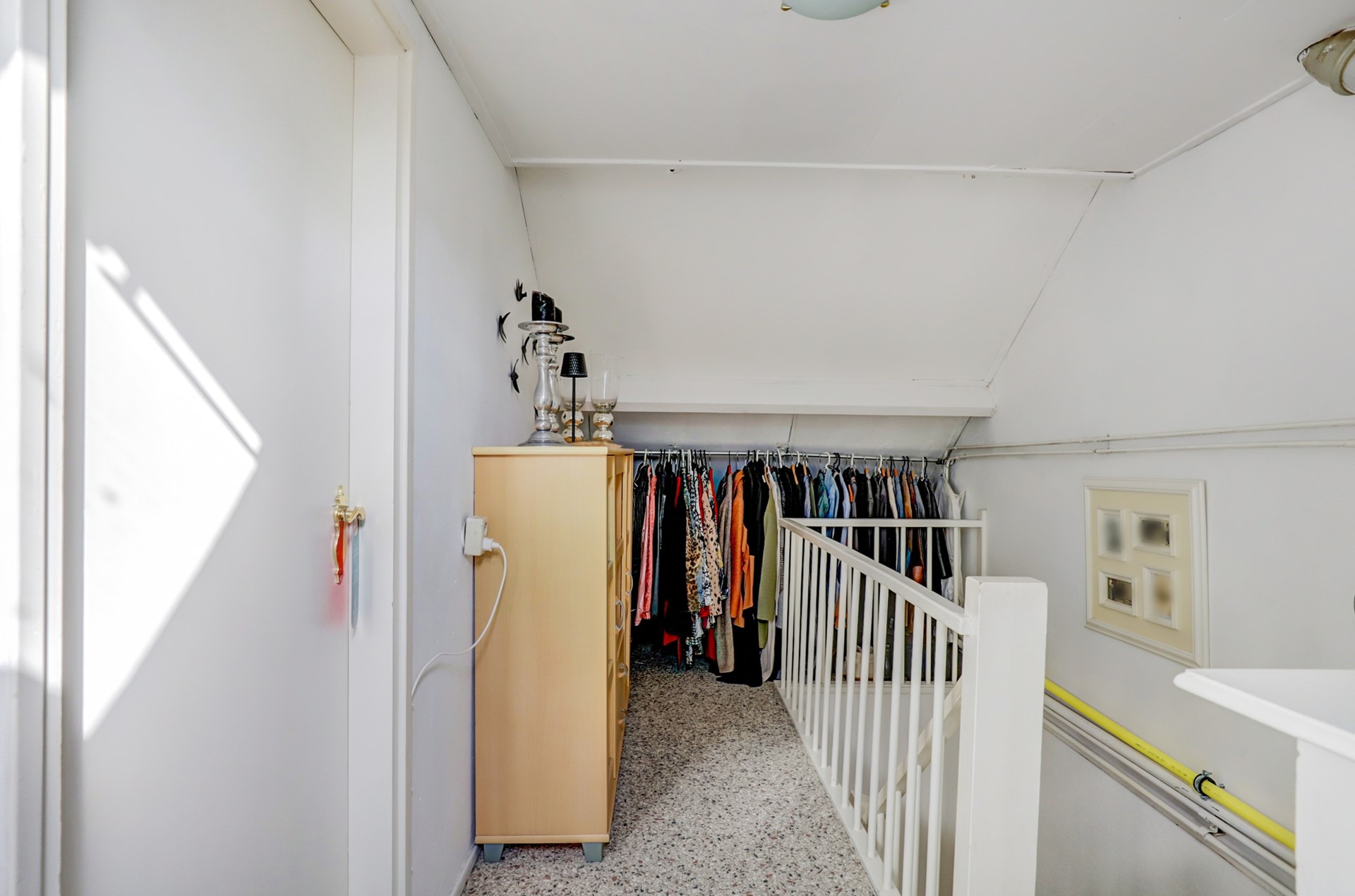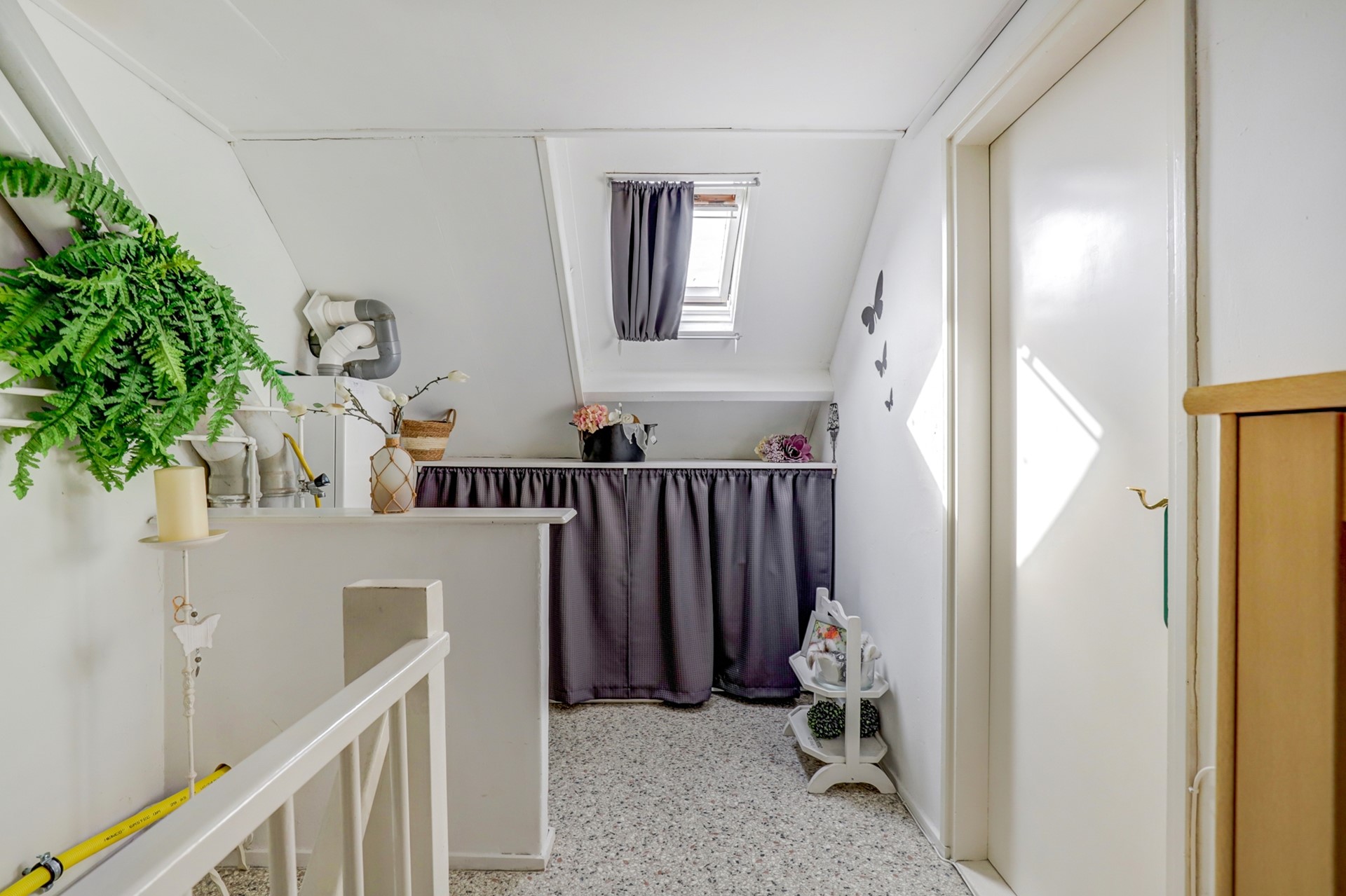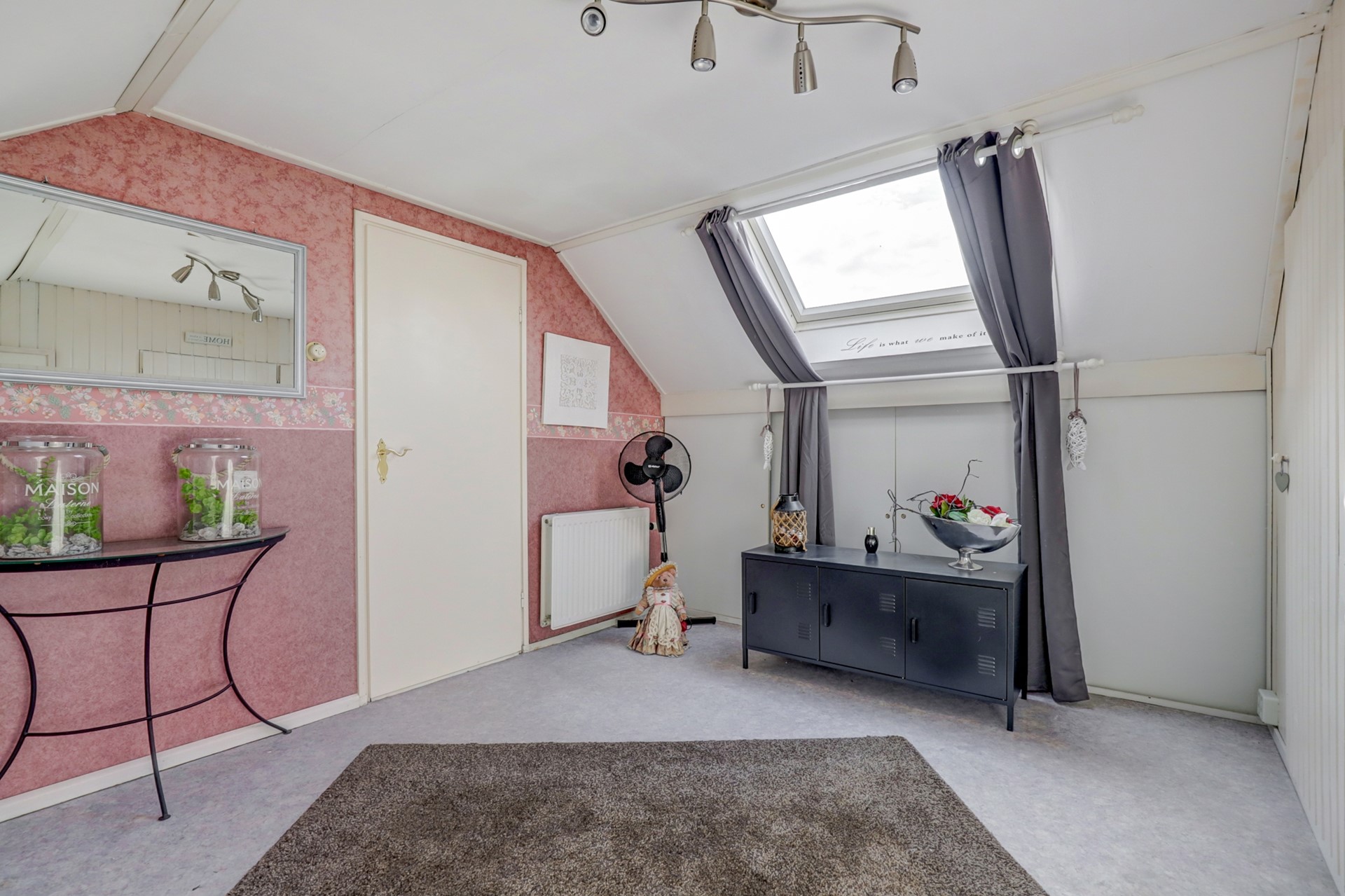 Via een vaste trap bereikt u de tweede verdieping, die als volgt is ingedeeld: voorzolder met dakraam en c.v.-opstelling en prima derde (of vierde) slaapkamer (362 x 359) met dakraam en vaste kast,