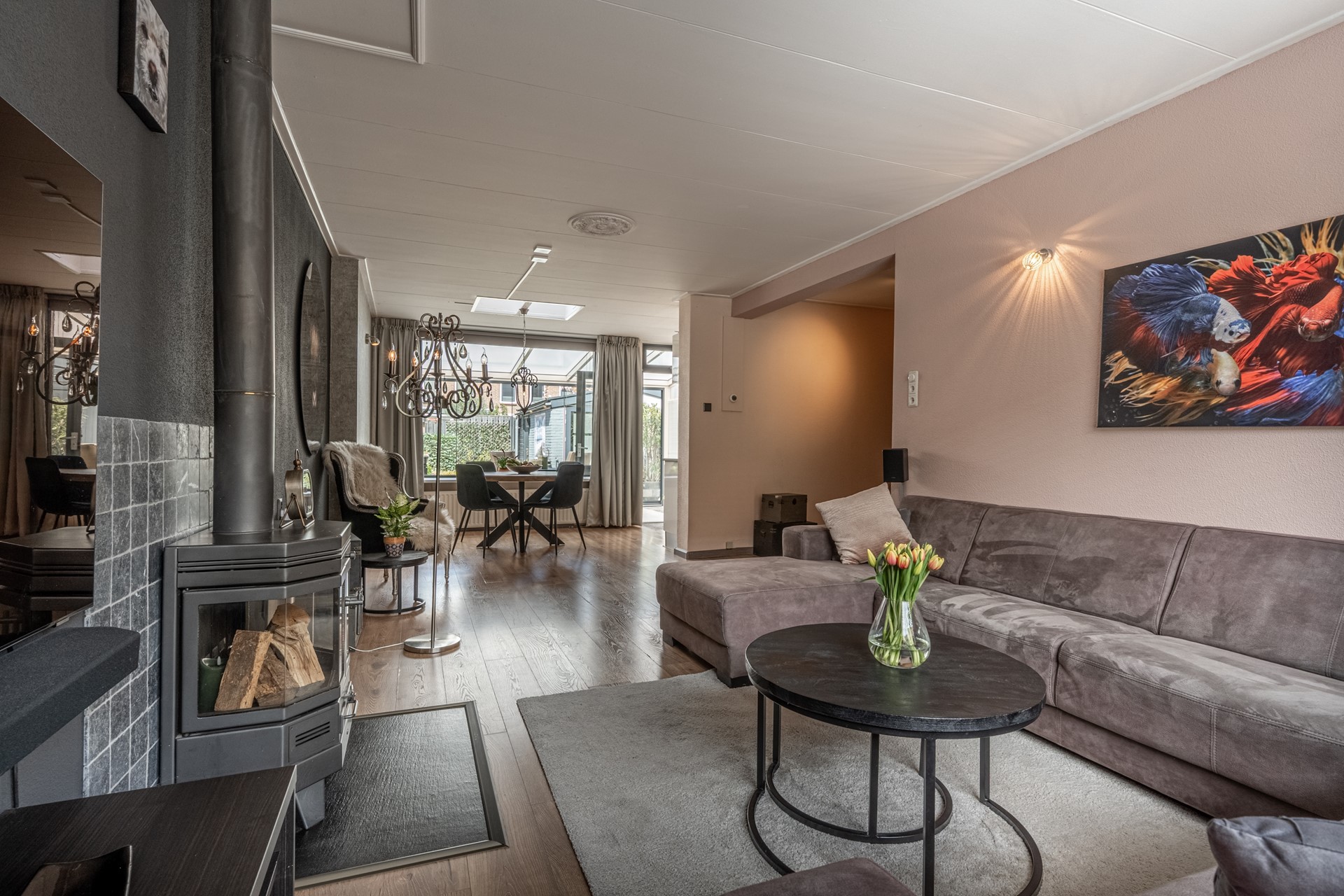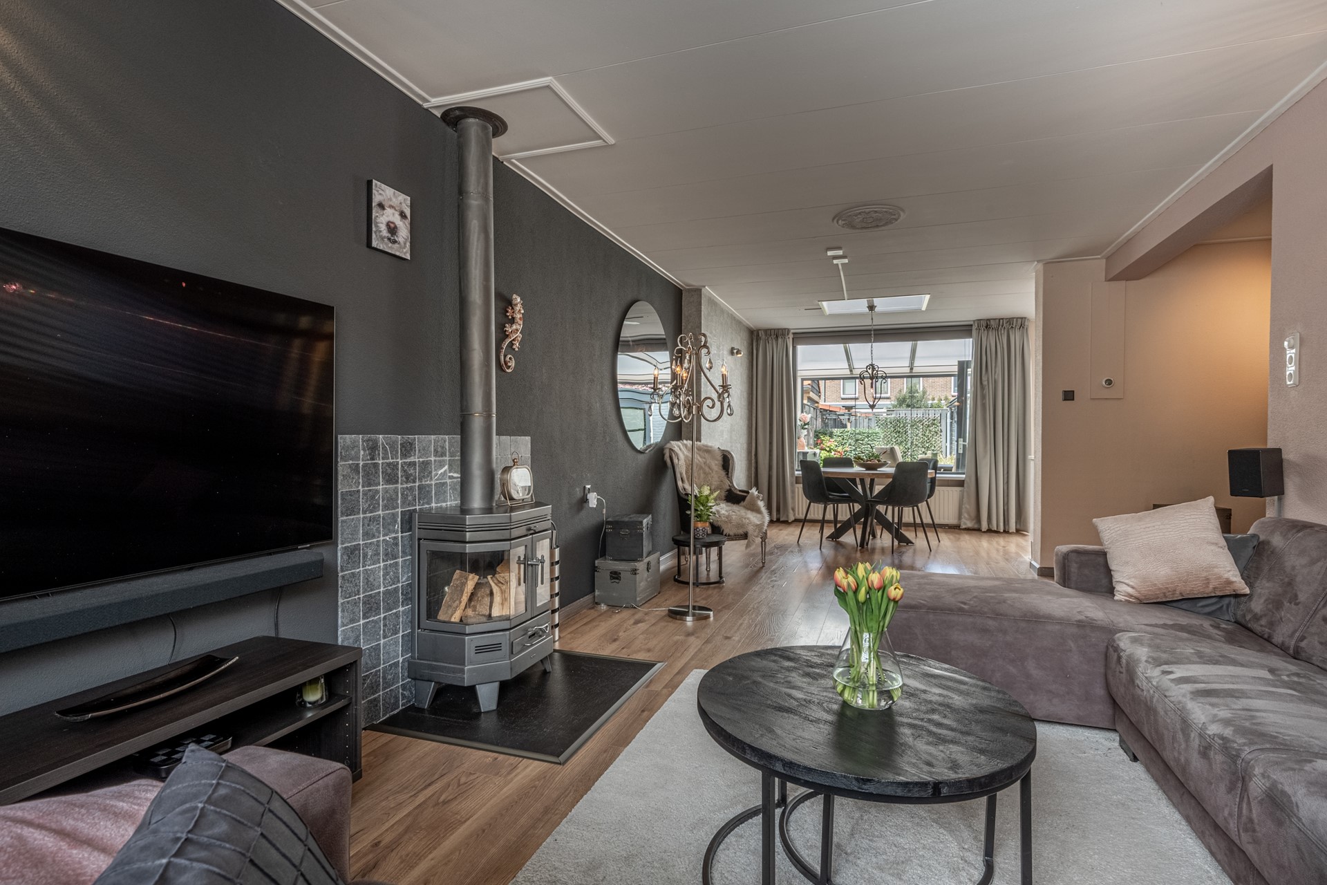 Via de gezellige groene voortuin kom je binnen in de hal met toilet, meterkast en trapopgang. Vanuit hier stap je de ruime doorzon woonkamer binnen, die direct opvalt door de speelse indeling en de fijne lichtinval. De houtkachel vormt hier een echte sfeermaker. Aan de achterzijde is de woning uitgebouwd, waardoor er volop ruimte is voor een grote zithoek én eethoek.