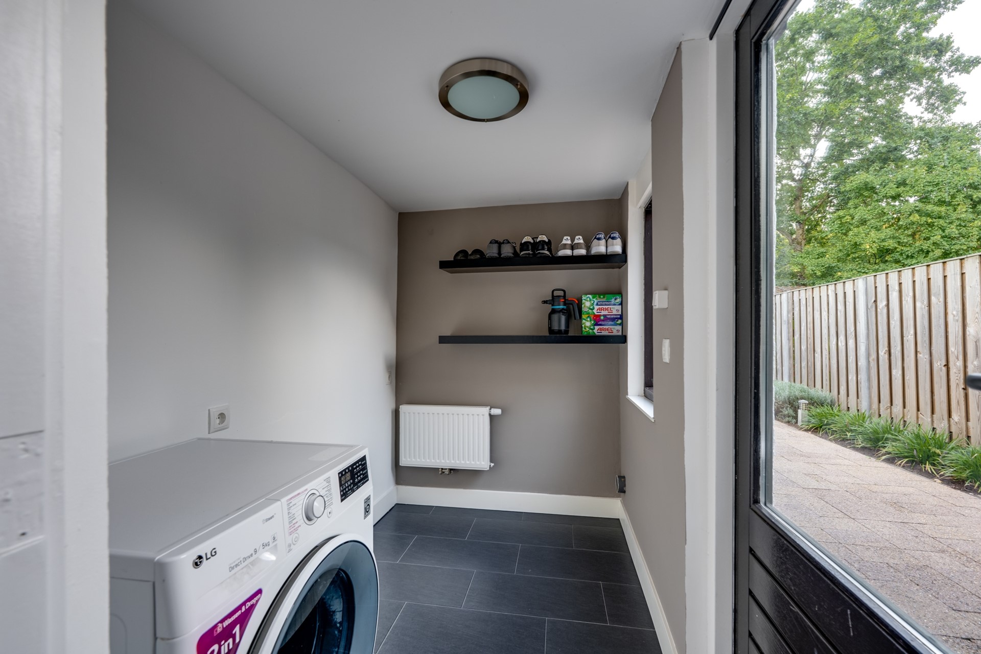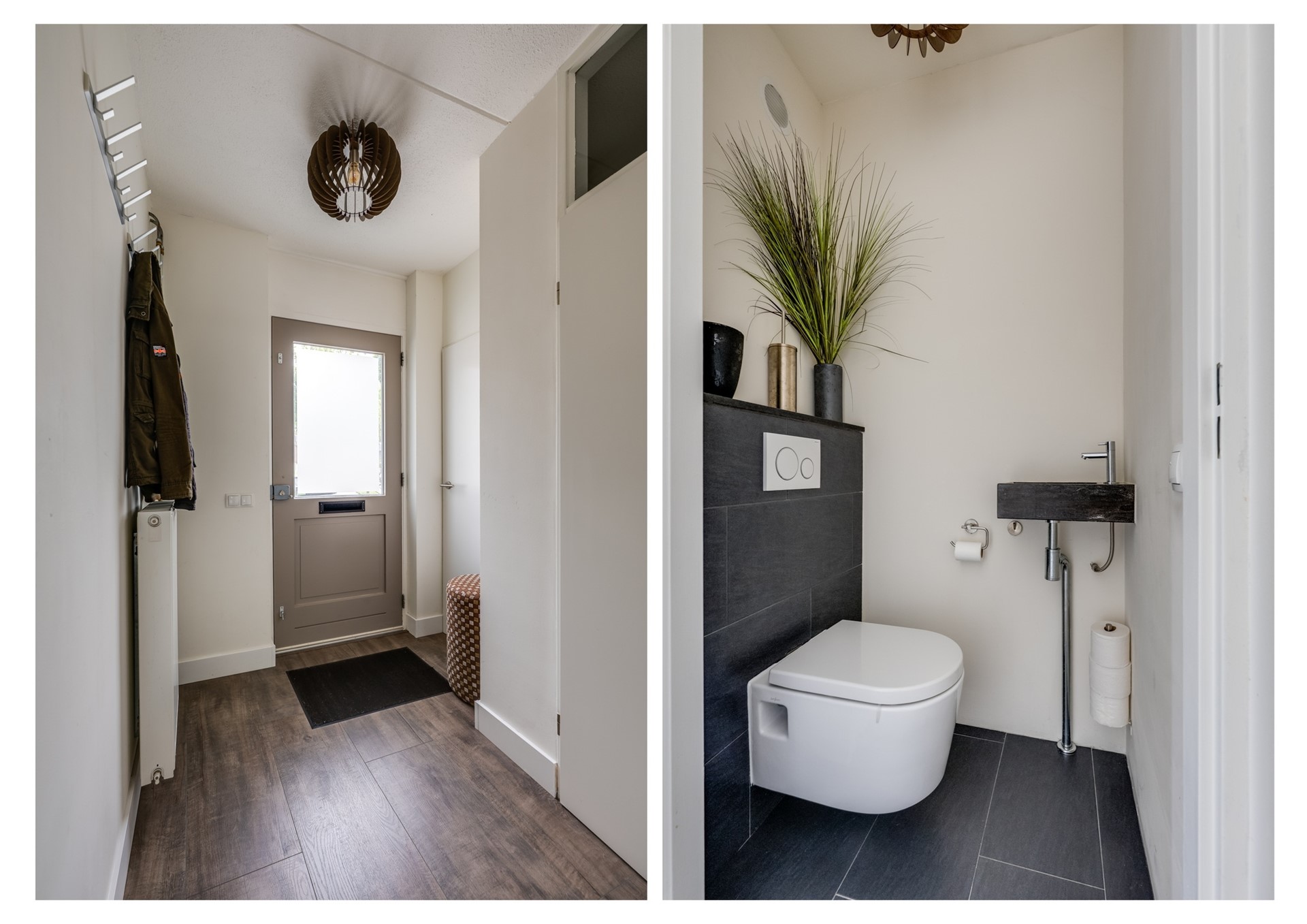 In de entree vindt u de meterkast (9 groepen, 2 aardlekschakelaars en glasvezel). Hier vindt u ook het zwevend toilet met natuurstenen fonteintje en de tussendeur naar de woonkamer.