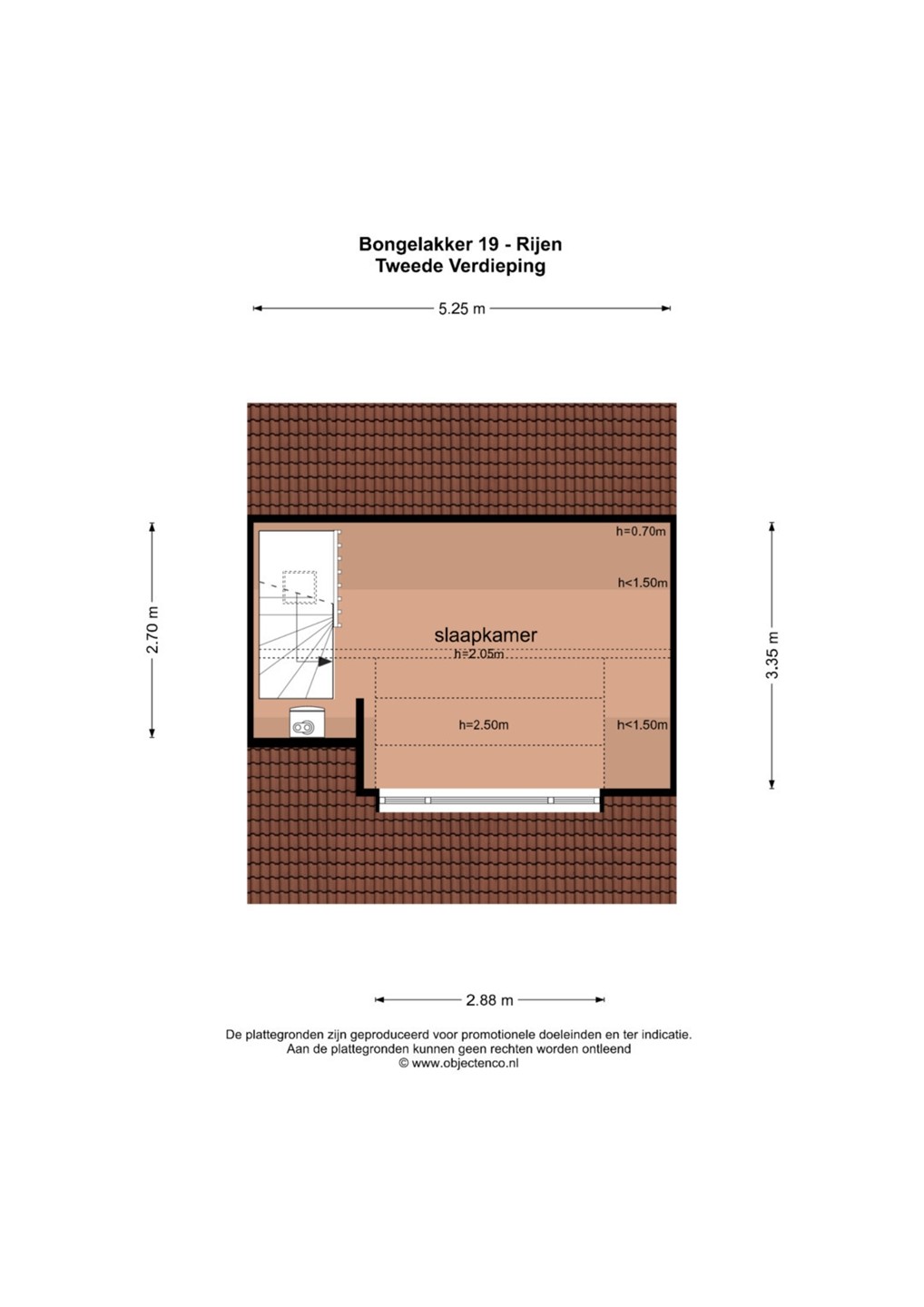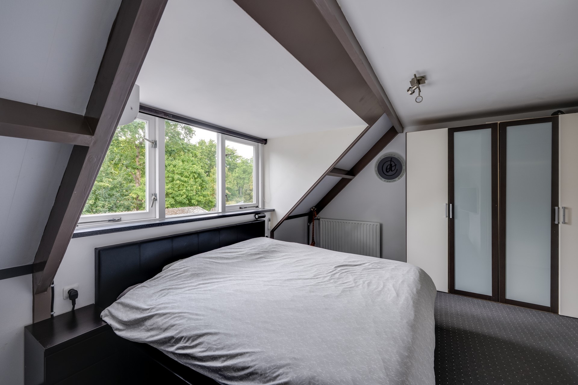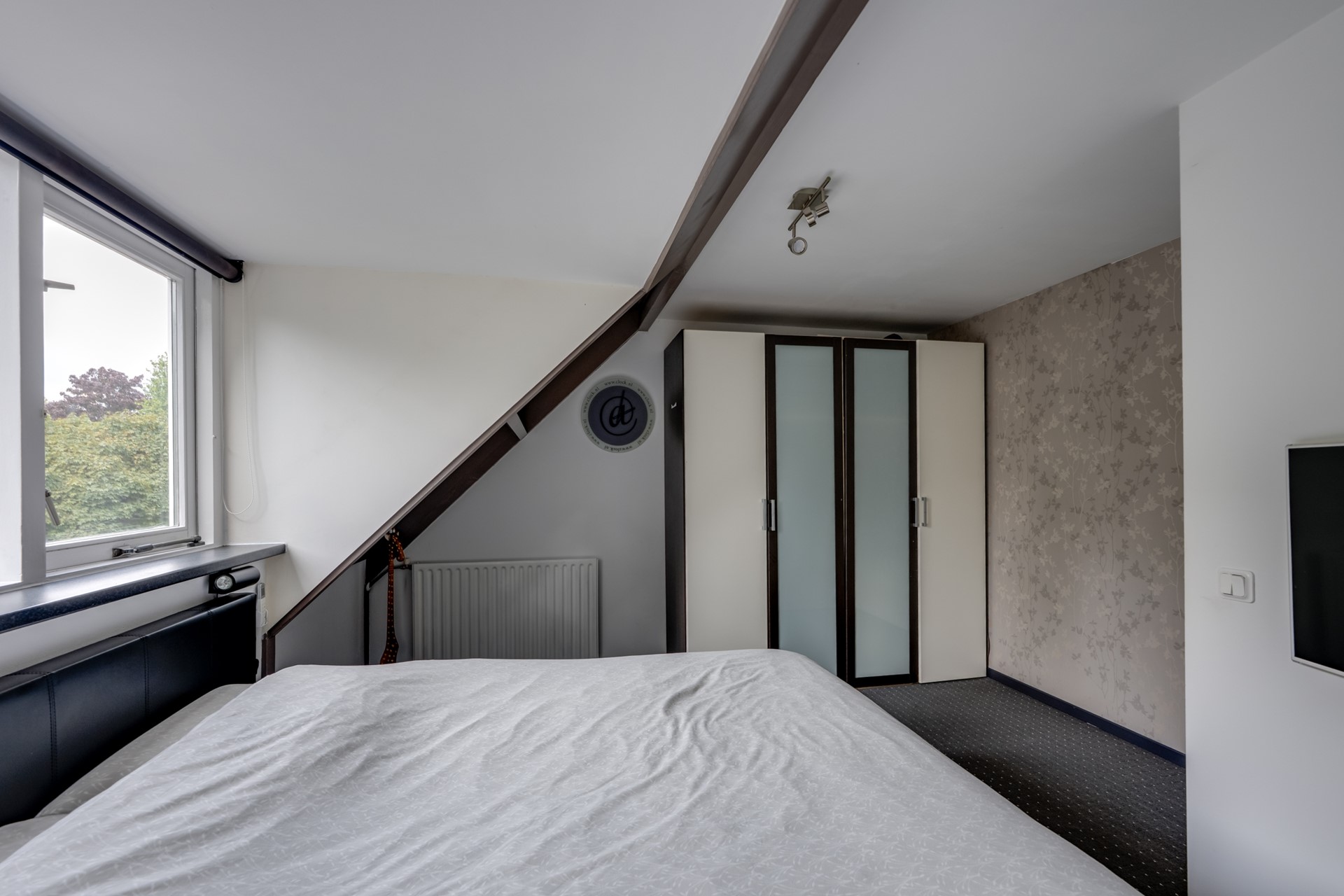 Deze slaapkamer (5,12 m. x 3,86/2,86 m.) ligt aan de achterzijde, over de gehele breedte, van de woning en heeft een dakkapel v.v. een hardhouten kozijn met dubbel glas. Er hangt een airconditioner en er is een tv-aansluiting doorgetrokken. Er ligt vloerbedekking en de wanden en het plafond zijn v.v. glad stucwerk. Eén wand is afgewerkt met behang.