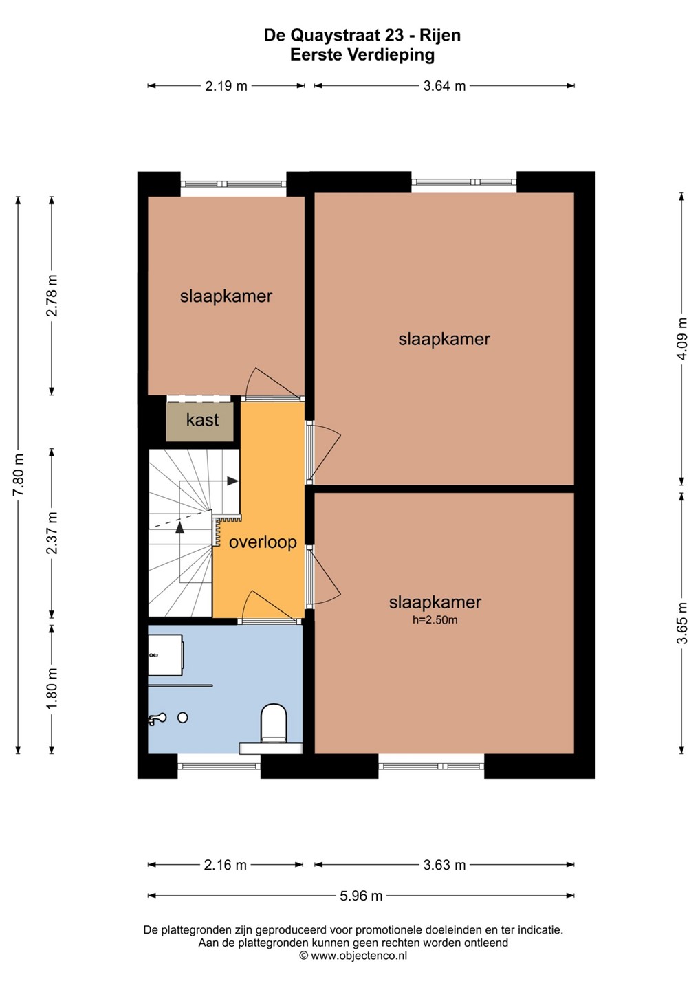 Aan de achterzijde gelegen slaapkamer (2,78 m. x 2,19 m.). Deze kamer heeft een inbouwkast.