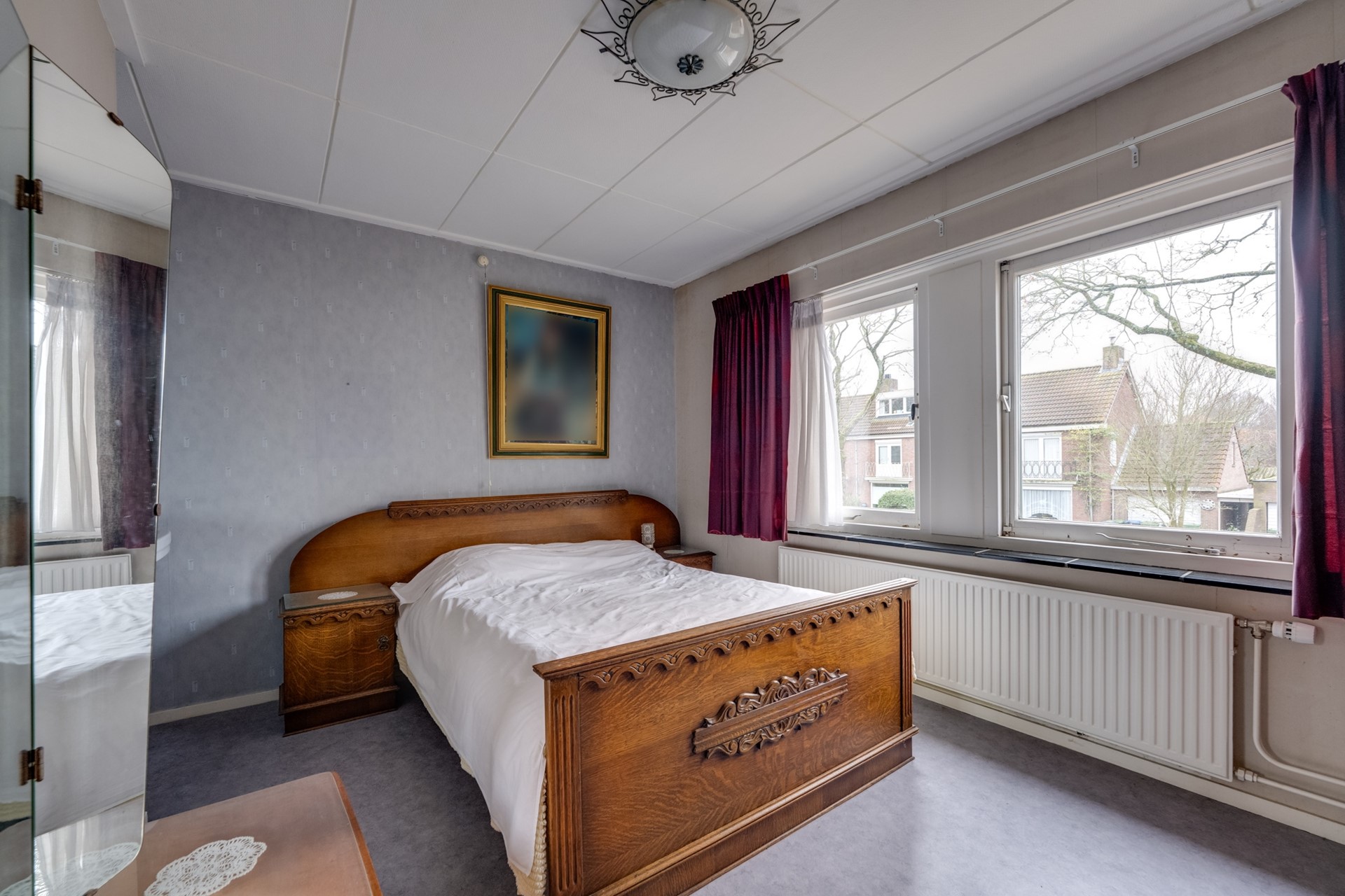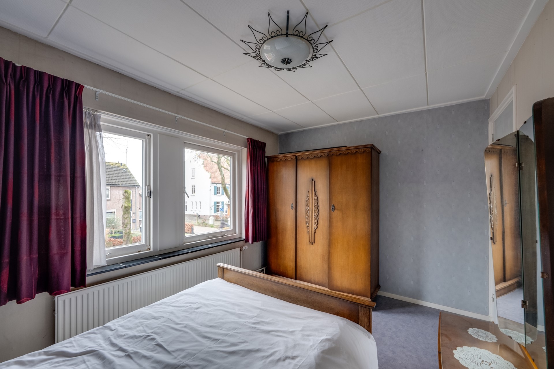 Aan de voorzijde gelegen slaapkamer (2,68 m. x 2,09 m.). Het hardhouten kozijn is v.v. enkel glas.