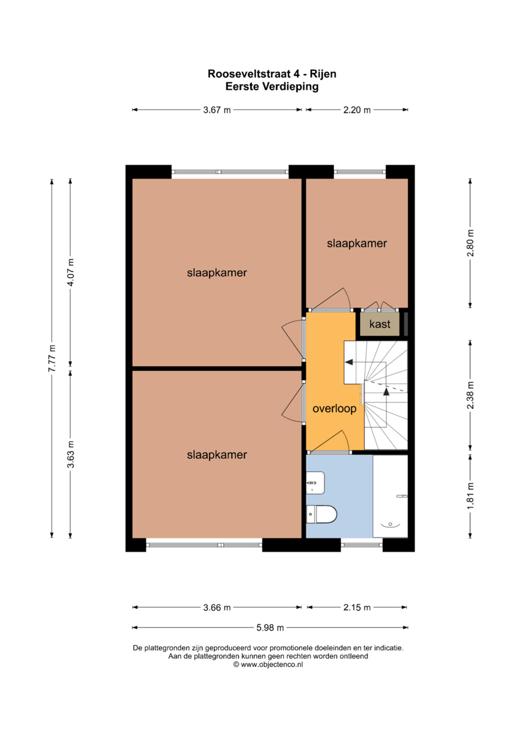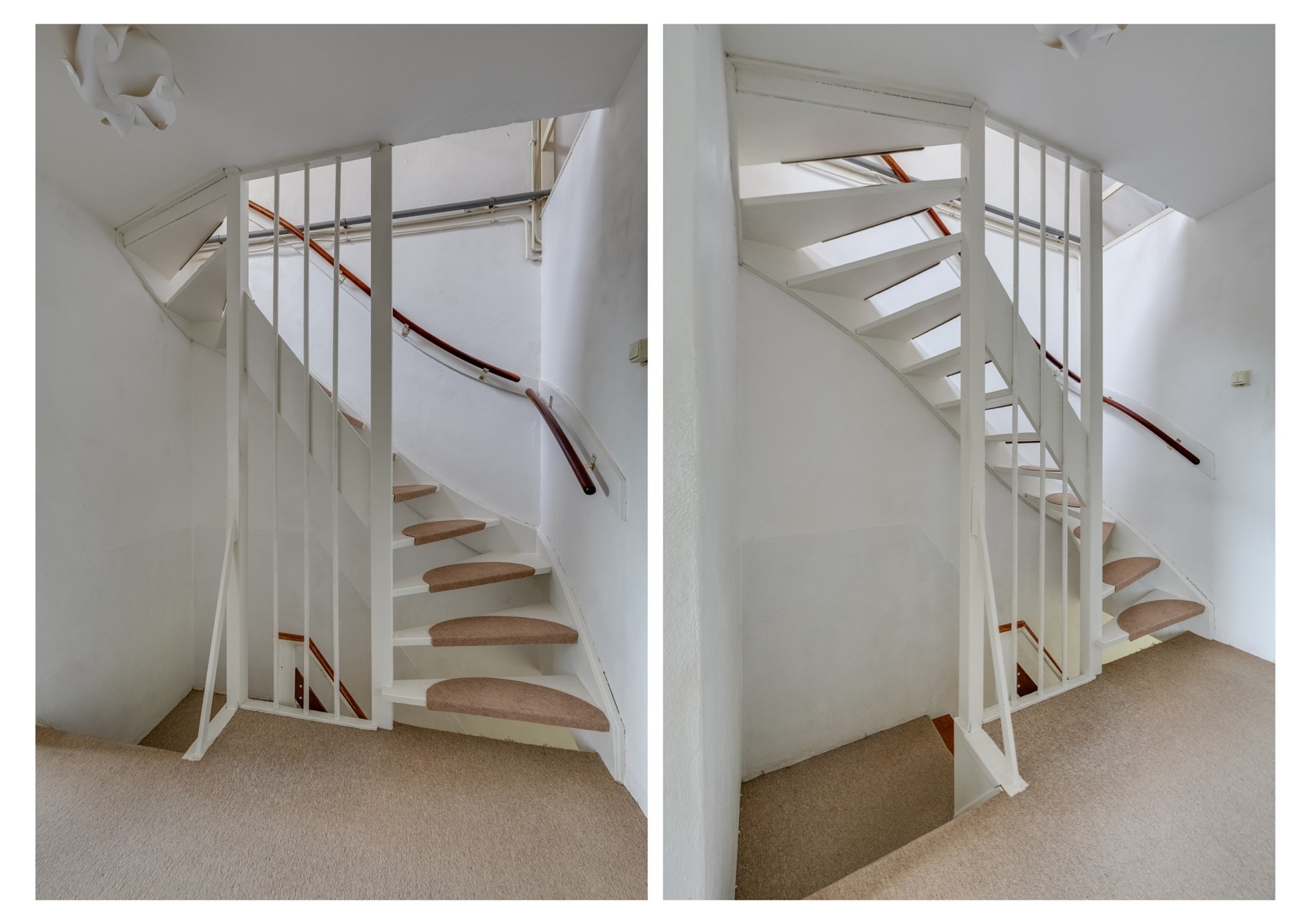 Vanuit de hal heeft u toegang tot 3 slaapkamers, de badkamer en de vaste trapopgang naar de tweede verdieping.