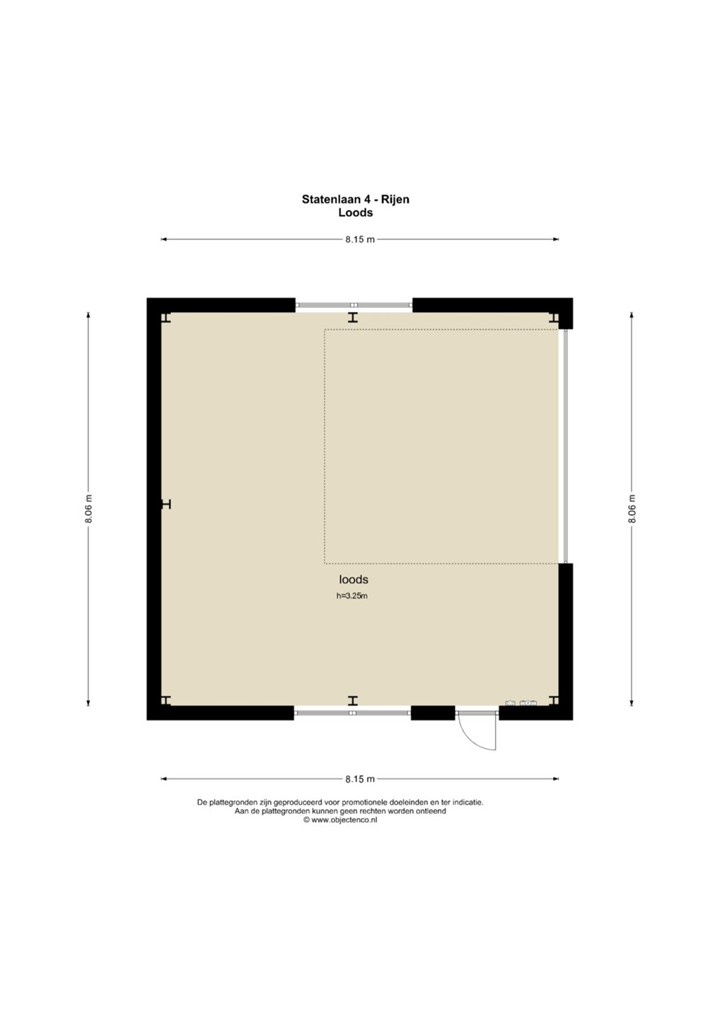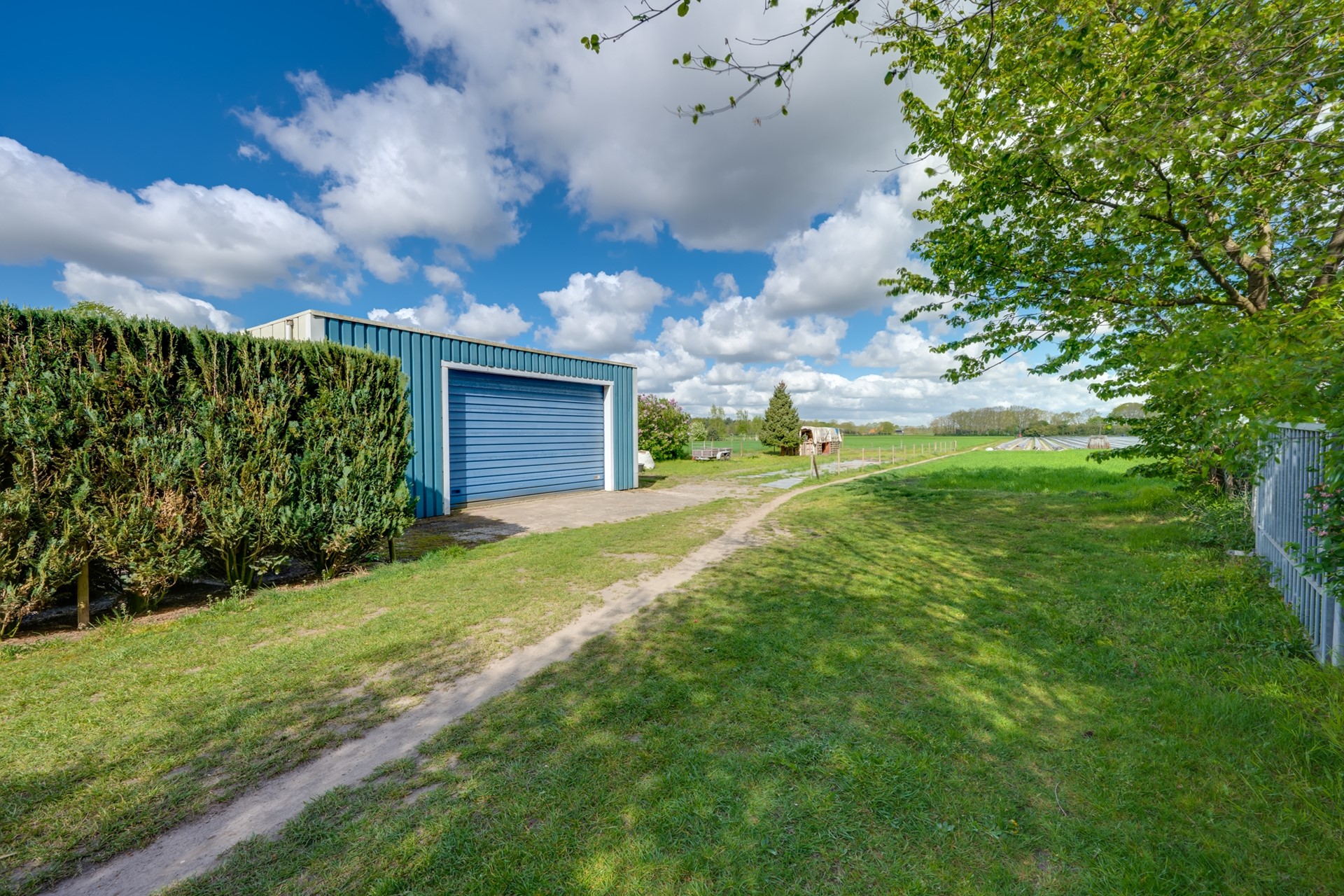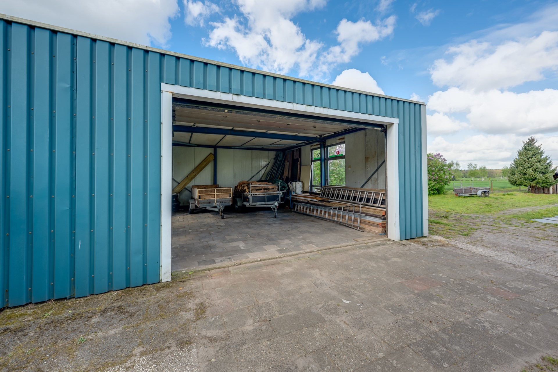 Verder op het perceel staat een loods. De loods (8,15 m. x 8,06 m.) is ook te bereiken via de oprit (v.v. recht van overpad) aan de rechterzijde van de woning. De loods heeft een elektrisch, bedienbare, brede deur en een loopdeur. Er is krachtstroom aanwezig. Achter de loods heeft u nog een groot deel van het perceel liggen.