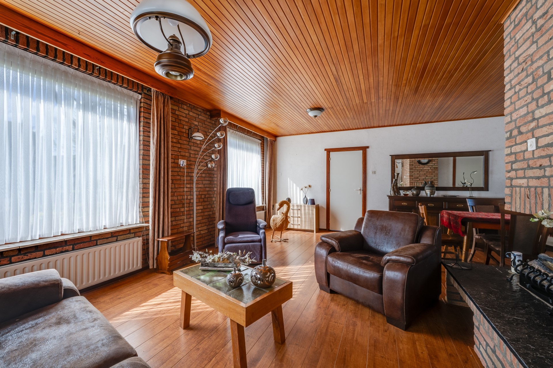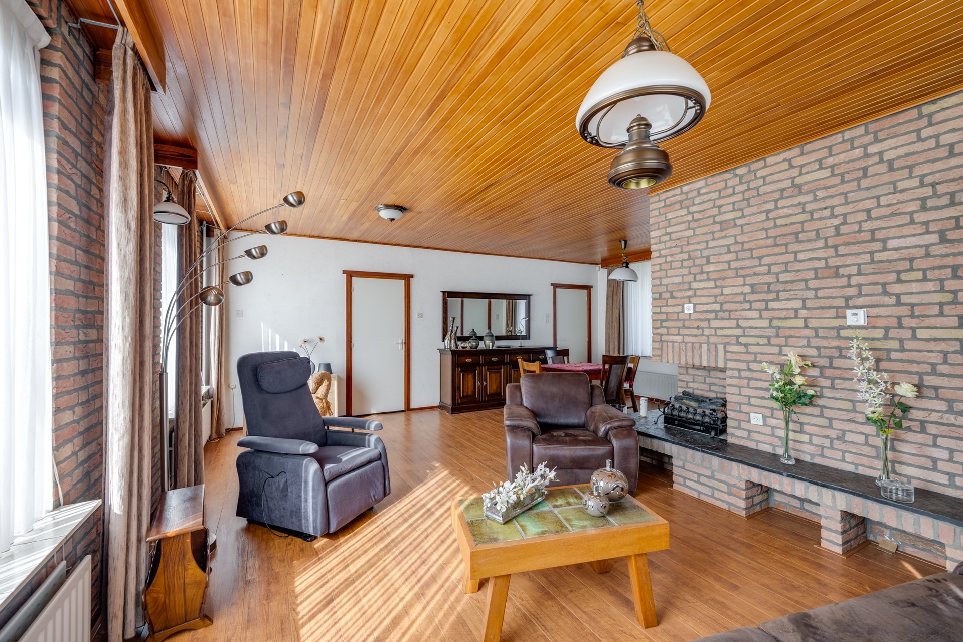 De woonkamer (ca. 40 m²) heeft een laminaatvloer en er zit een oudere haard, waarvan werking niet bekend is. U heeft aan 3 zijden lichtinval. Vanuit de woonkamer kunt u naar de keuken en slaapkamer.