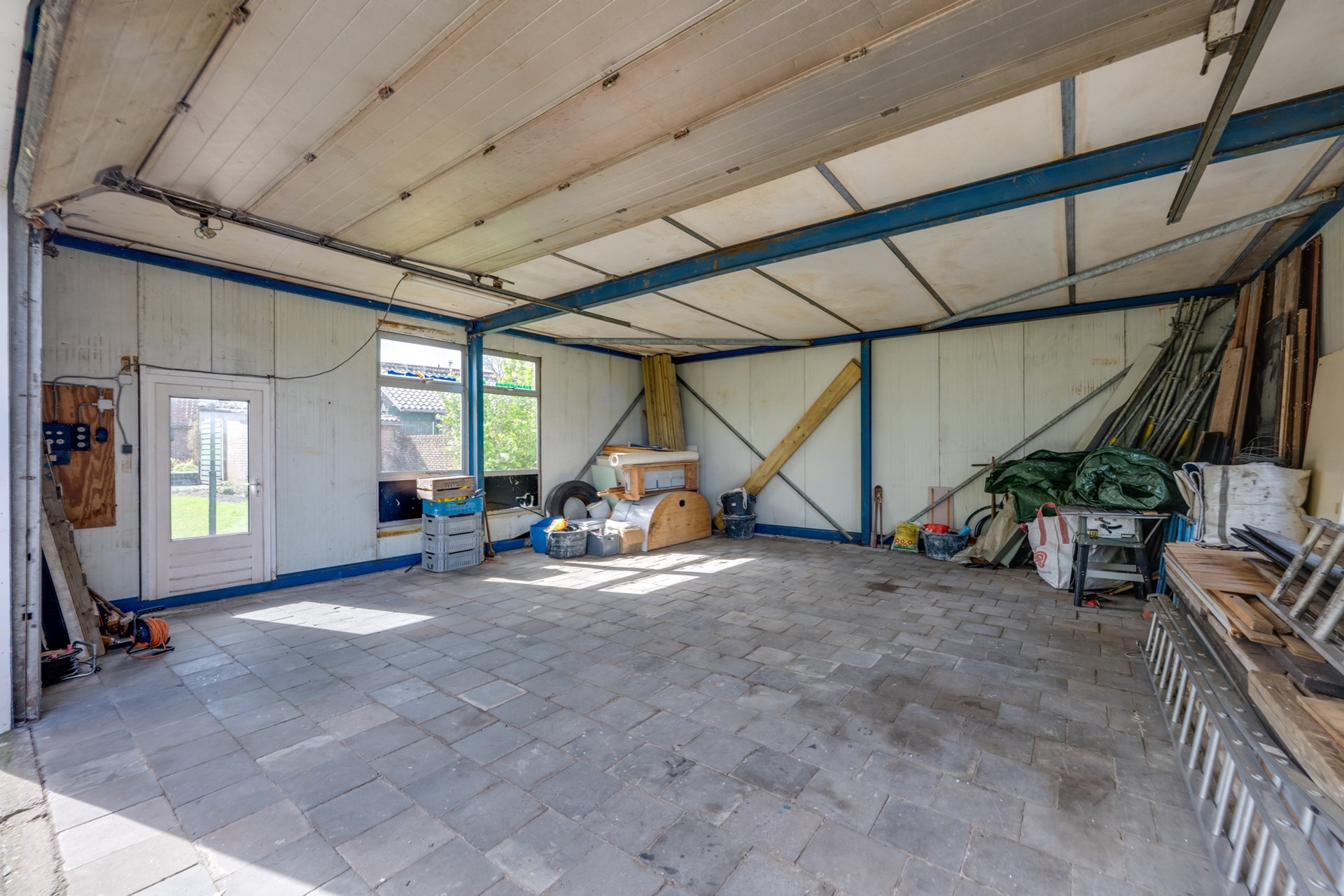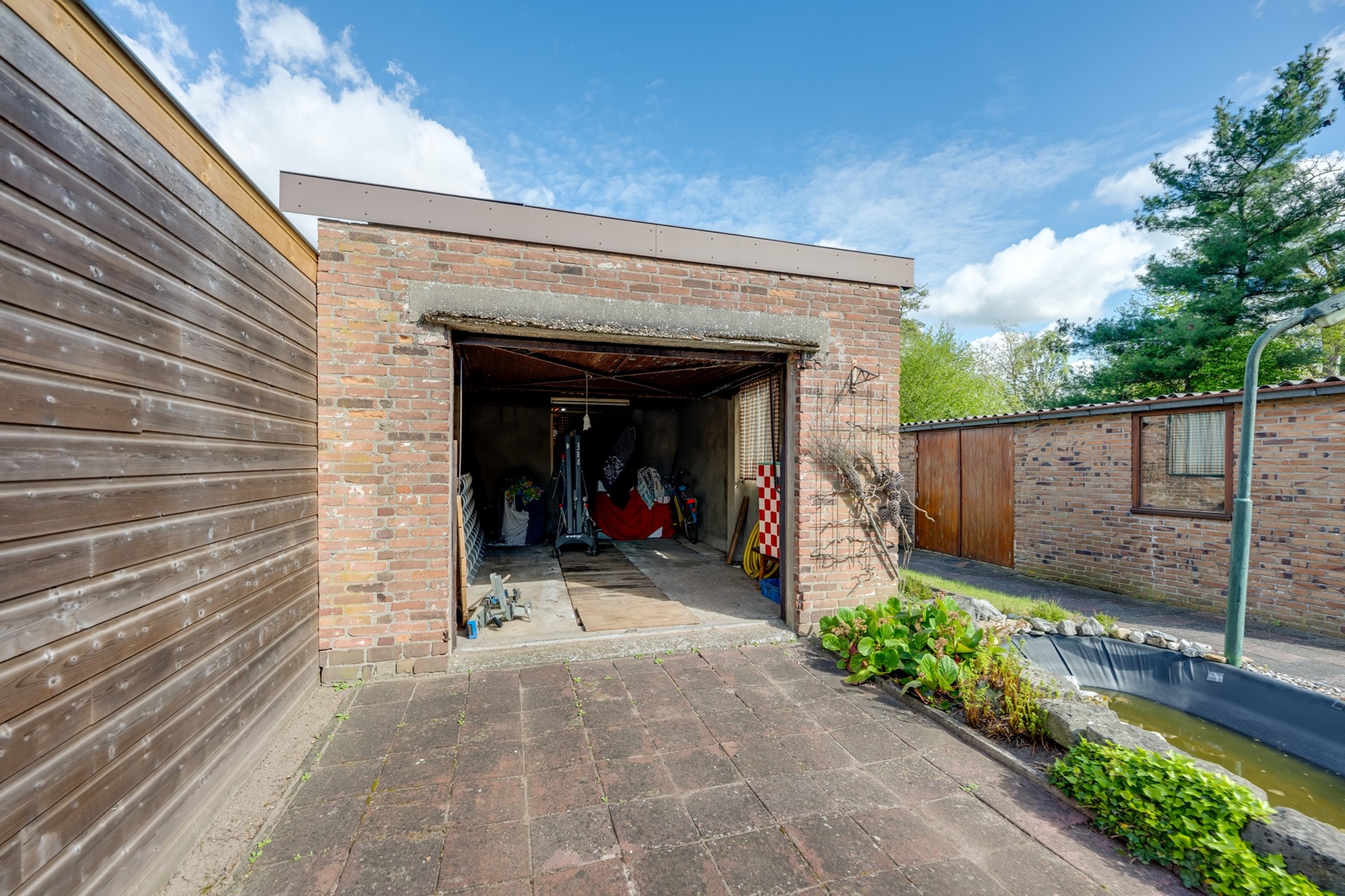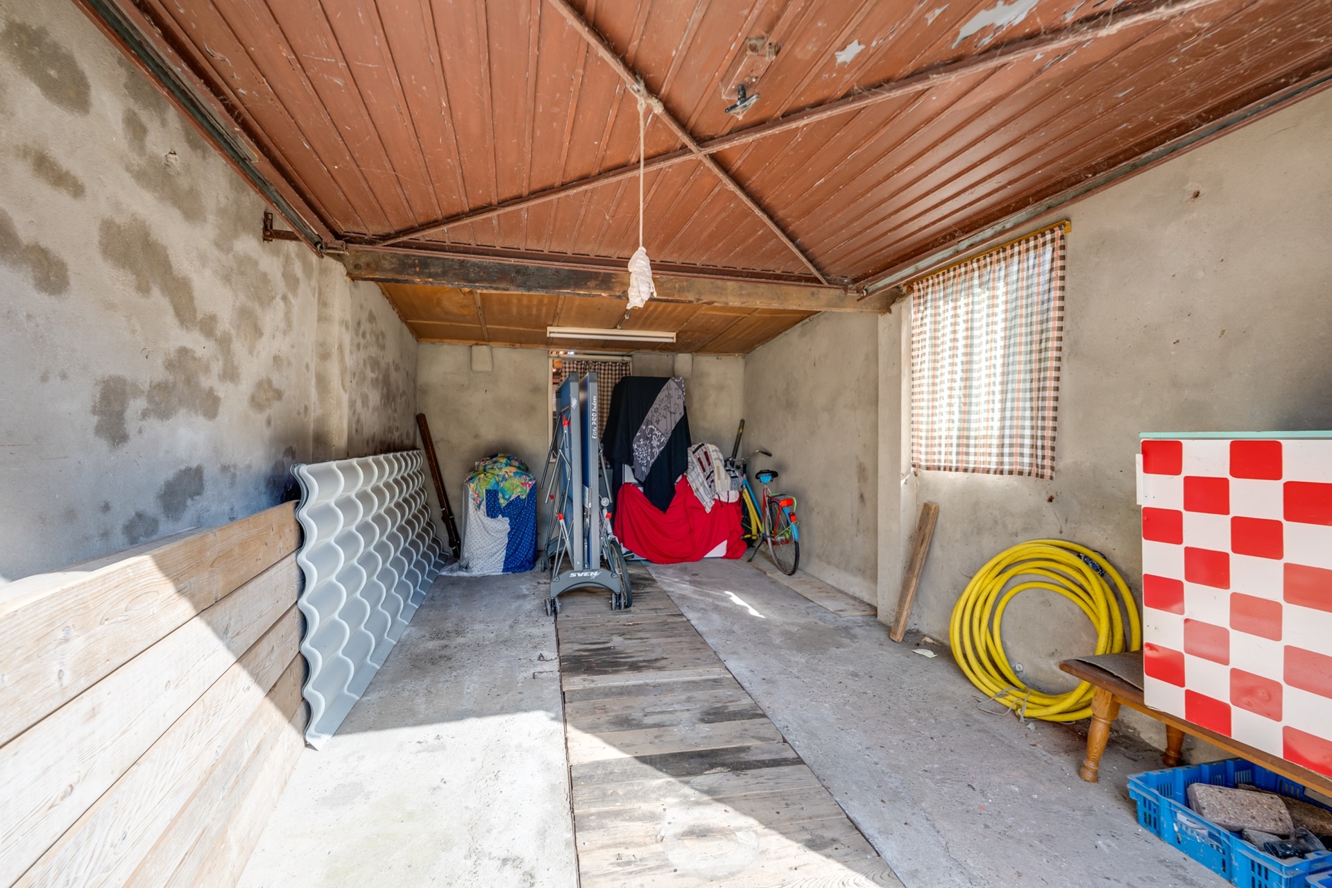 De vrijstaande, stenen garage (5,67 m. x 3,60 m.) kunt u bereiken via de oprit aan de linkerzijde van de woning. De garage is v.v. een smeerput en heeft een stalen kanteldeur. Er is elektra aanwezig. Aan de garage is aan de achterzijde een berging (3,84 m. x 4,84/4,10 m.) te vinden met een brede, openslaande, kunststof deur. Er is elektra aanwezig. Tussen de garage en berging zit nog een kleine ruimte (3,60 m. x 1,86 m.), waar vroeger vogels werden gehouden.