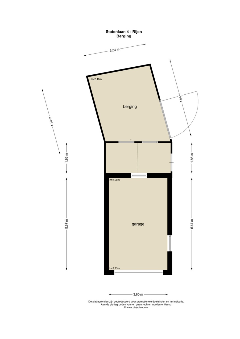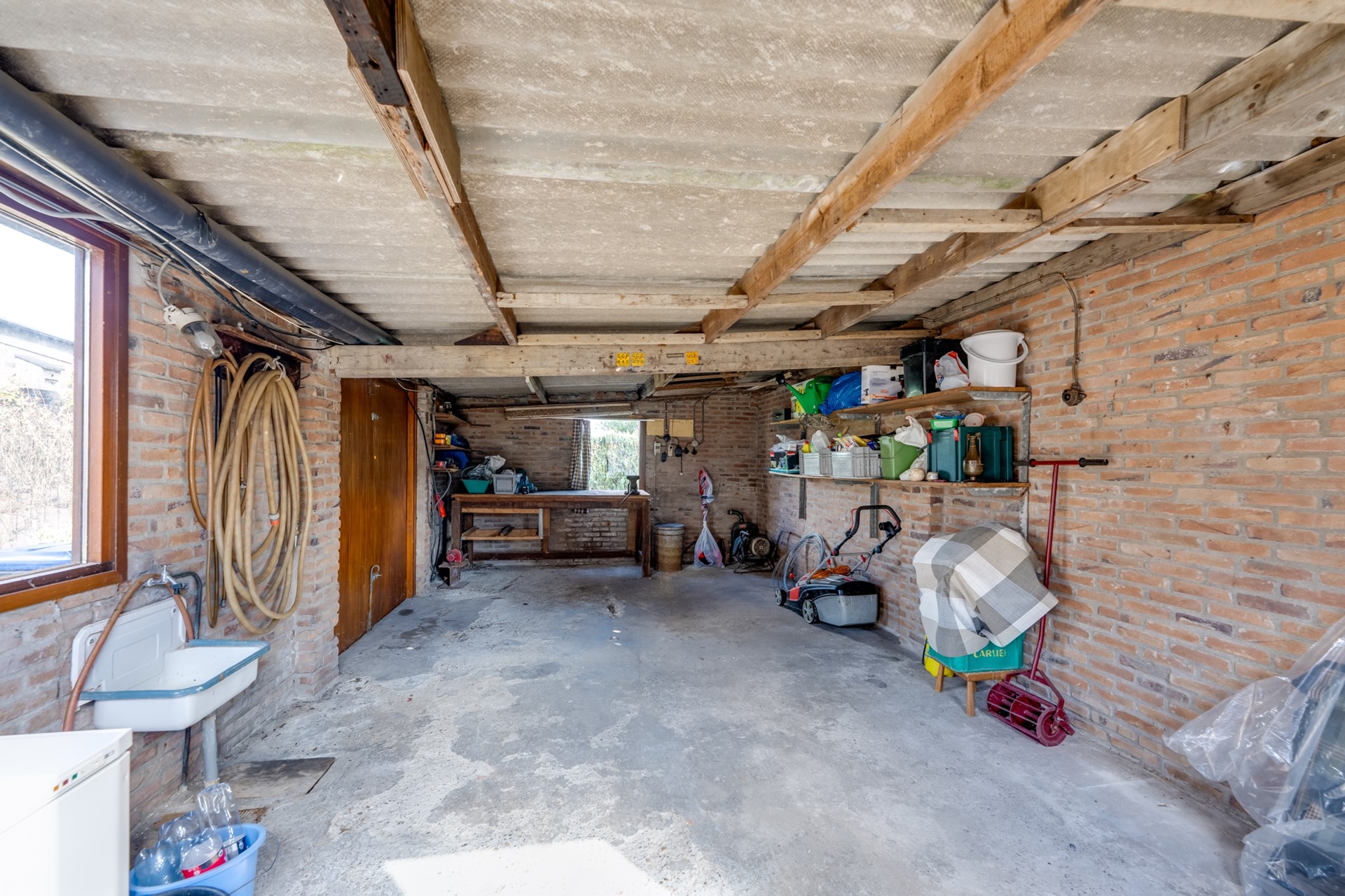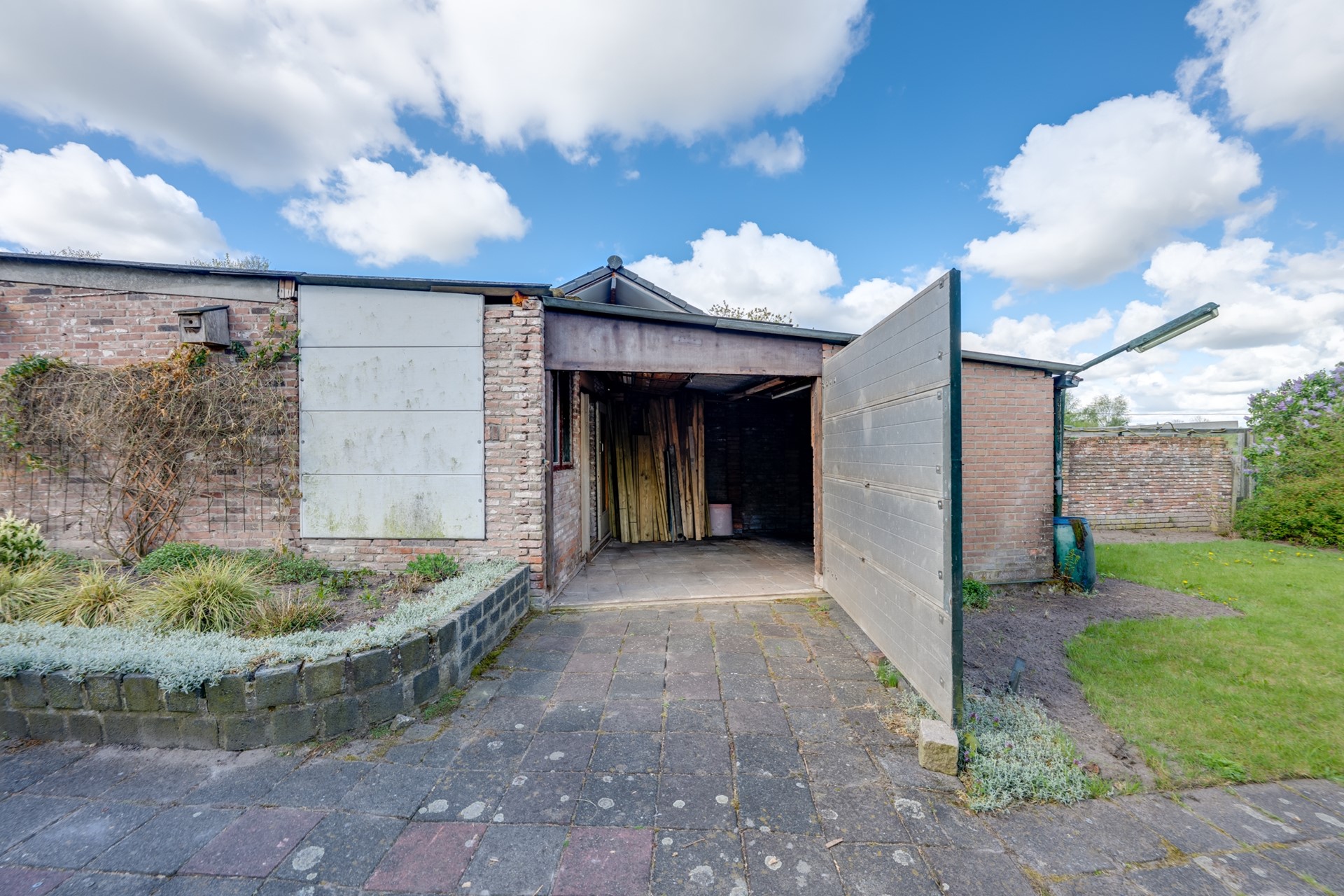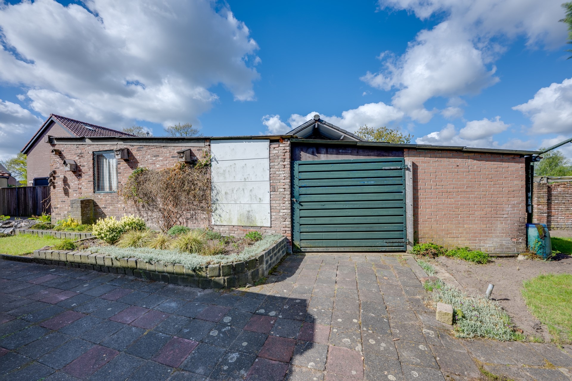De vrijstaande, stenen garage (5,67 m. x 3,60 m.) kunt u bereiken via de oprit aan de linkerzijde van de woning. De garage is v.v. een smeerput en heeft een stalen kanteldeur. Er is elektra aanwezig. Aan de garage is aan de achterzijde een berging (3,84 m. x 4,84/4,10 m.) te vinden met een brede, openslaande, kunststof deur. Er is elektra aanwezig. Tussen de garage en berging zit nog een kleine ruimte (3,60 m. x 1,86 m.), waar vroeger vogels werden gehouden.