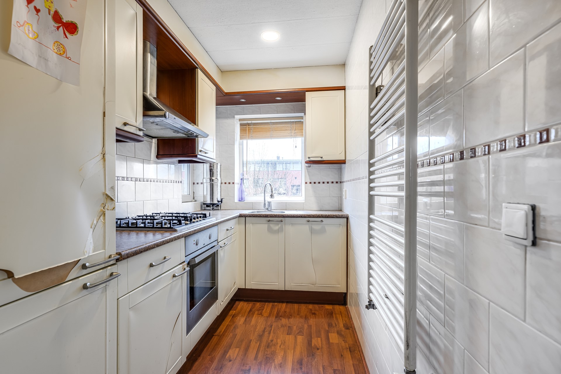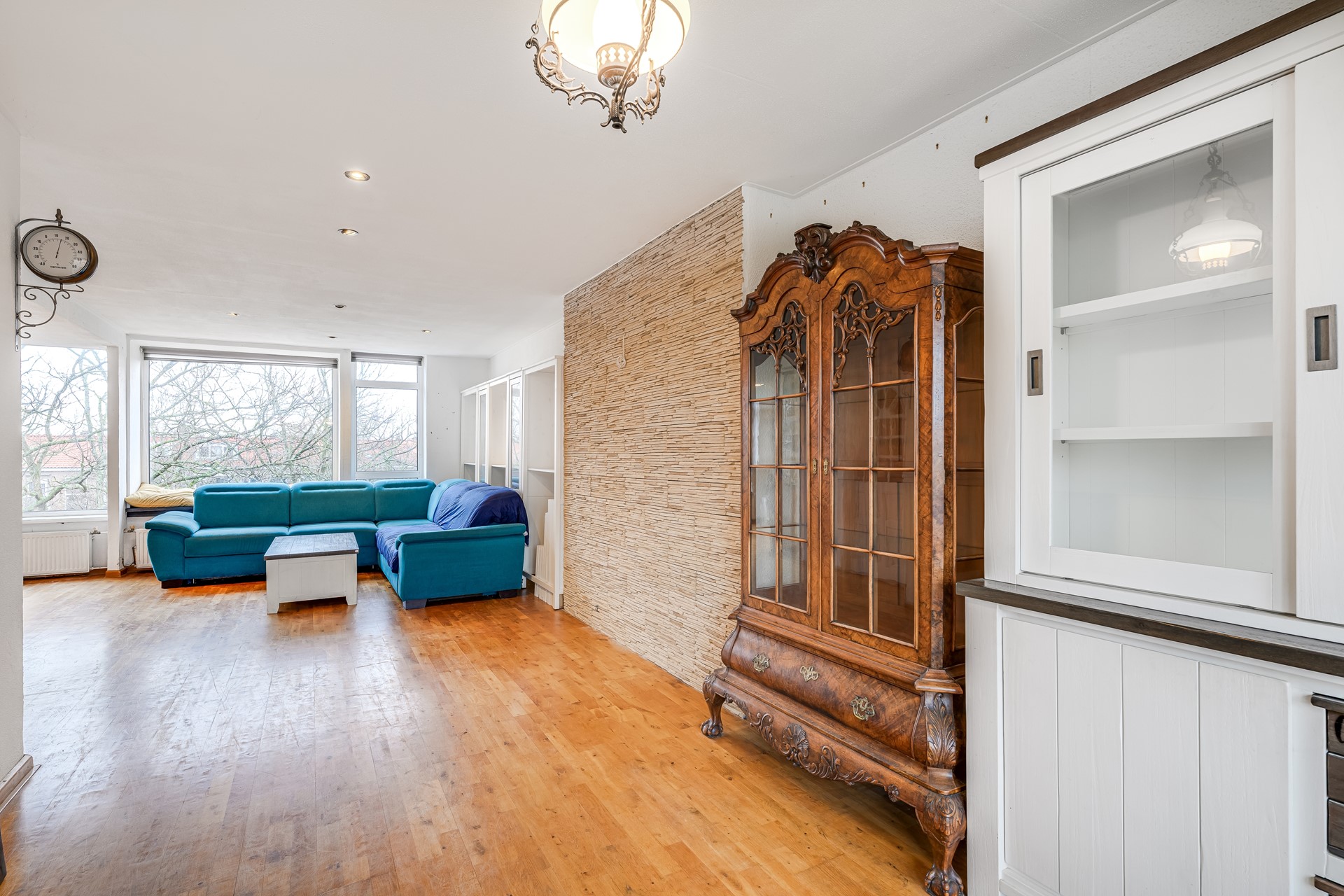 Wie hier binnenstapt, voelt het meteen: dit is geen standaard appartement. Burgemeester Elsenlaan 50 is een speels ingedeelde en opvallend ruime maisonnette, verdeeld over twee woonlagen, met maar liefst vier slaapkamers, een balkon én uitzonderlijk veel bergruimte. En alsof dat nog niet genoeg is, is er ook nog een separaat te koop aangeboden garage – een zeldzame luxe op deze locatie.