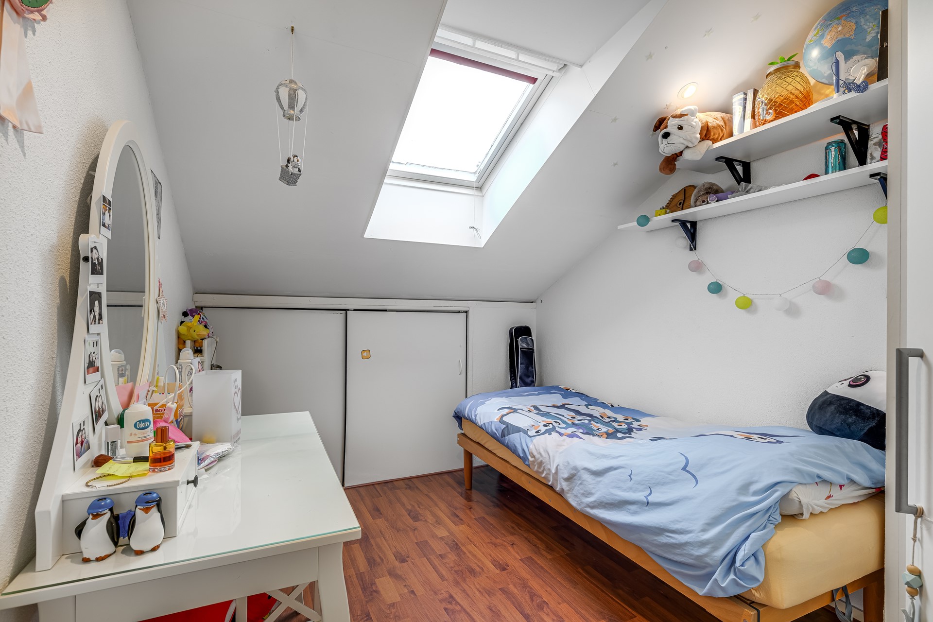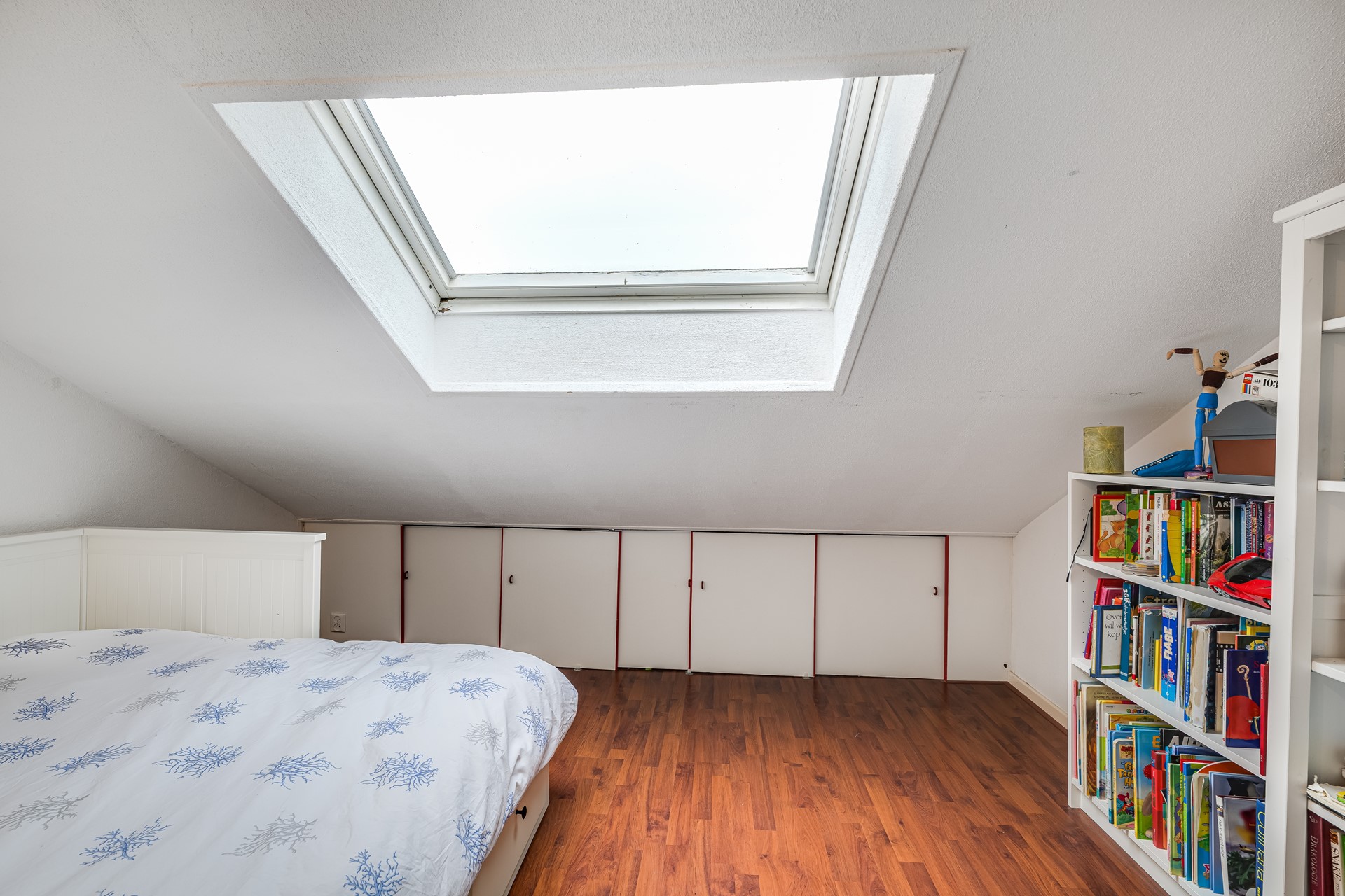 De bovenverdieping verrast opnieuw. Hier vind je drie volwaardige slaapkamers, stuk voor stuk met een prettige lichtinval en een slimme indeling onder de kap. Ideaal voor een gezin, werken vanuit huis of een combinatie van slapen, hobby en logeren.
