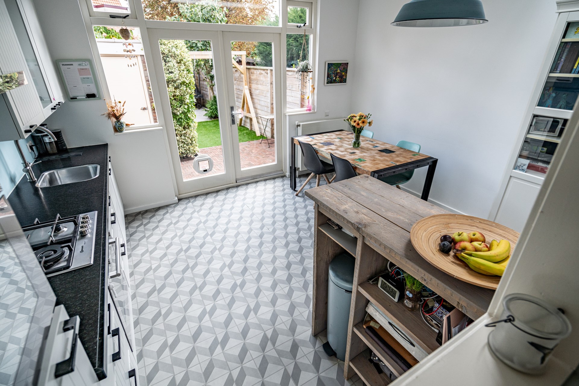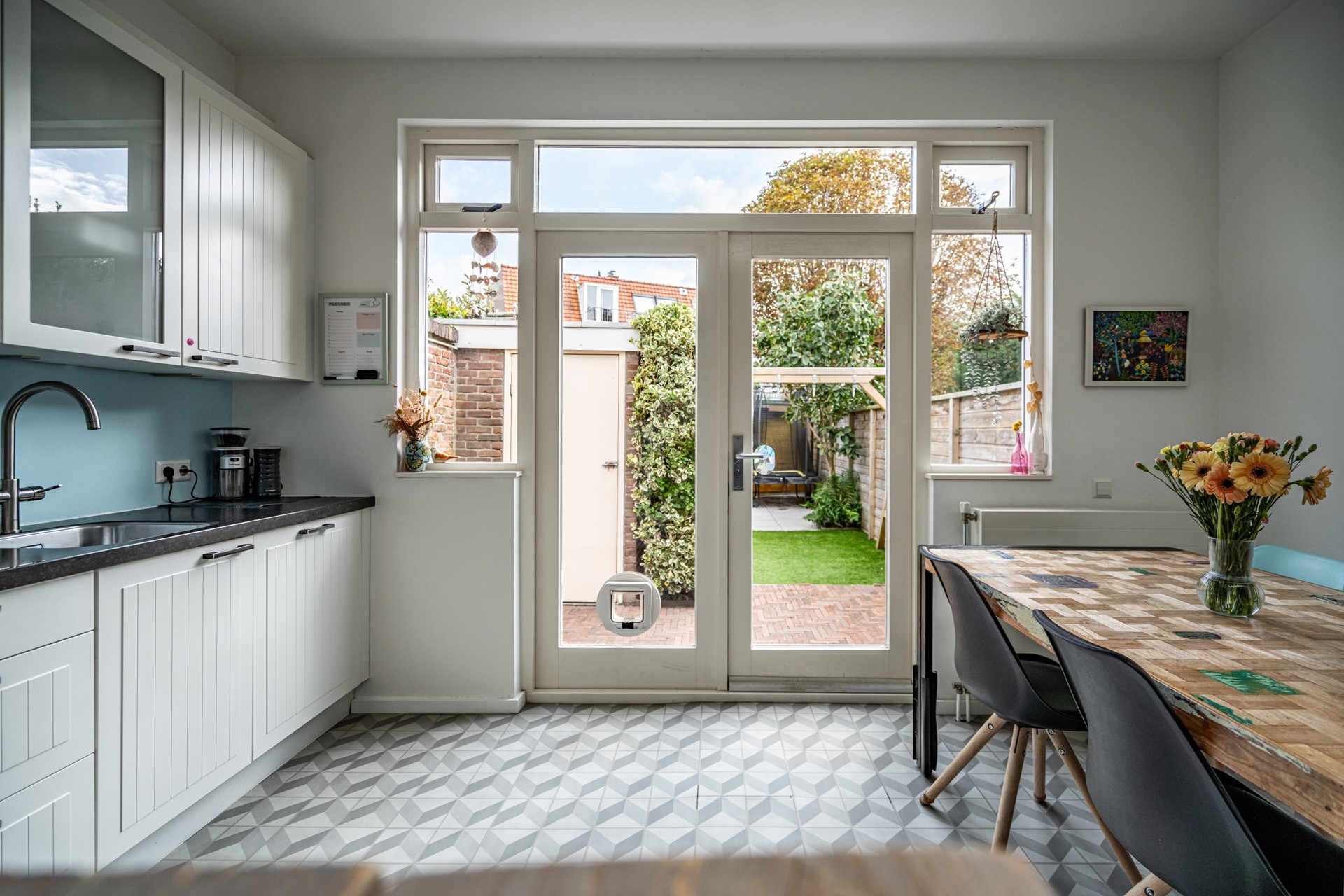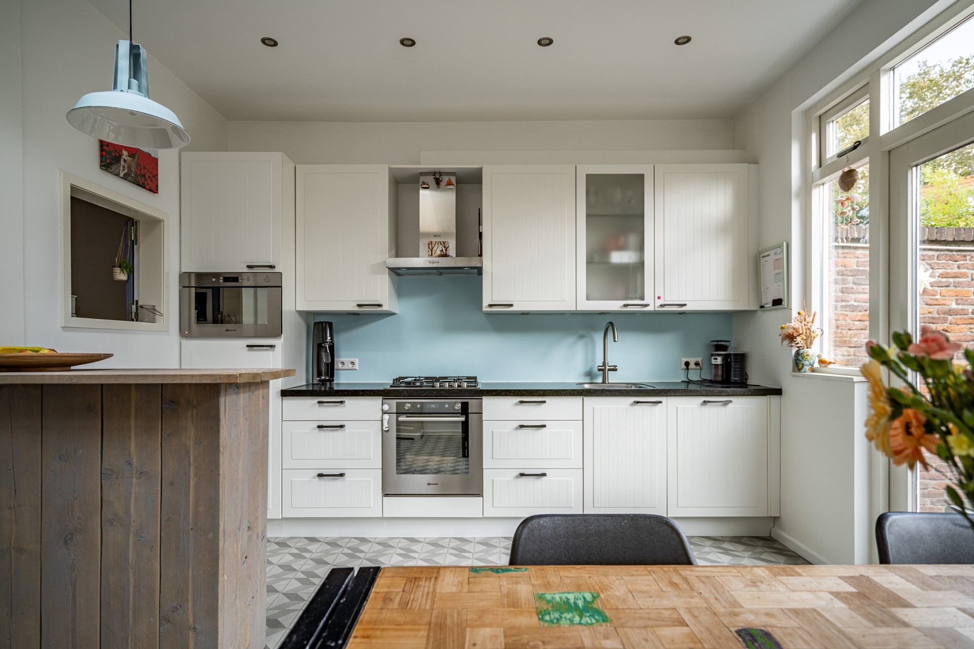 De keuken is praktisch ingericht en voorzien van een 4-pits gasfornuis, oven, magnetron, vaatwasser (2021), koelkast en een wasbak met voldoende werkruimte. In de aangrenzende berging is een vriezer geplaatst. Vanuit de keuken is er toegang tot de zonnige achtertuin. De tuin is ruim, biedt veel privacy en heeft voldoende ruimte voor een zit- of eethoek. De berging in de achtertuin is ideaal voor extra opslag.