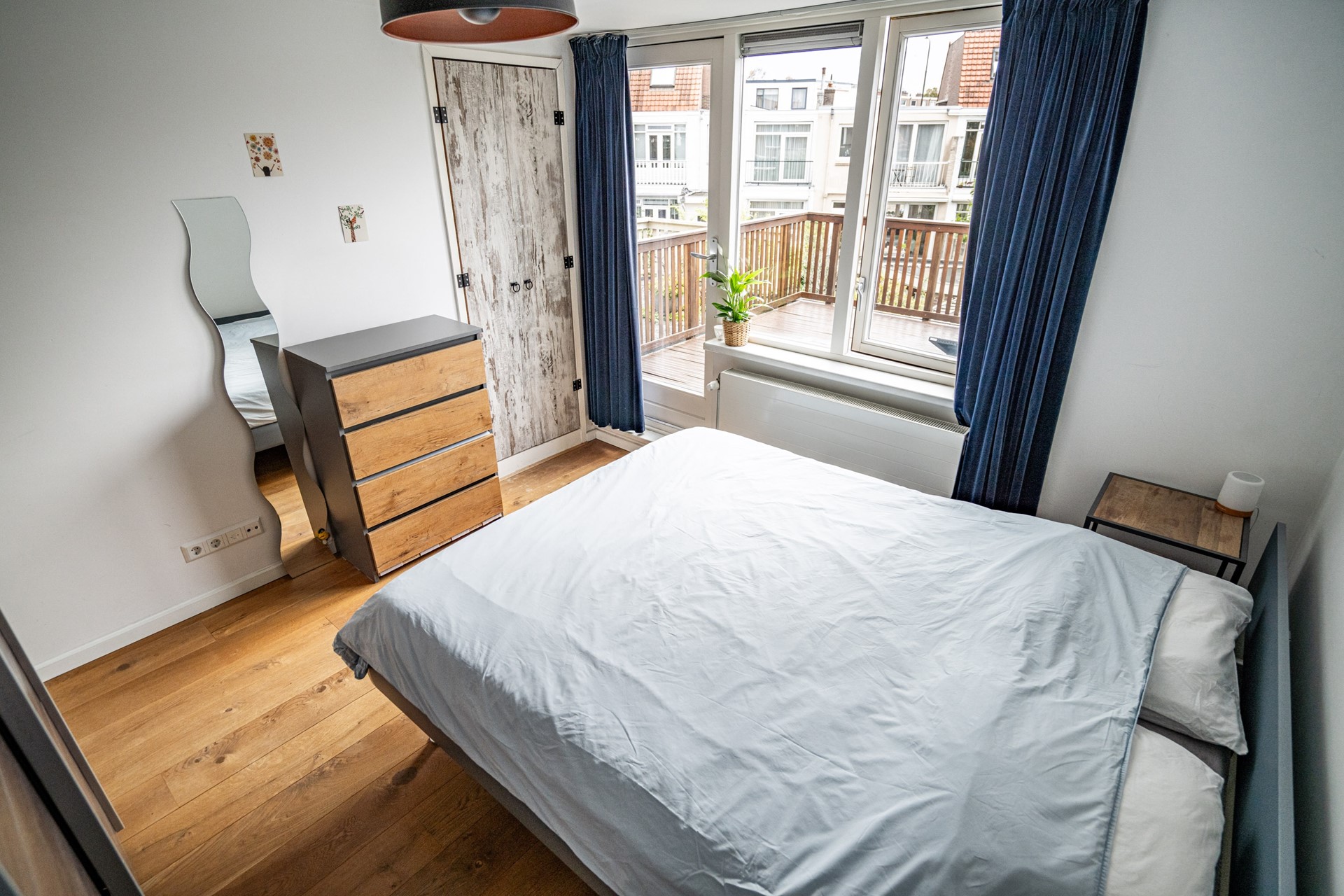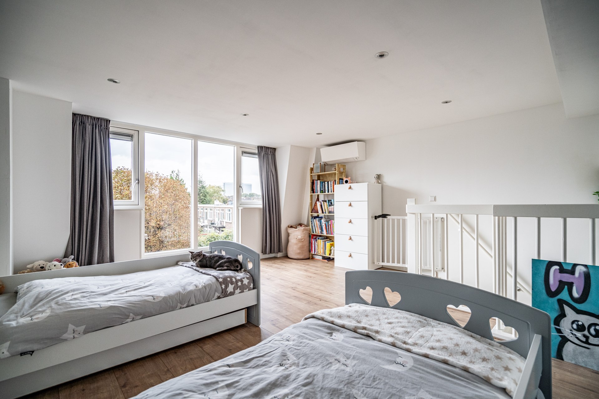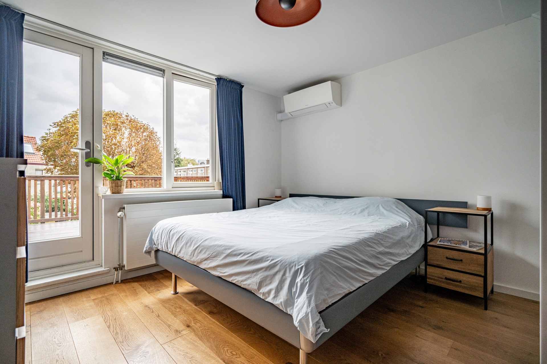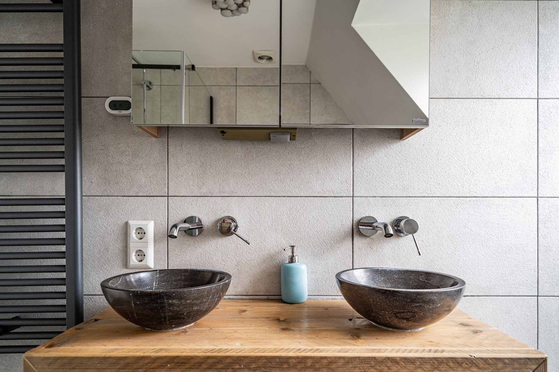 Op de eerste verdieping bevinden zich twee ruime slaapkamers met veel lichtinval. Vanuit de hoofdslaapkamer is er toegang tot het ruime dakterras. De badkamer is modern afgewerkt en voorzien van een ligbad, inloopdouche, zwevend toilet en dubbele wastafel.