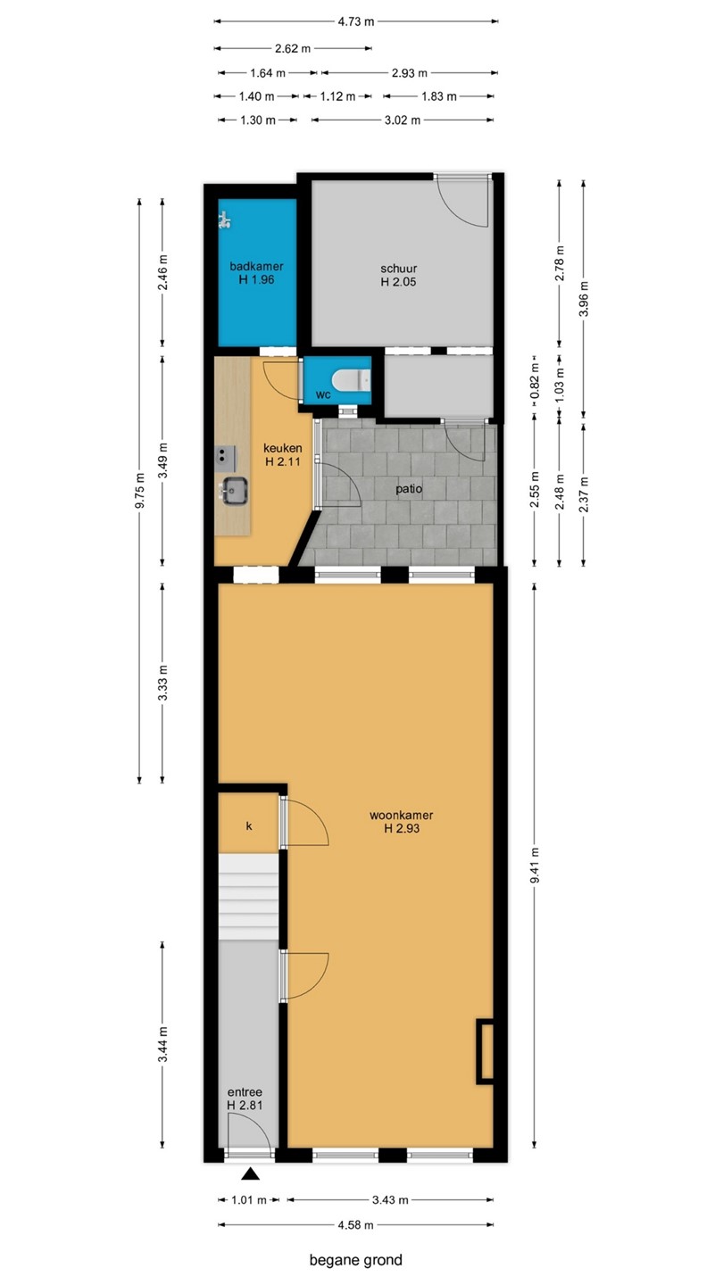 Entrance hall with meter cupboard, toilet, and stairs to the first floor.
