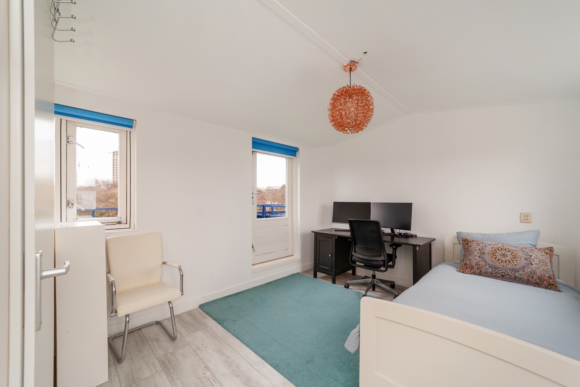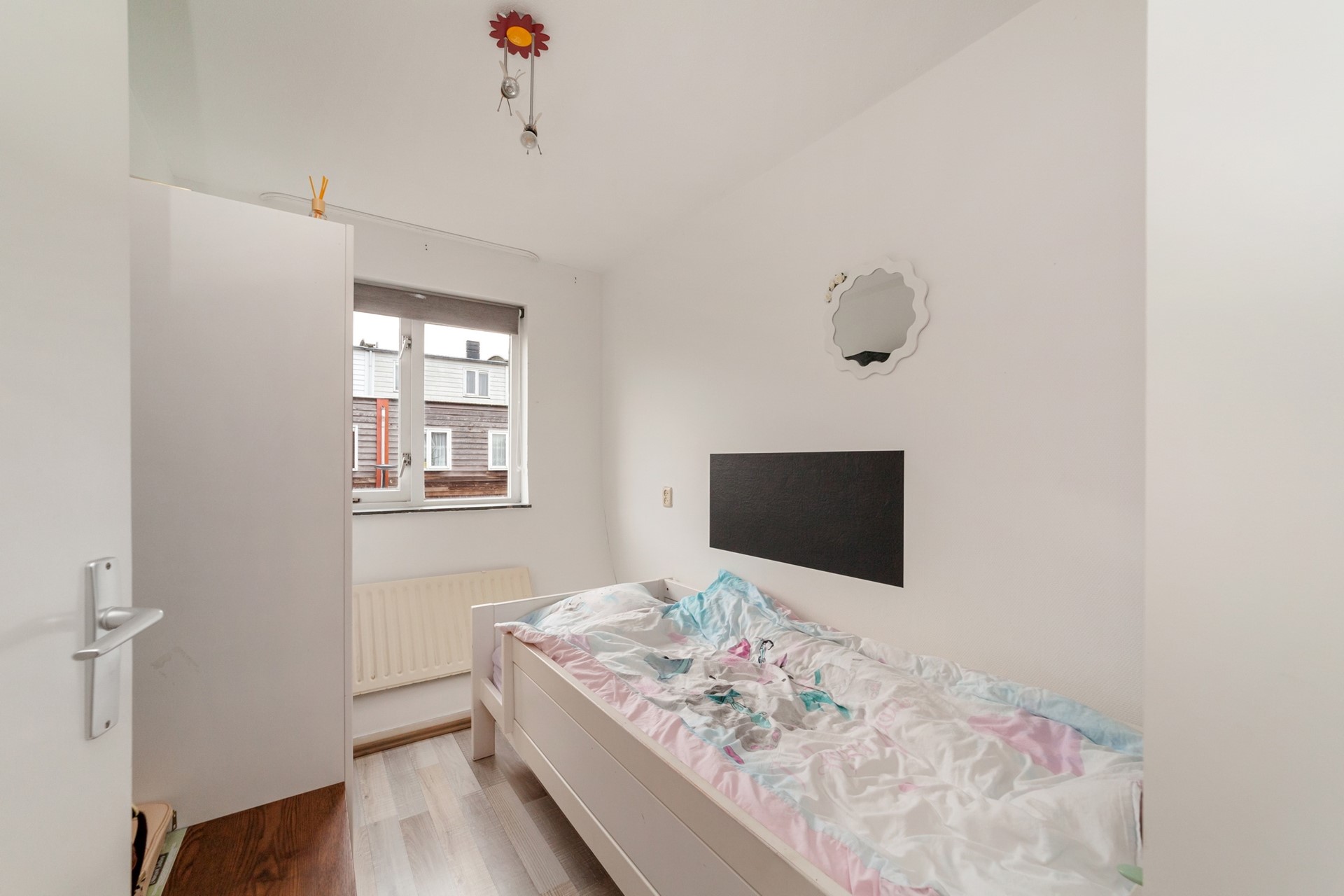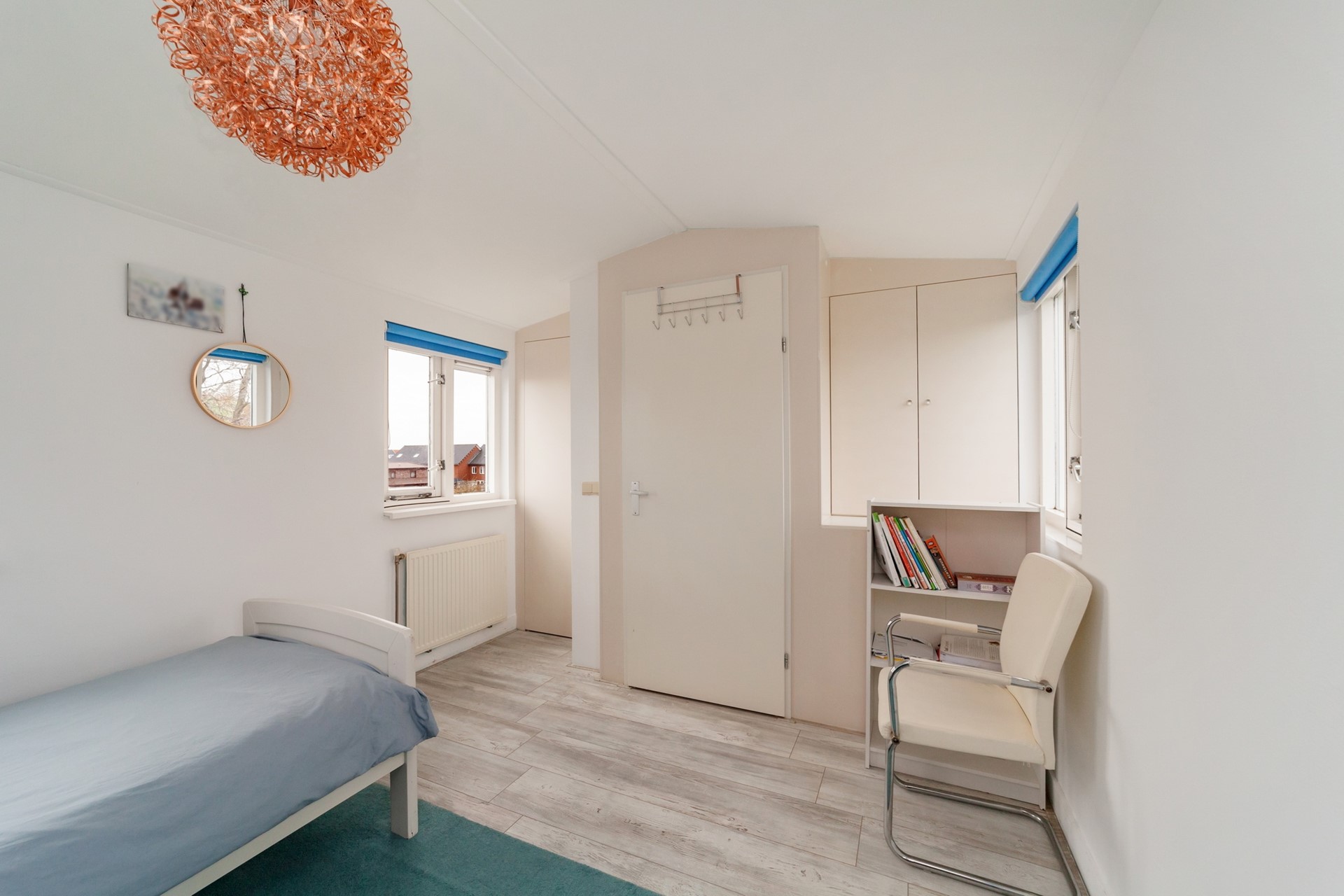 Op deze verdieping bevindt zich de vierde (slaap)kamer die via een deur toegang geeft tot het dakterras op het noordwesten — een fijne plek om ’s avonds buiten te zitten of te genieten van de zonsondergang.