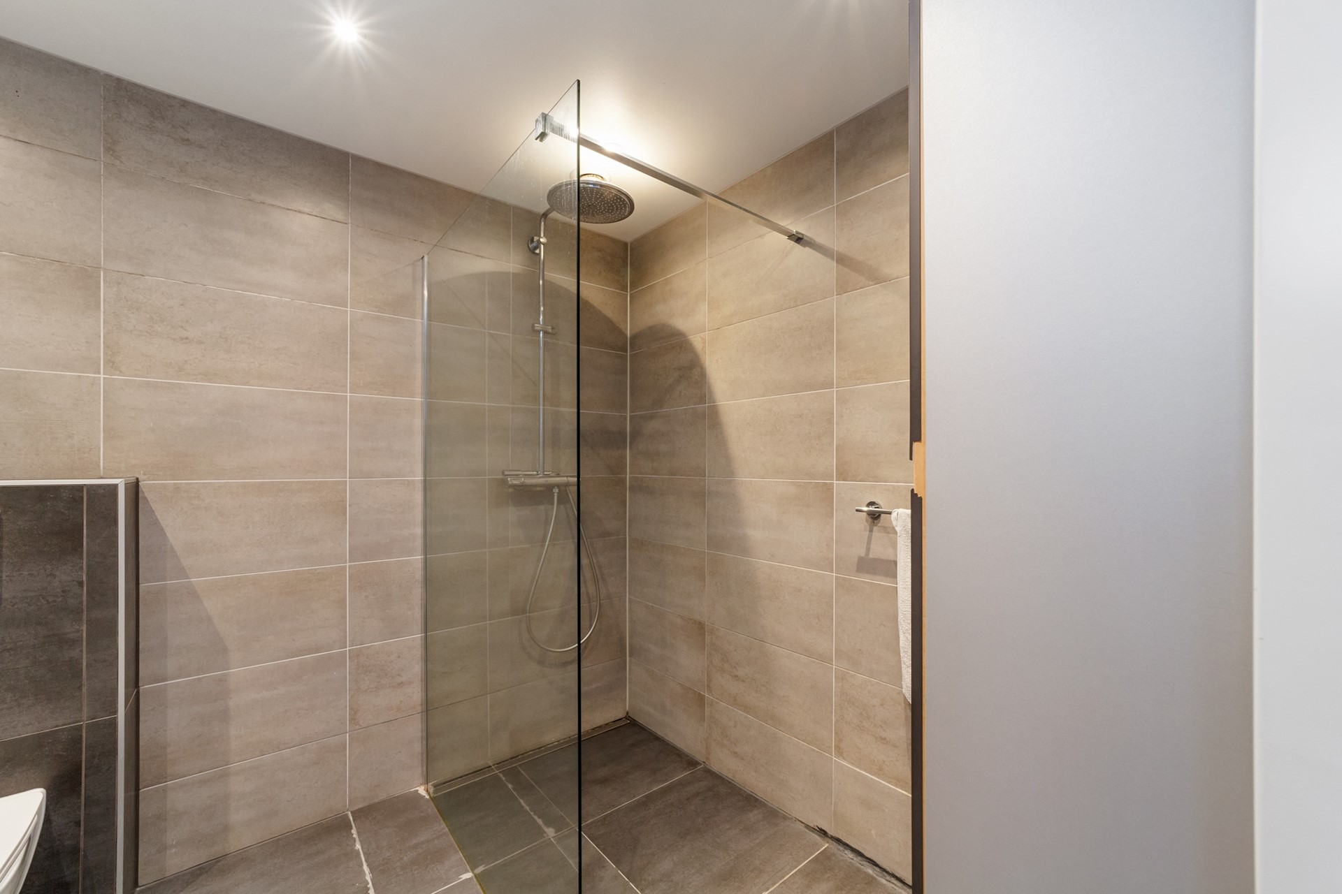 Bij binnenkomst treft u de hal met meterkast en een moderne toiletruimte voorzien van een hangend toilet en fonteintje.