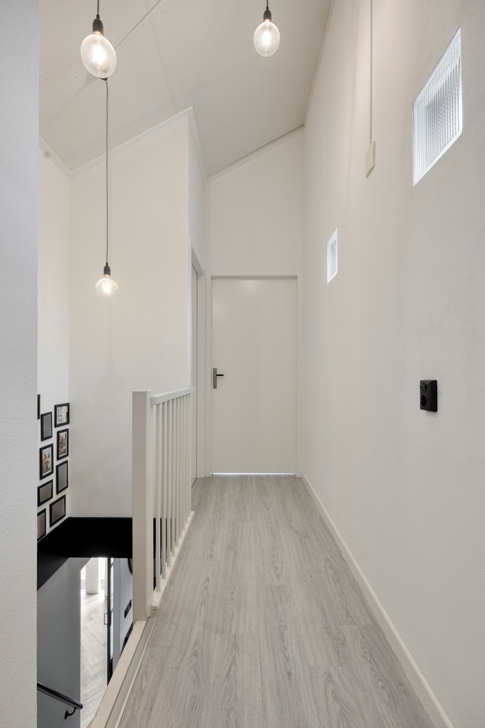 • Strakke visgraat pvc-vloer en glad gestuukte wanden