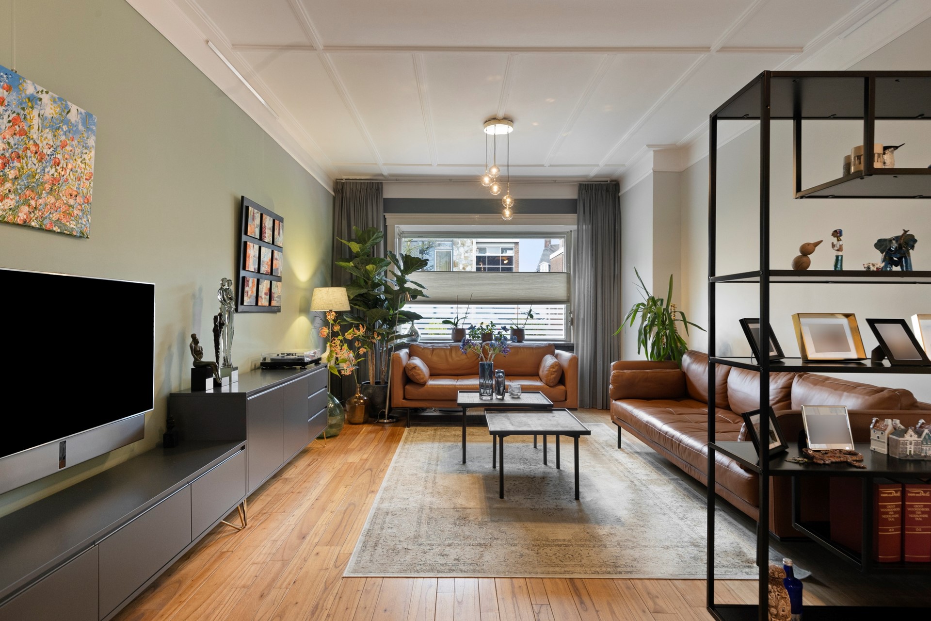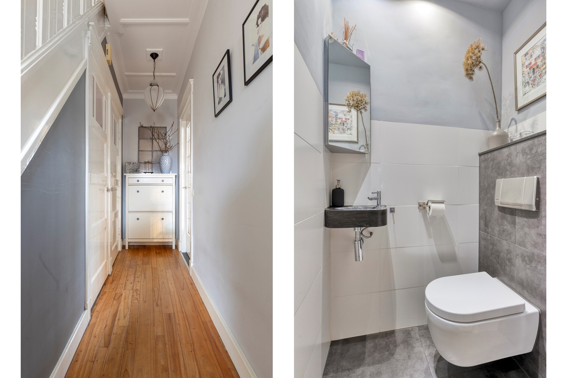 De woning ademt sfeer dankzij de vele originele details die behouden zijn gebleven, zoals de deuren, deurposten en de hoge plafonds. Aan de voorzijde geven twee in de gevel gebouwde plantenbakken het huis een charmante en herkenbare uitstraling.