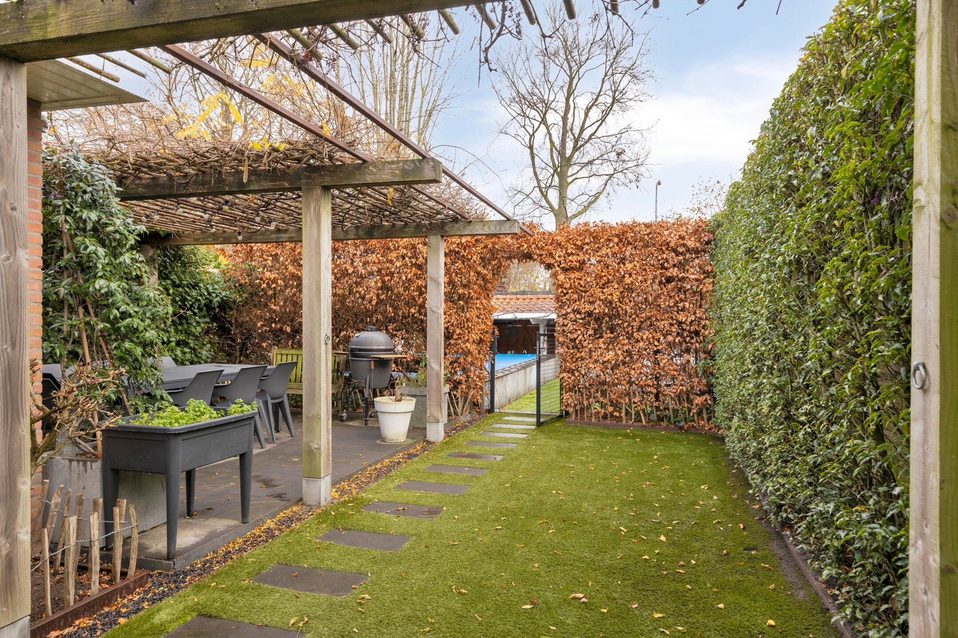 De tuin is voorzien van onderhoudsarm kunstgras, waardoor deze het hele jaar door groen blijft. De pergola en drie terrassen zorgen voor meerdere fijne zitplekken, passend bij elk moment van de dag.