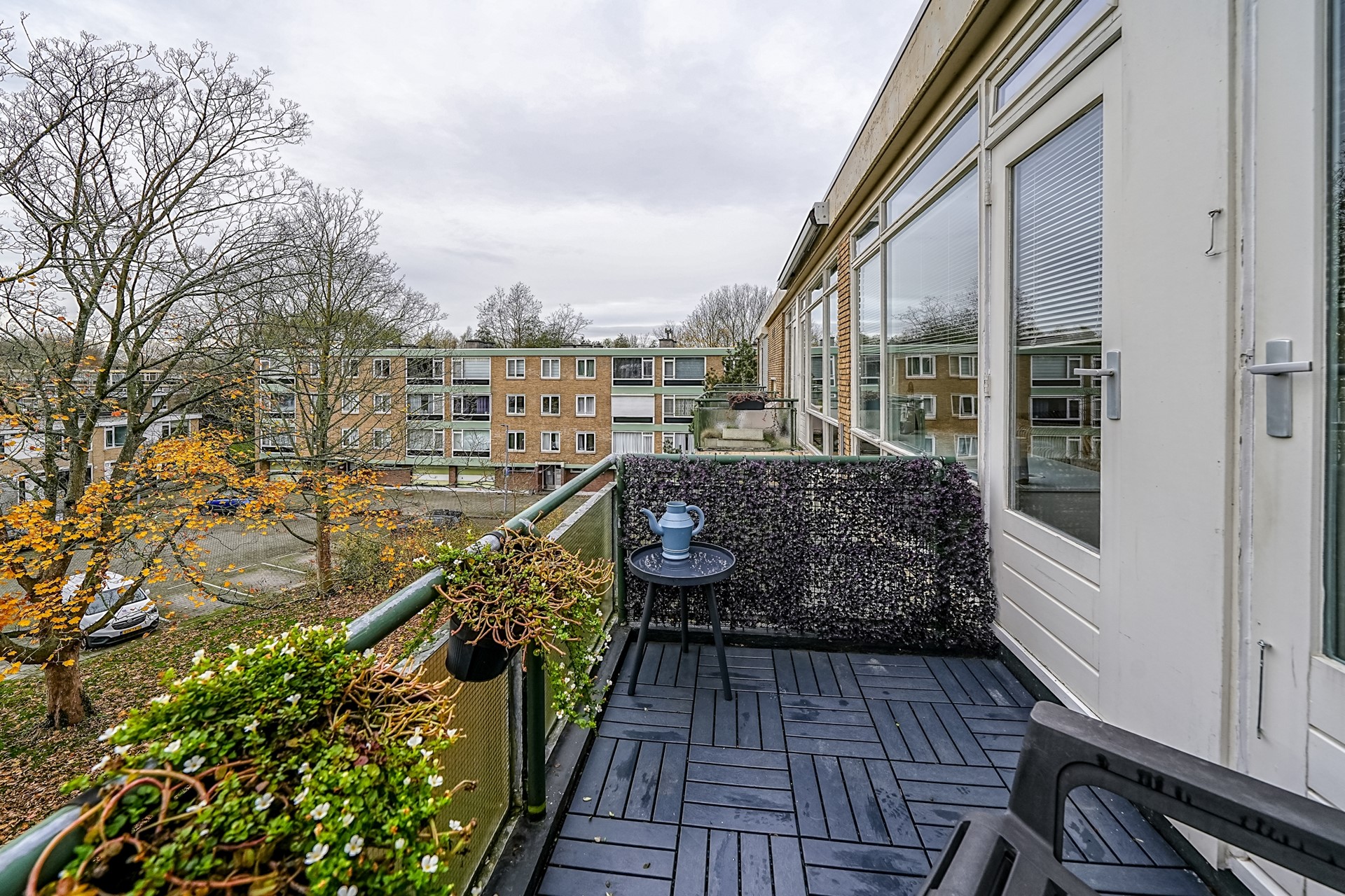 Op de 3e verdieping betreedt u de woning via de hal met bergkast voor wasmachine, droger en CV-opstelling; de meterkast bevindt zich in het trappenhuis. De lichte woonkamer aan de achterzijde beschikt over grote raampartijen en een eetgedeelte met toegang tot het ruime balkon. De inbouwkeuken (2016) ligt aan de voorzijde en biedt toegang tot het kleinere balkon.
