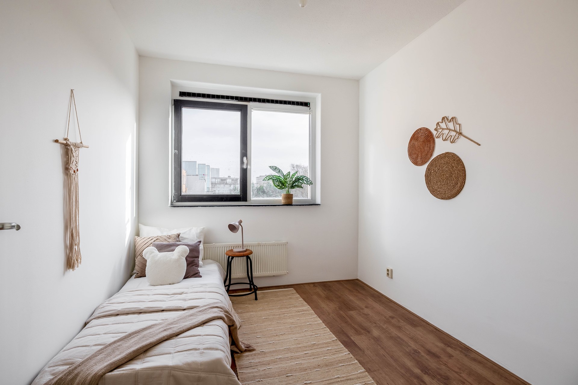 Via de trap bereik je de derde woonlaag. Hier bevinden zich drie slaapkamers, perfect als je een gezin hebt, thuiswerkt of droomt van een walk-in closet of hobbykamer. Op deze verdieping ligt nieuw laminaat en de hele woning is recent volledig geschilderd, waardoor je hier direct zorgeloos kunt intrekken.