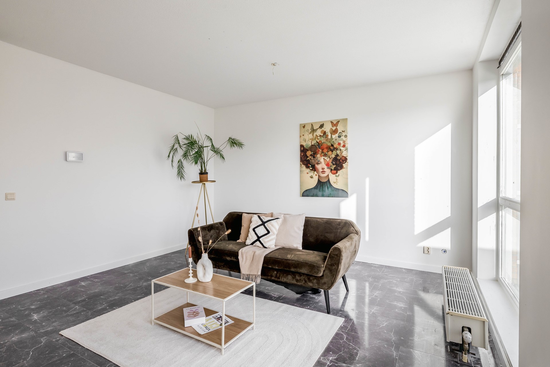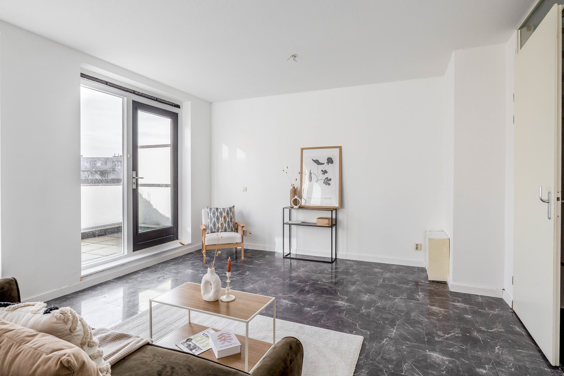 3. Lichte woonkamer met balkon op het westen;