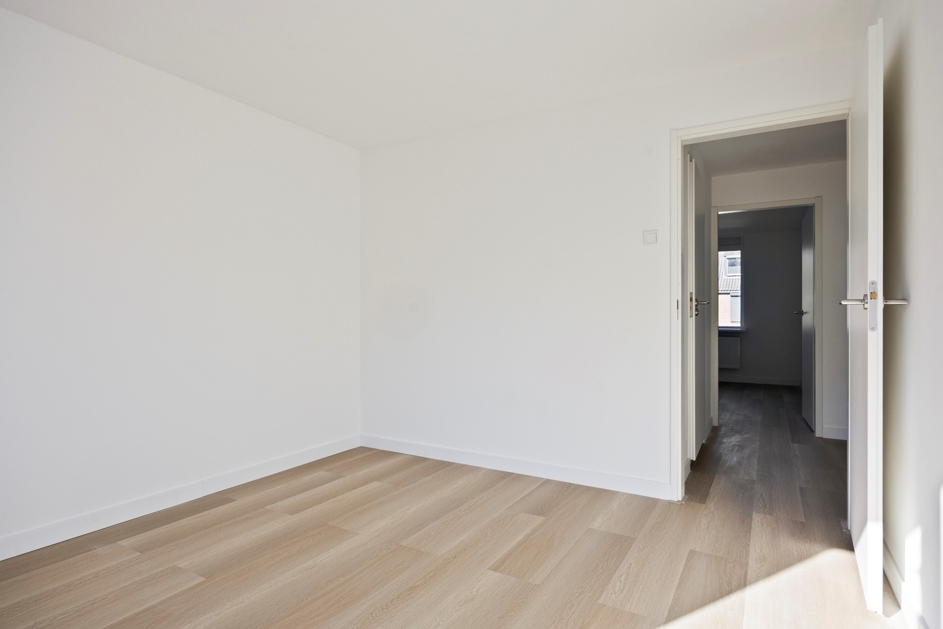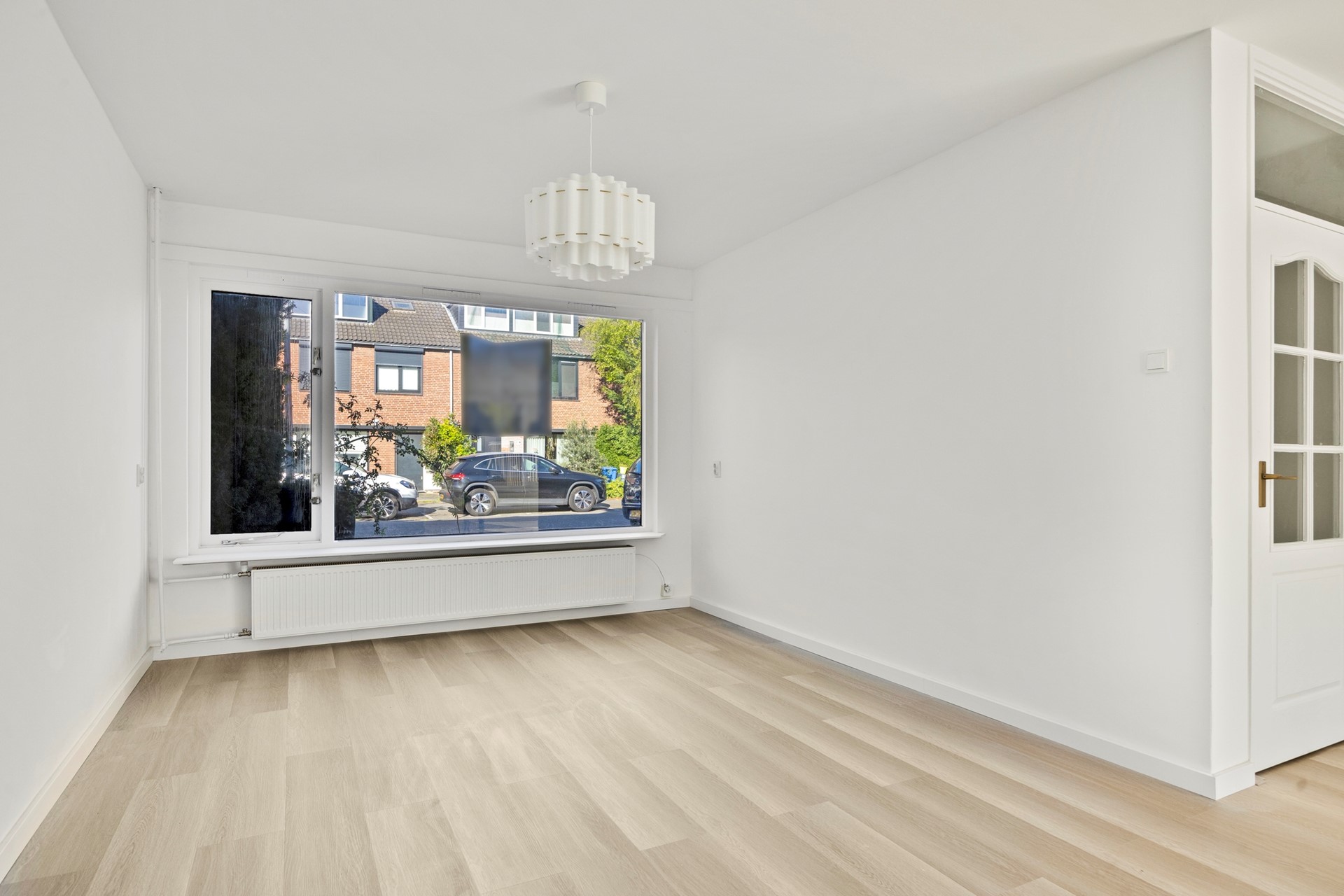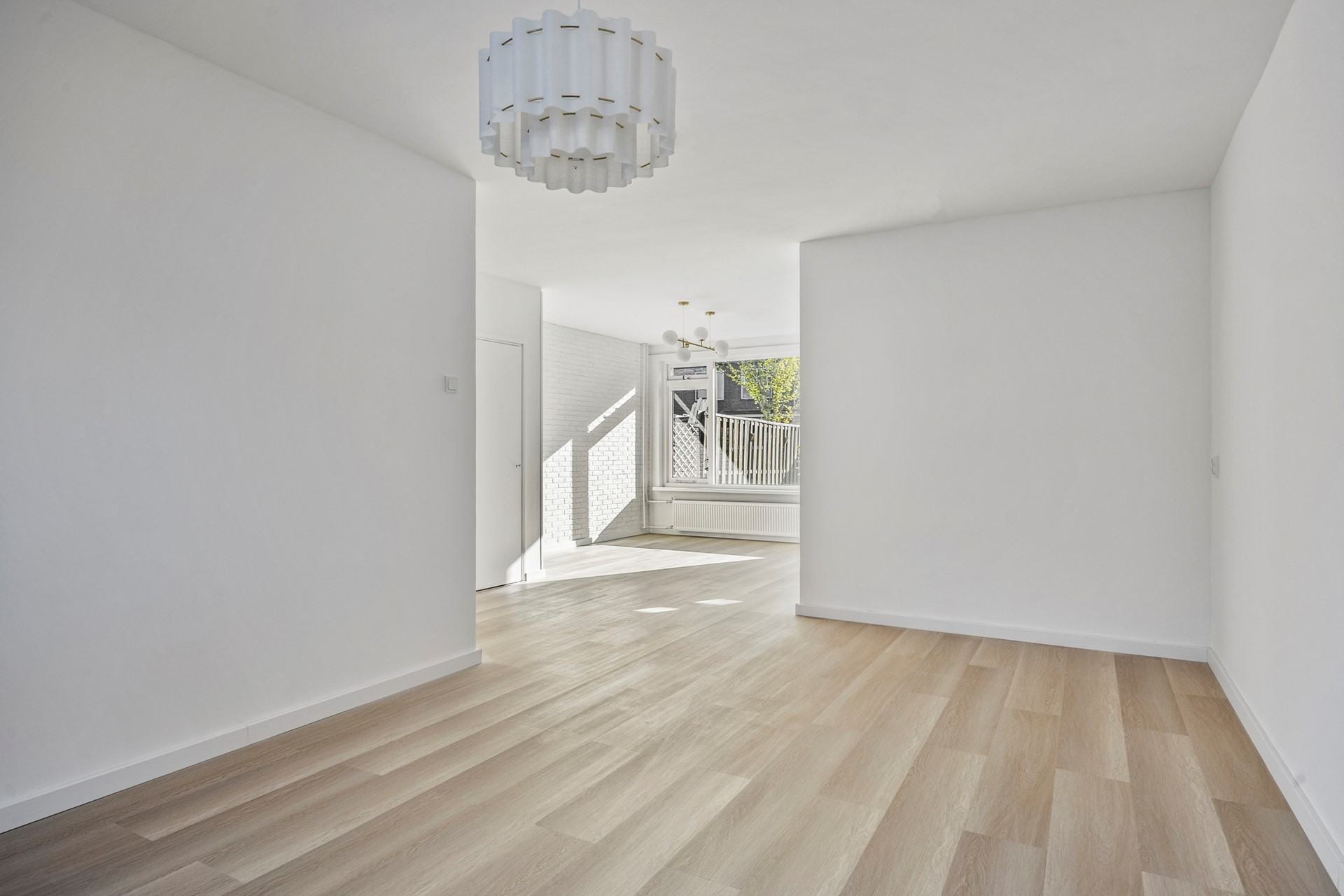 De woonkamer is ruim en licht en beschikt over een moderne, nieuwe vloer en strak afgewerkte wanden. Dankzij de grote raampartijen is er veel natuurlijke lichtinval. De praktische indeling maakt de ruimte zeer geschikt voor zowel een comfortabele zithoek als een royale eethoek.