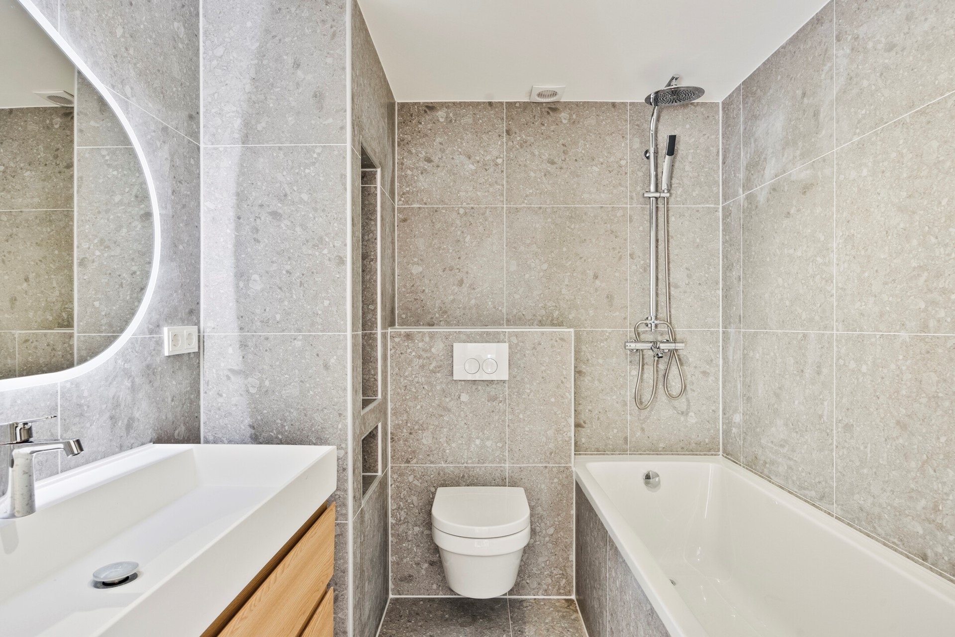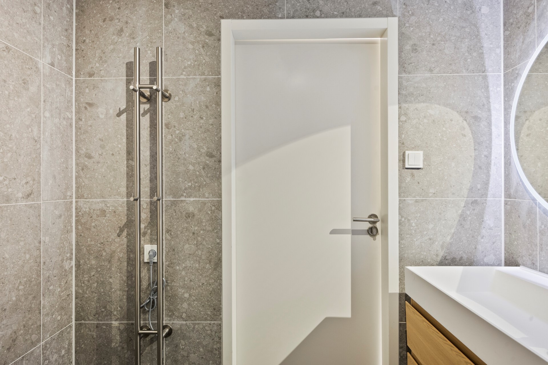 De recent vernieuwde badkamer is modern uitgevoerd en beschikt over een douche, wastafel en hoogwaardige afwerking. Ook het separate toilet op deze verdieping is volledig vernieuwd.