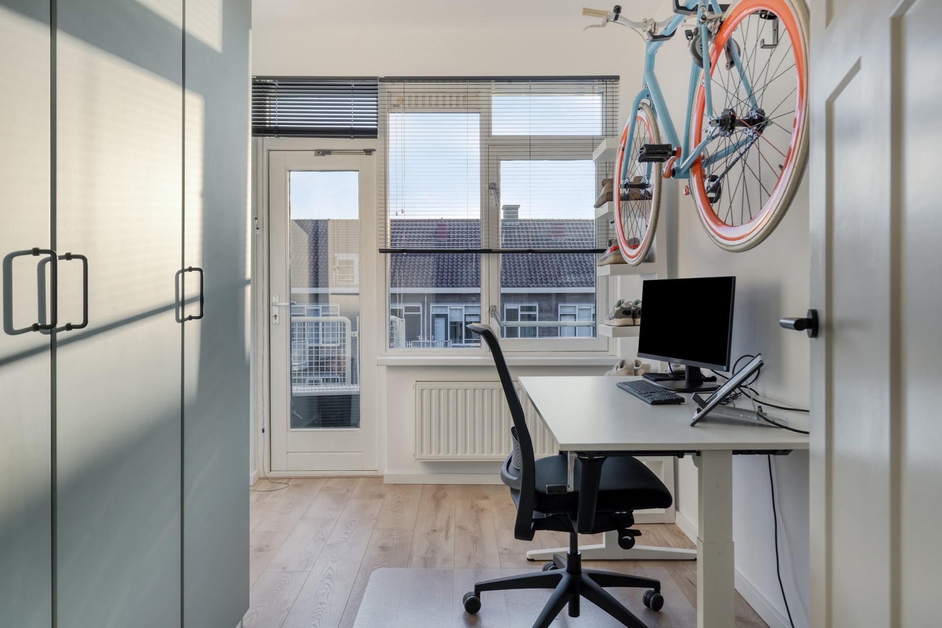 Vanuit de hal kom je in de tweede slaapkamer, momenteel ingericht als thuiskantoor. Toegang tot het balkon behoort ook hier tot de mogelijkheden.