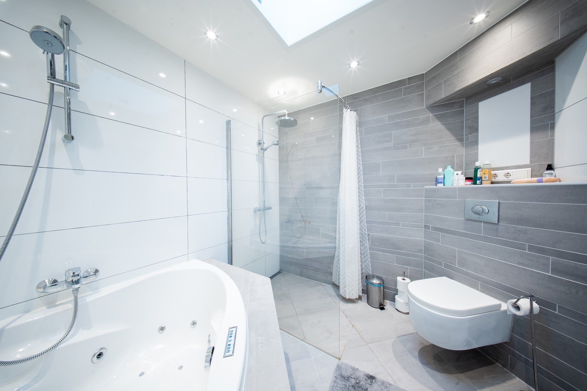 De badkamer is recent volledig gerenoveerd en uitgerust met een heerlijk ligbad, een aparte inloopdouche, een modern wastafelmeubel en een tweede toilet; een ruimte waar comfort en ontspanning centraal staan.