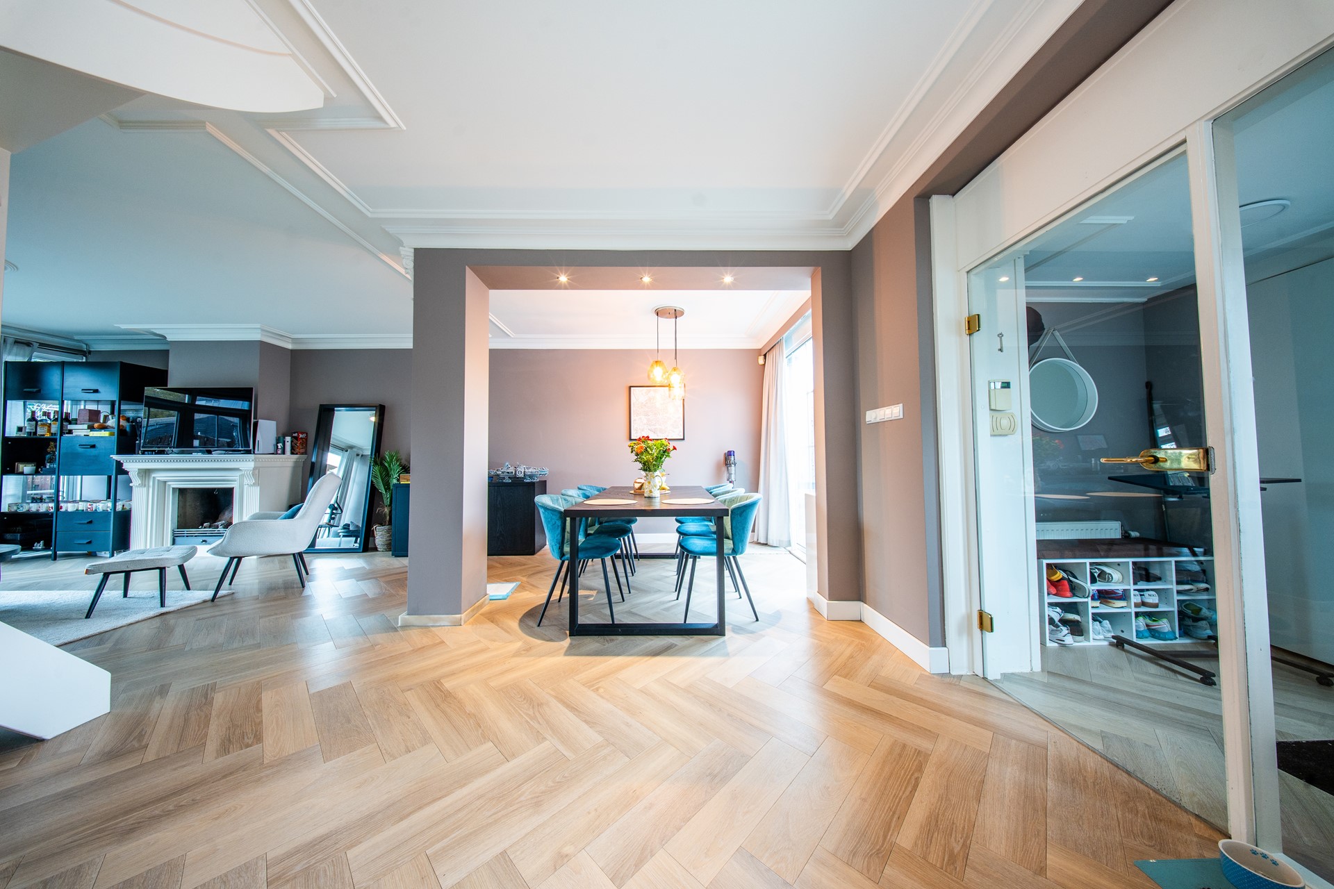 • Plafonds met ornamenten en inbouwspots voor een luxe uitstraling