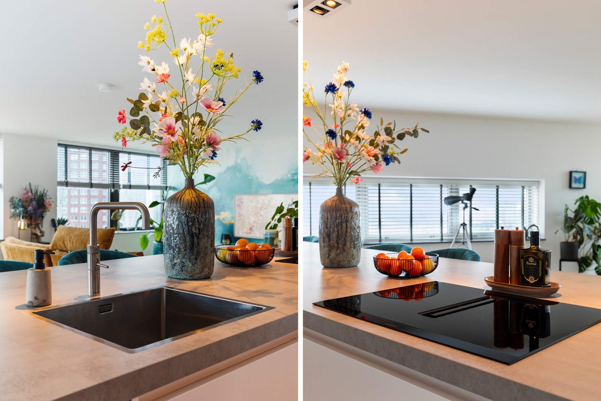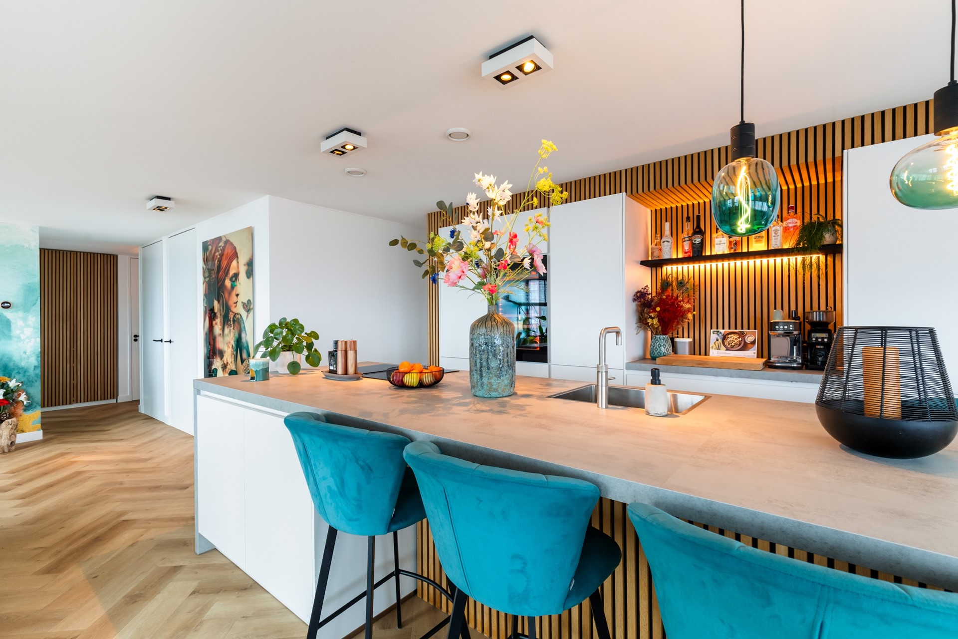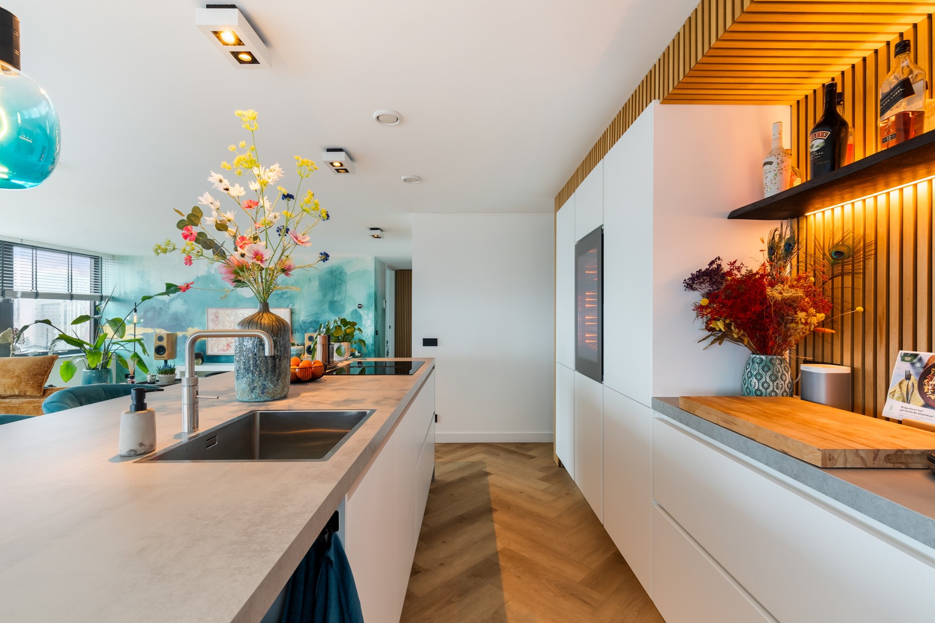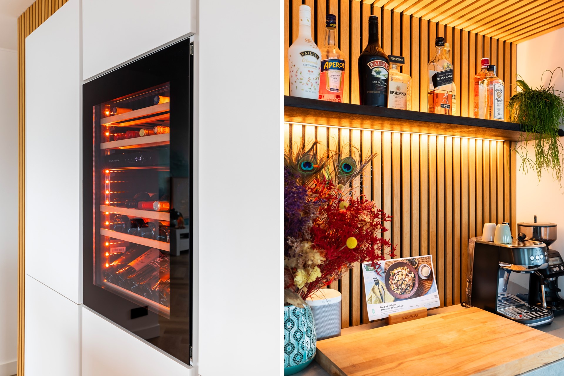 - KEUKEN: quooker, ingebouwde wijnkoeler, koelkast met vriesvak